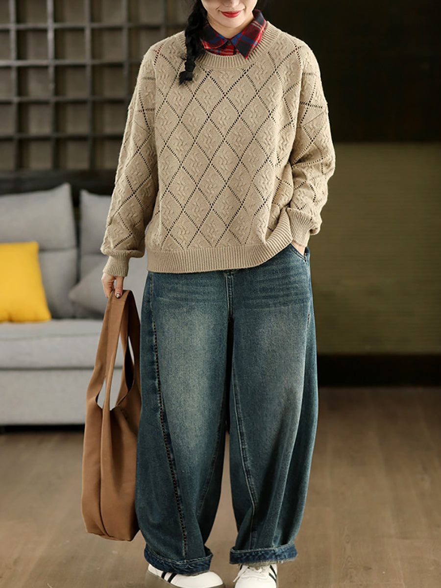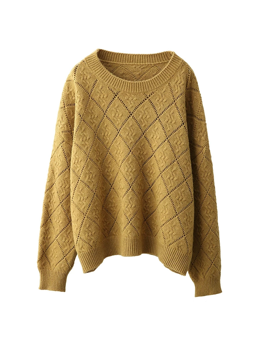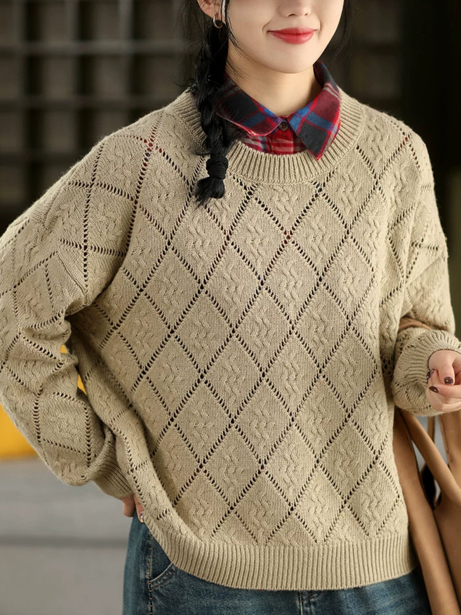 Suéter feminino Artsy Spring com estampa de losangos e gola redonda