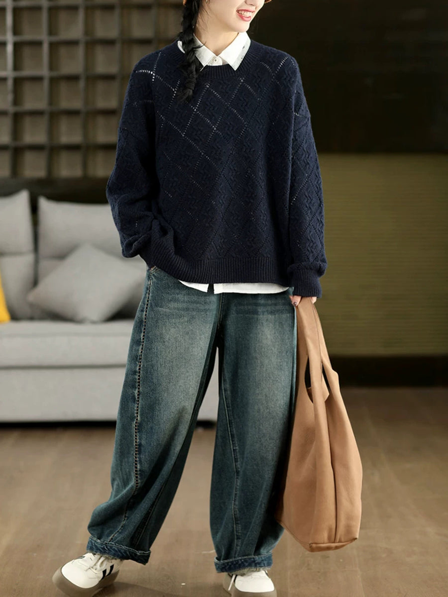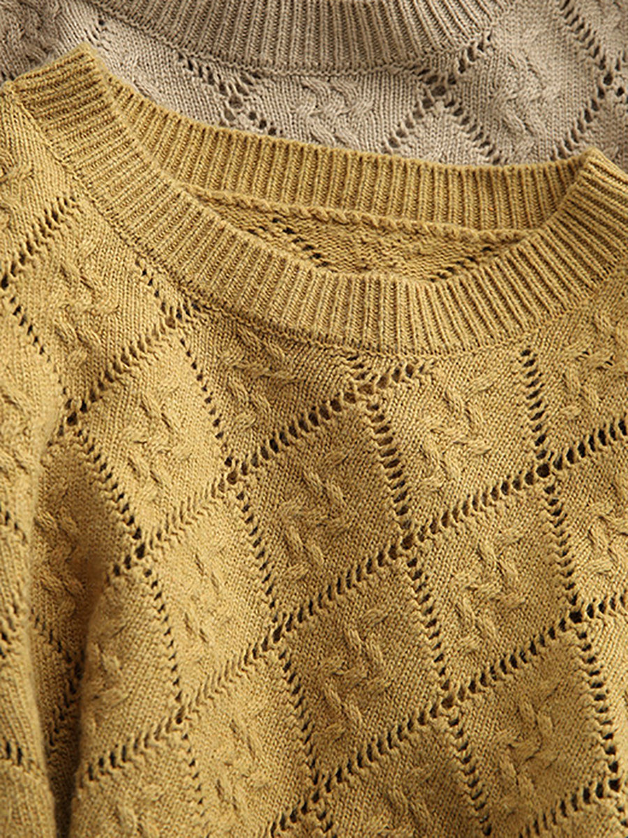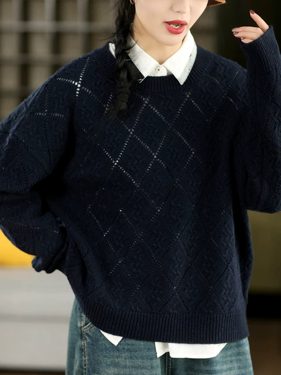 Suéter feminino Artsy Spring com estampa de losangos e gola redonda
