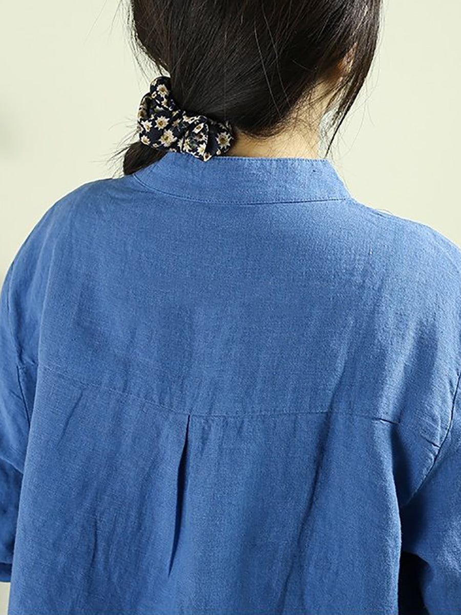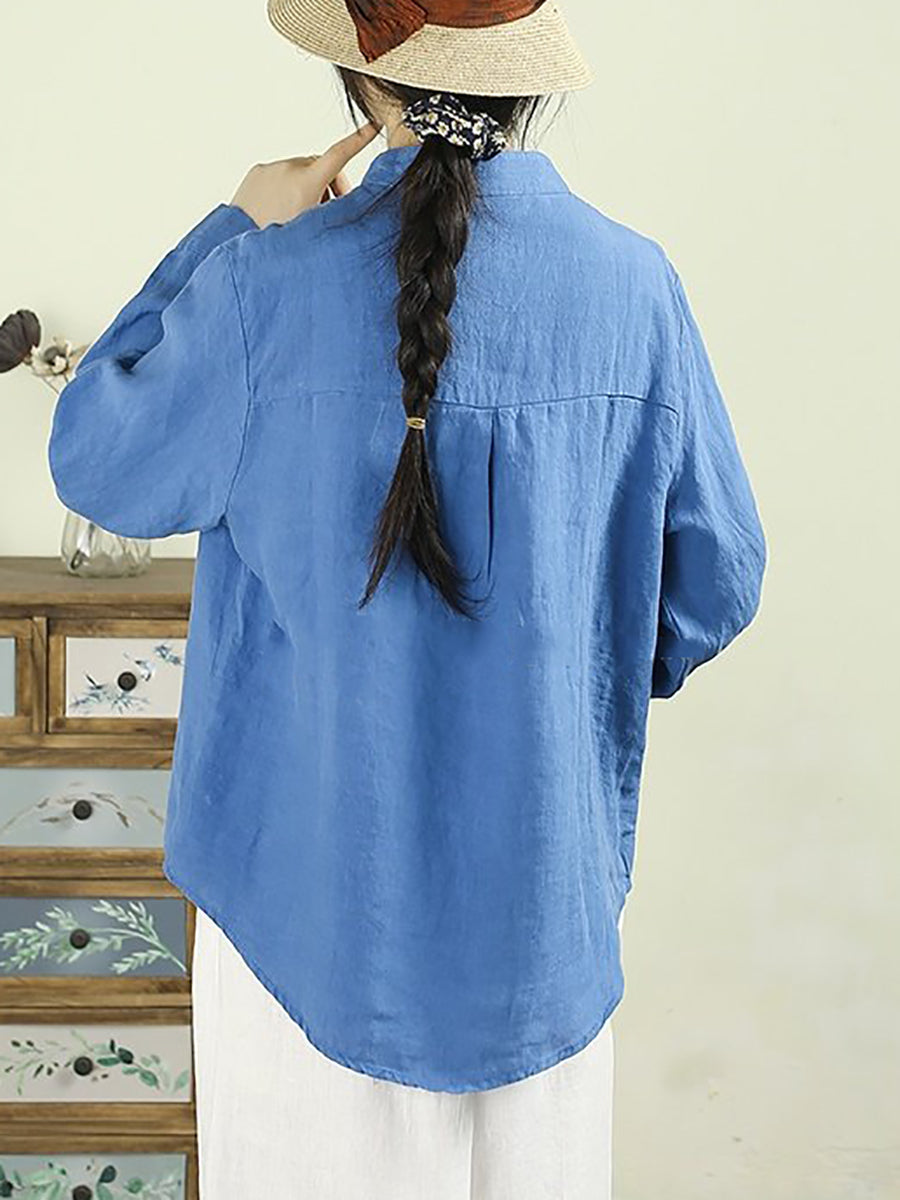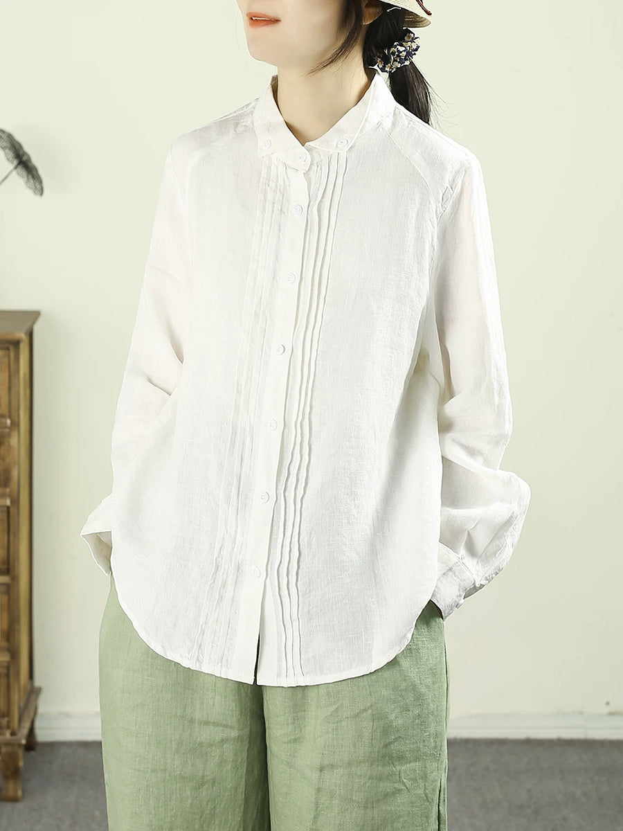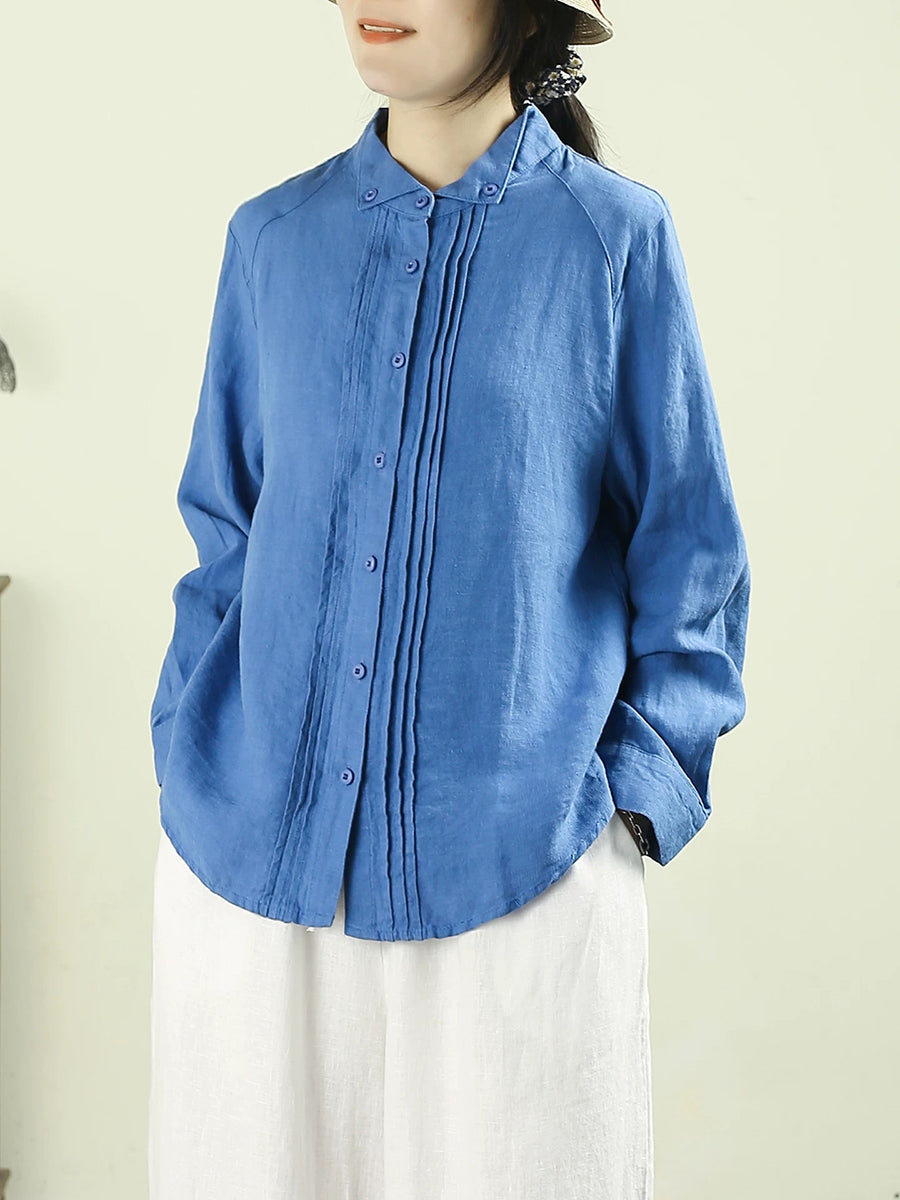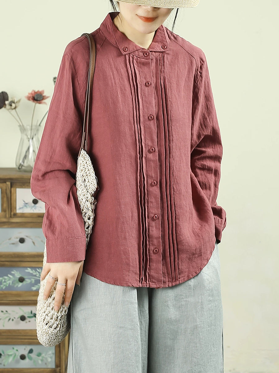 Camisa feminina Artsy Spring com franzido em cor lisa, 100% linho.