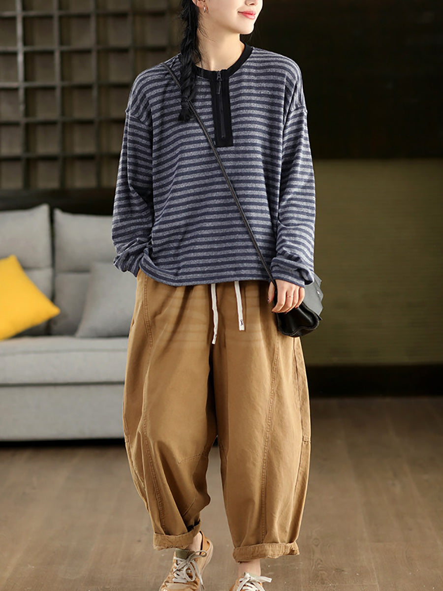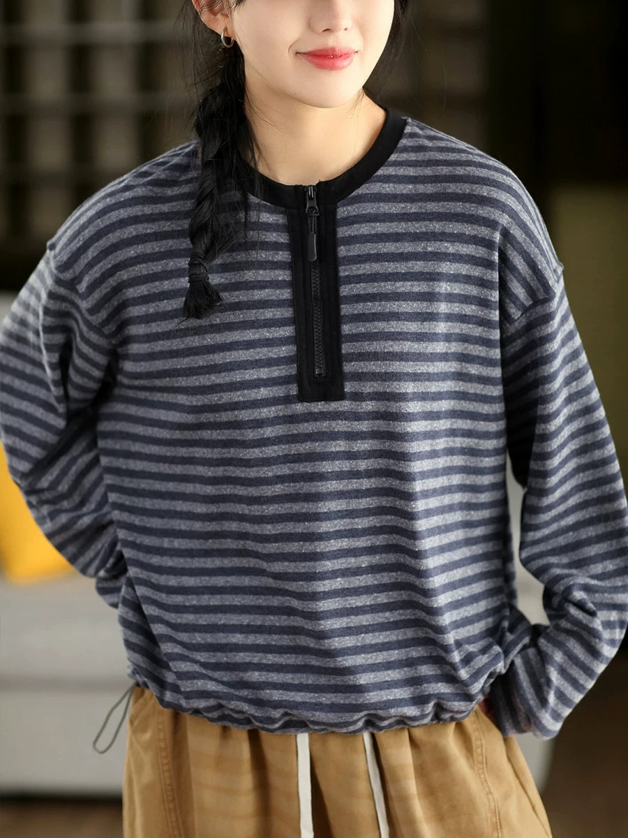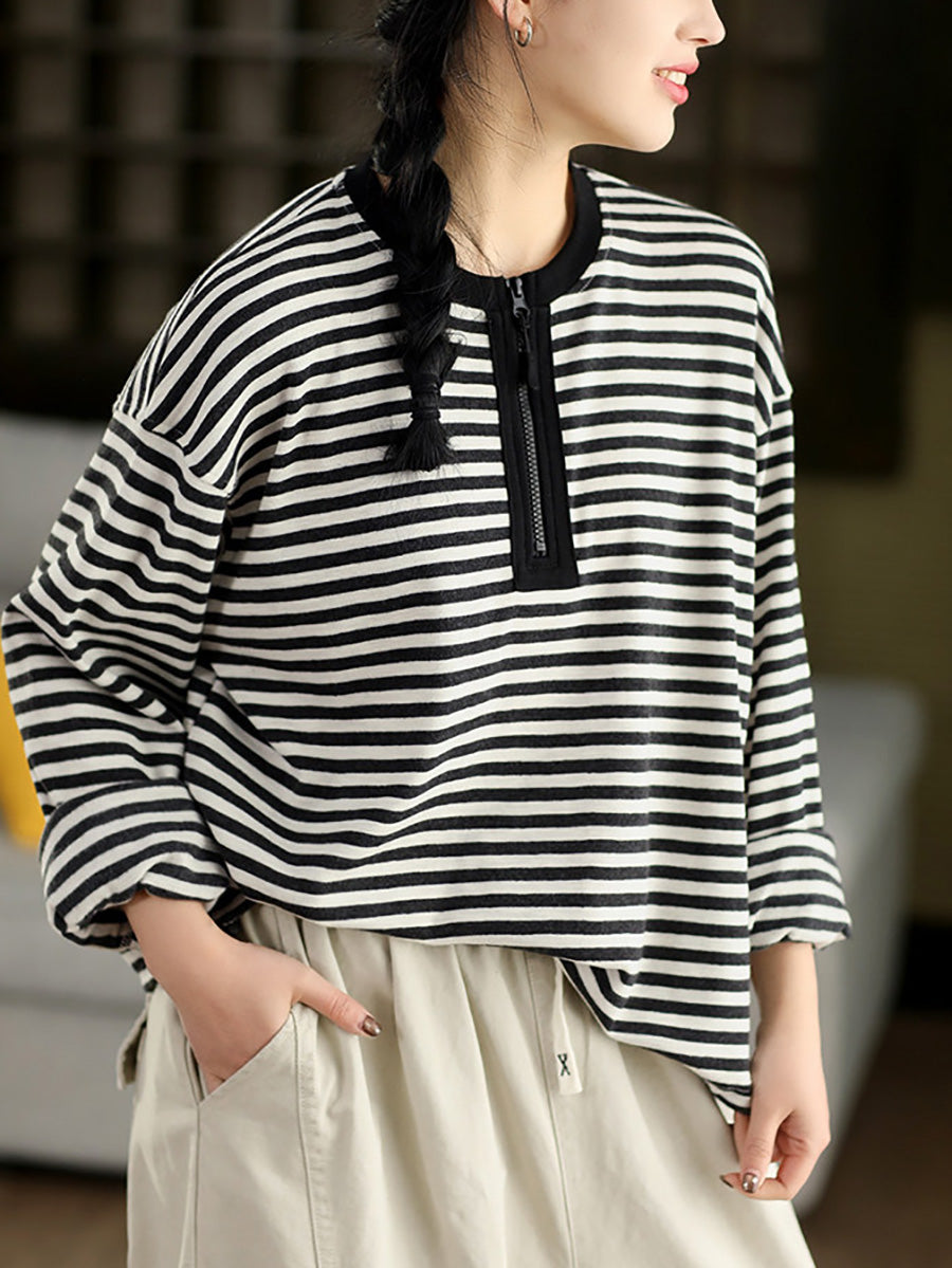 Blusa feminina Artsy Spring com listras e gola redonda em algodão.