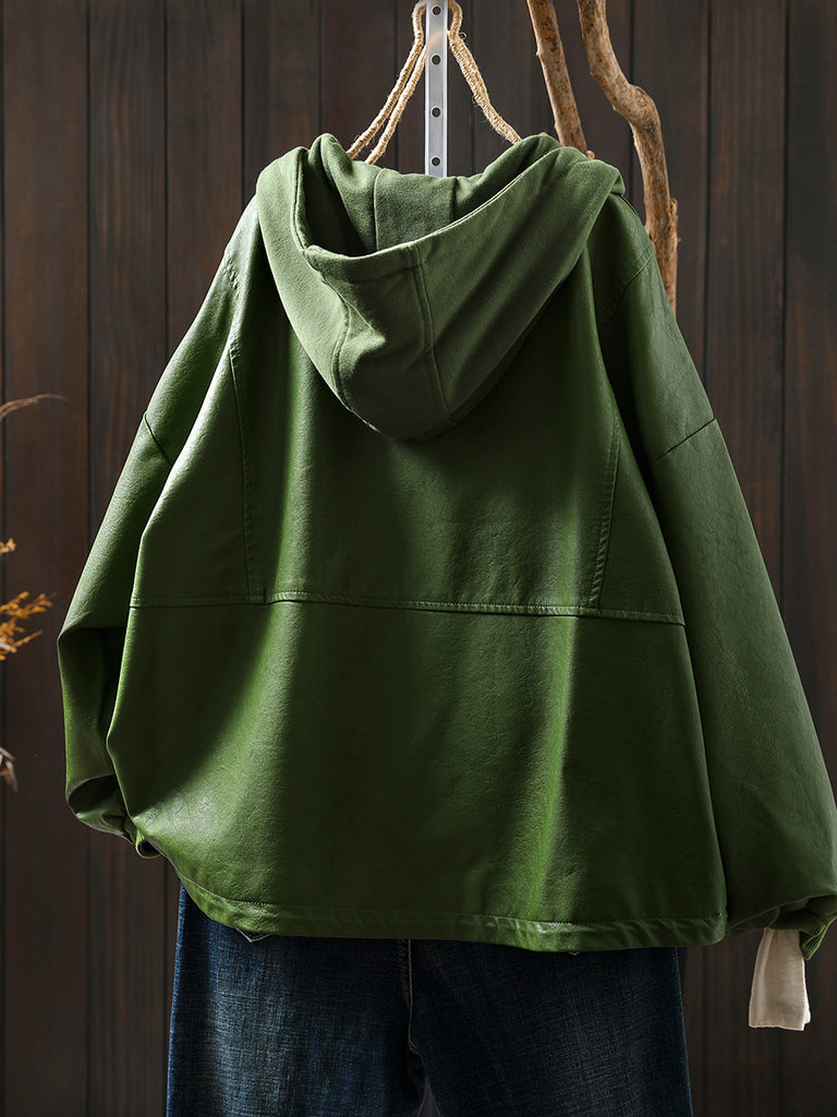 Jaqueta com capuz feminina de cor pura da moda de outono