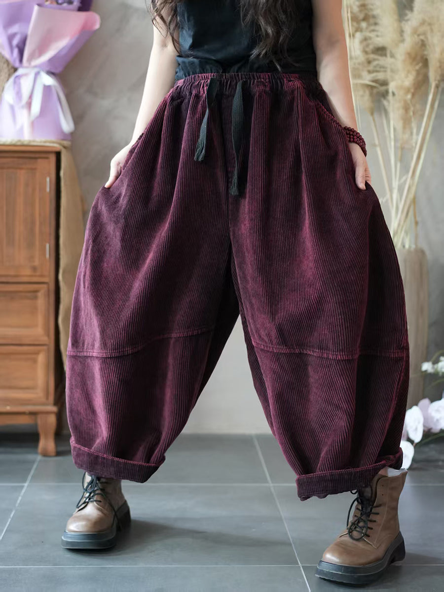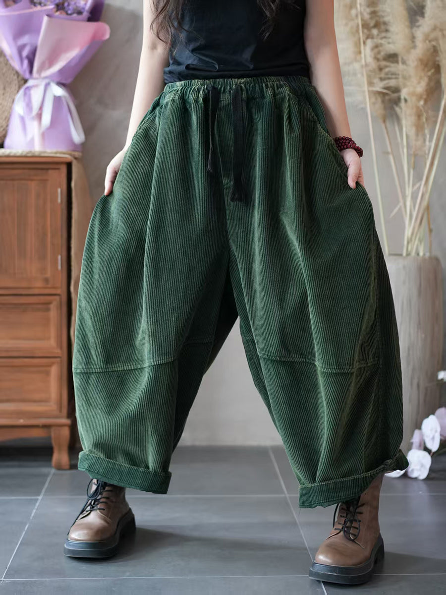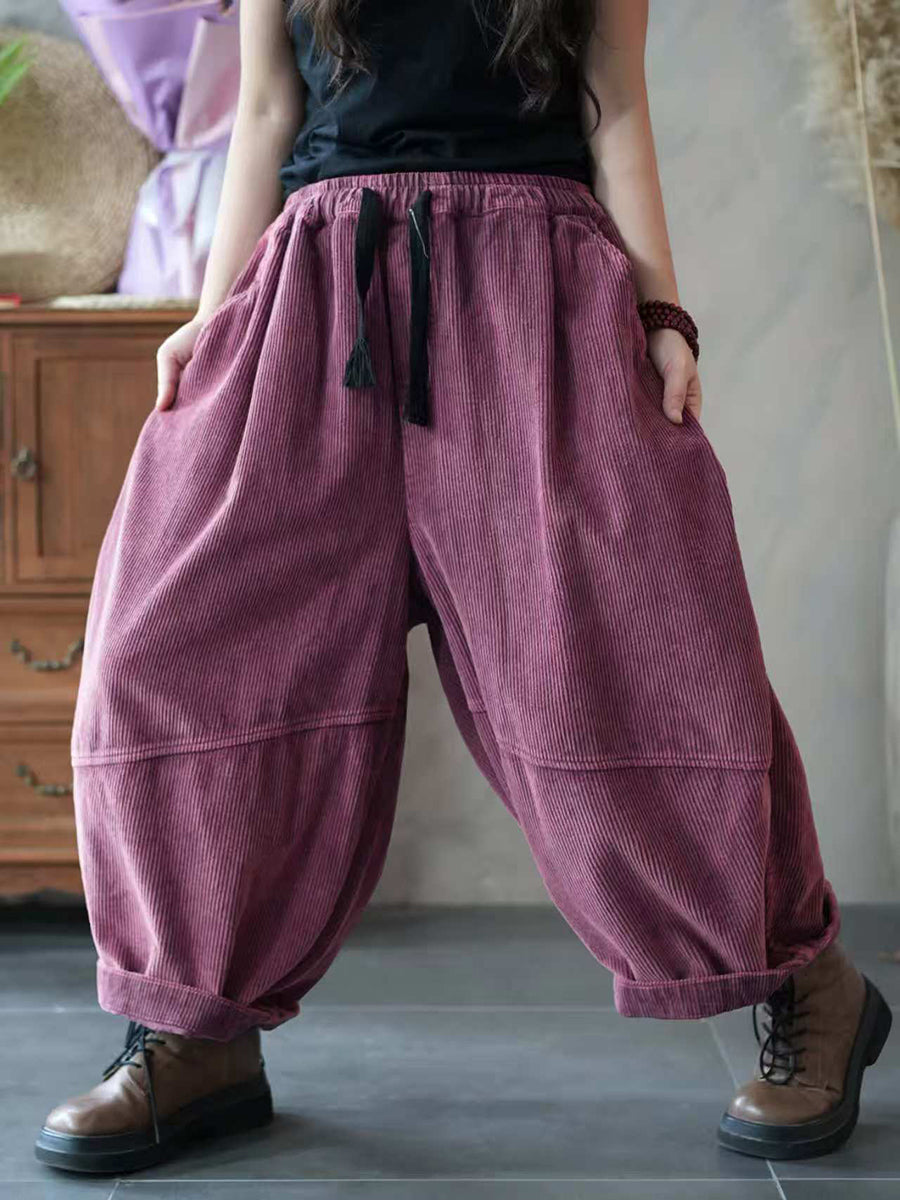Calças harém femininas de veludo cotelê com emendas de cor pura de outono