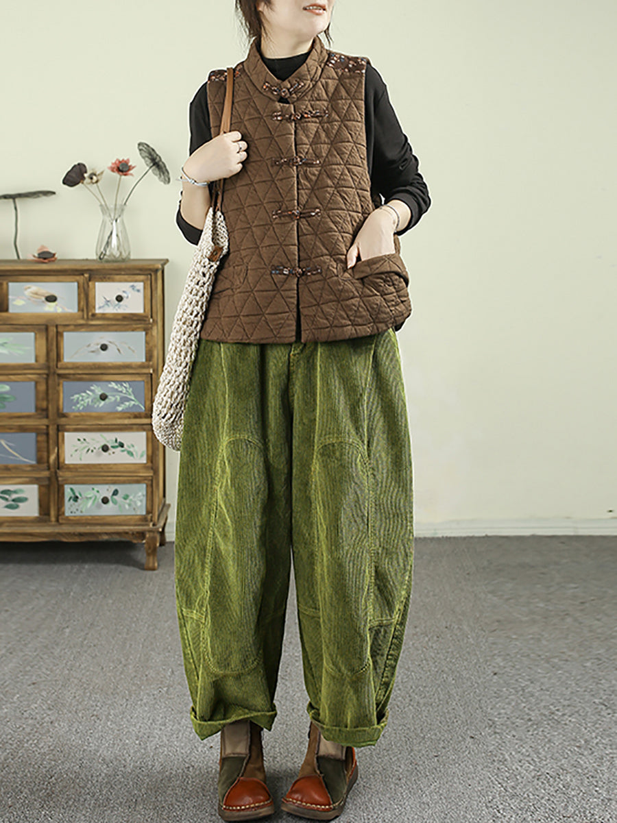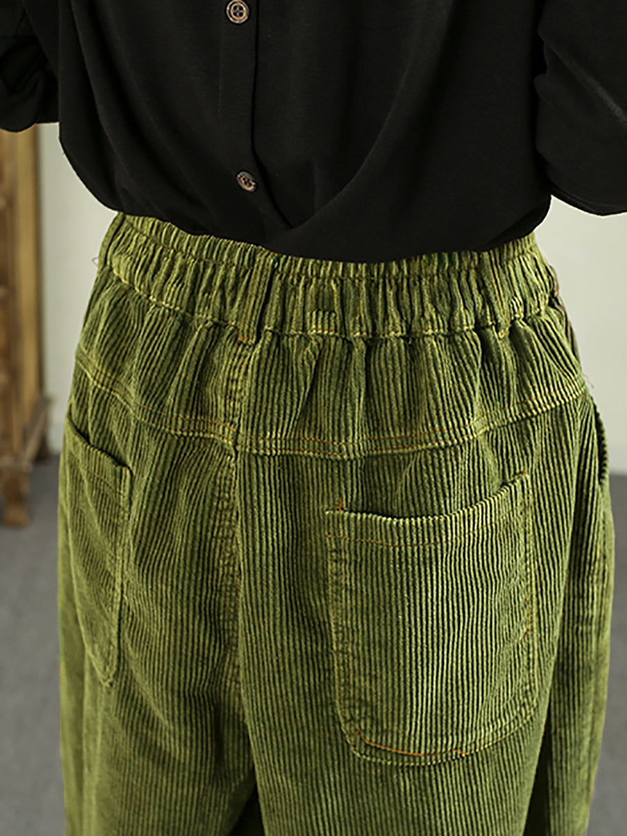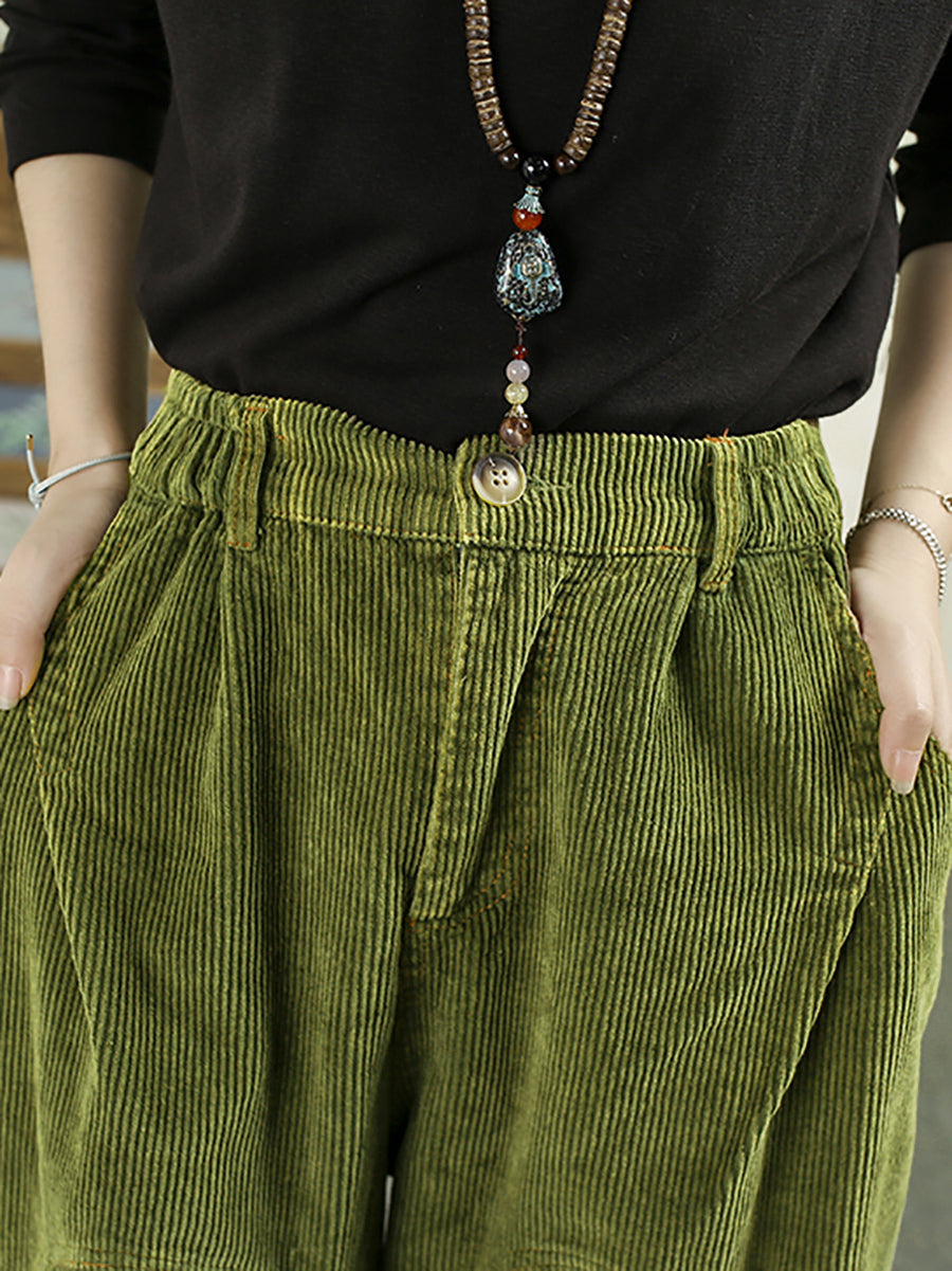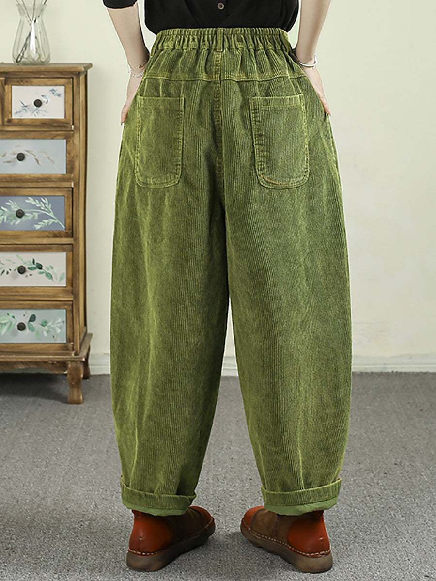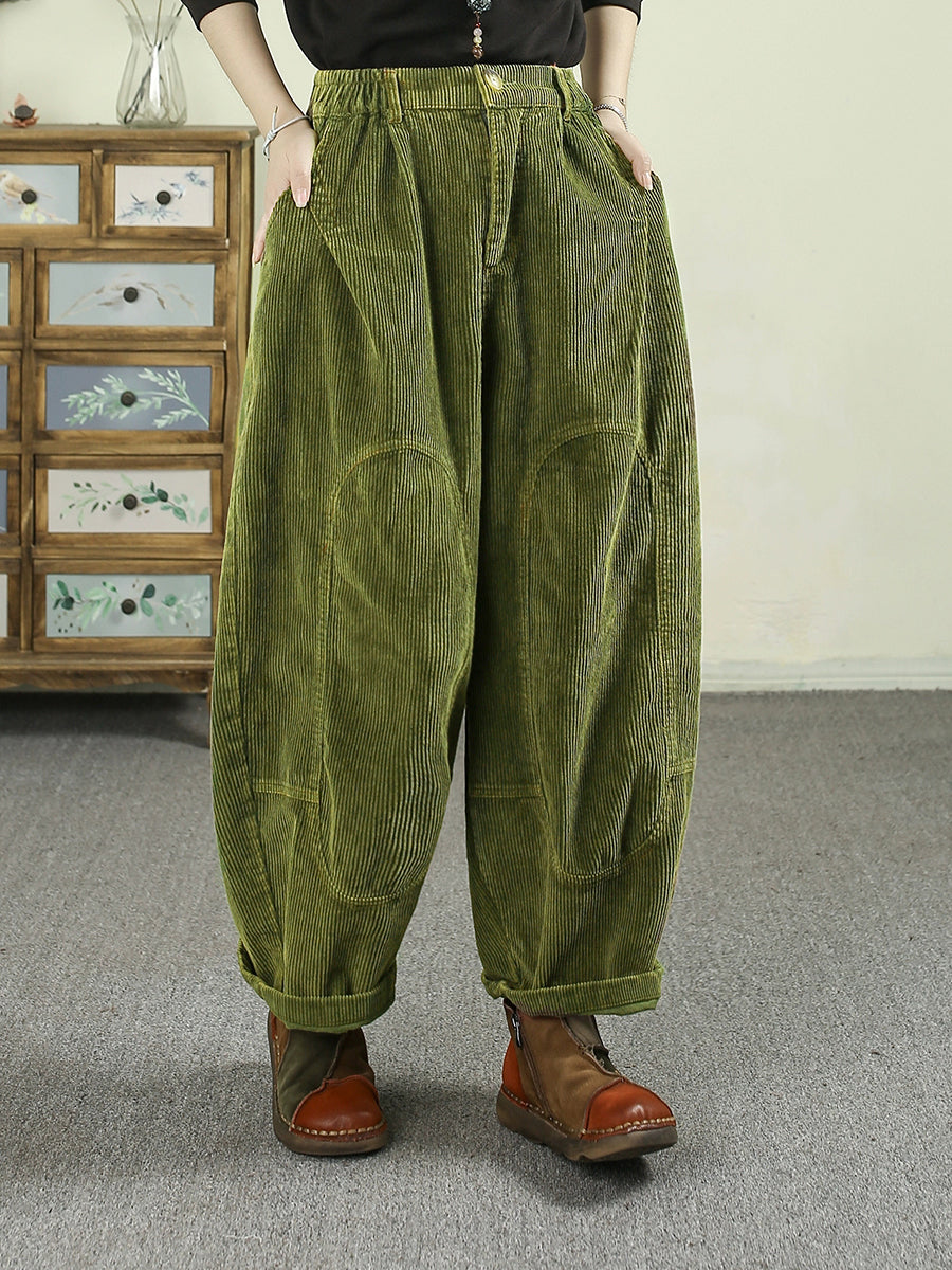 Calças harém de veludo cotelê retrô de cor pura para mulheres