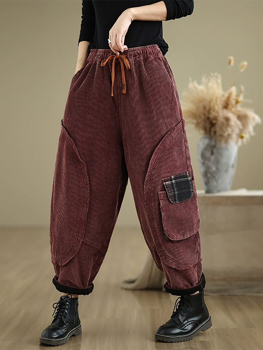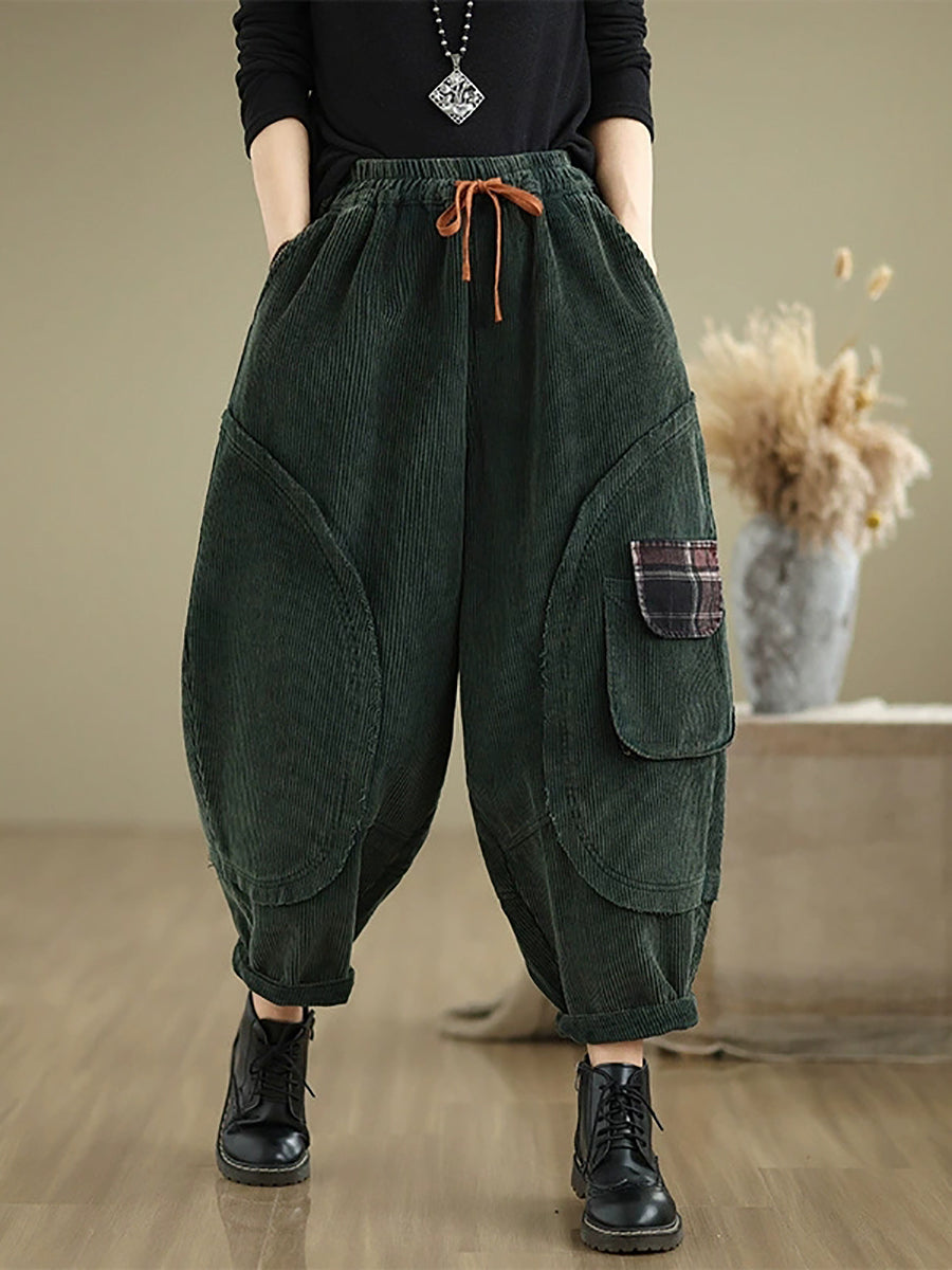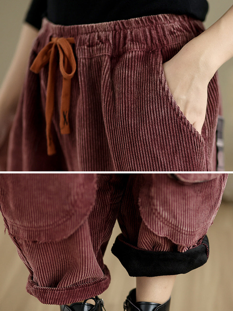 Calças harém de veludo cotelê retrô de cor pura para mulheres