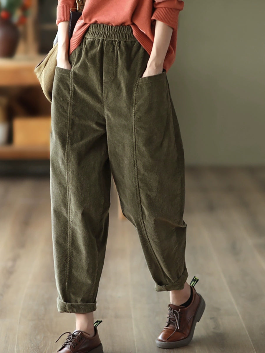 Calça Harem Feminina de Veludo Cotelê Retrô em Cores Lisas para Outono