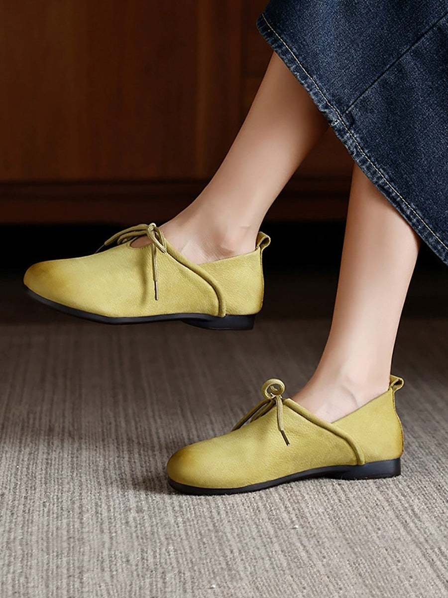 Sapatos de salto baixo femininos de couro legítimo macio para outono