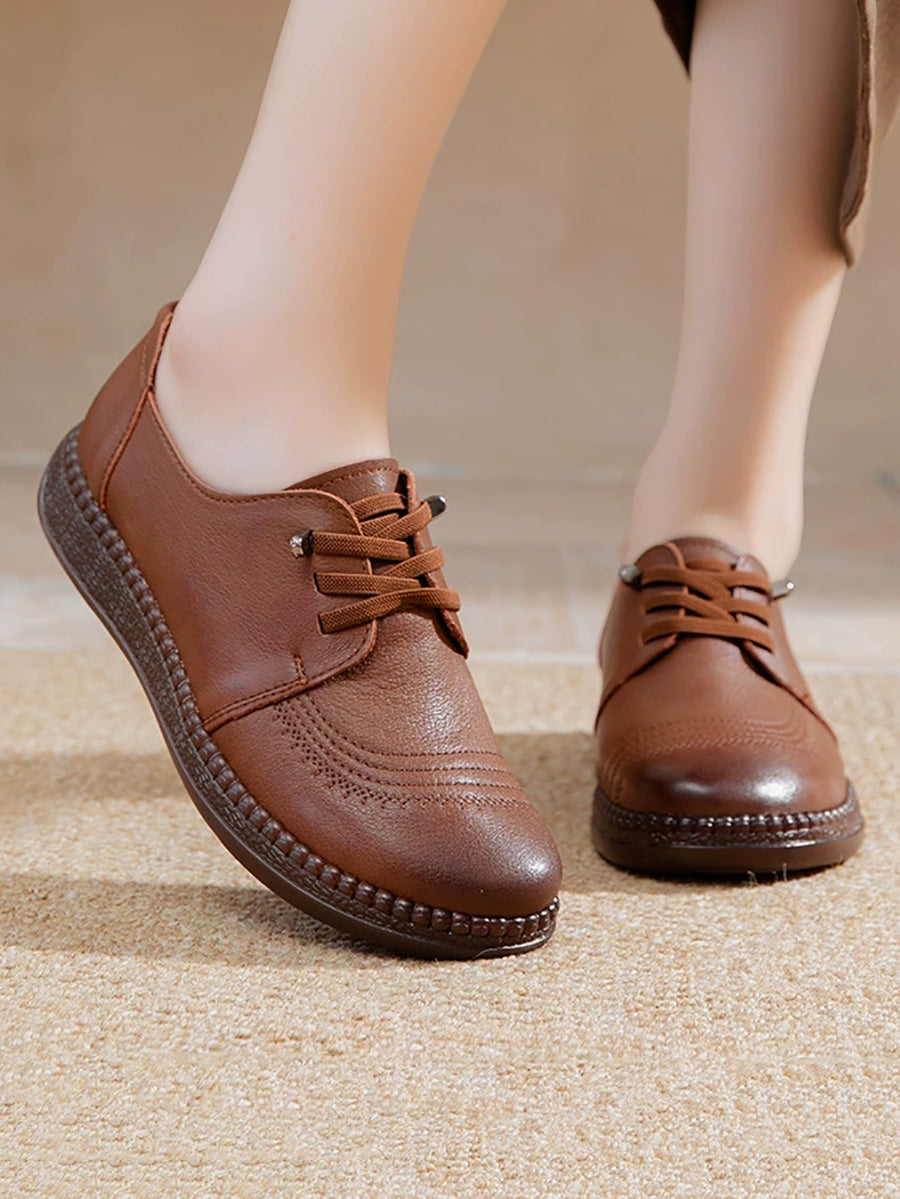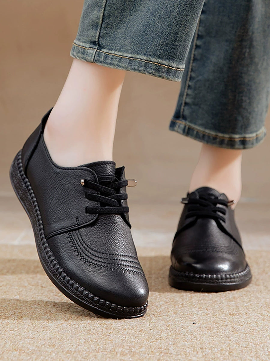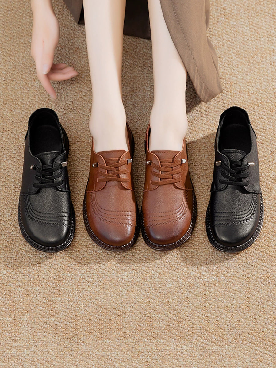 Sapatos femininos casuais de couro legítimo, modelo baixo.