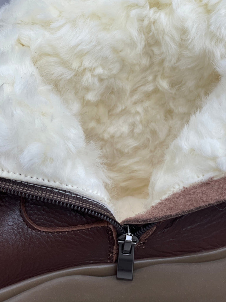 Botas femininas casuais de couro legítimo com forro de lã