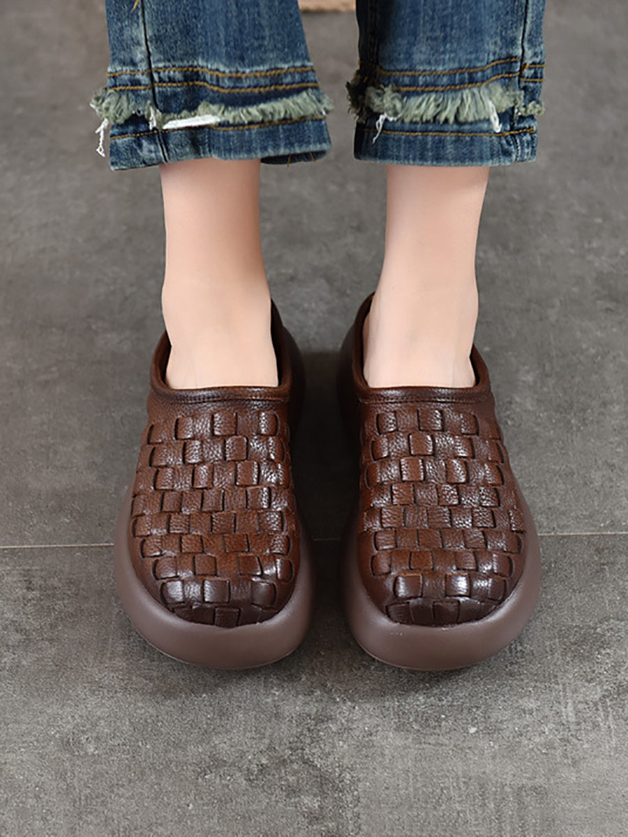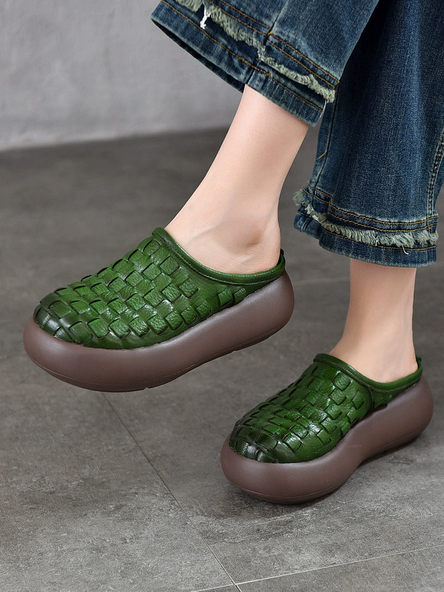 Chinelo feminino casual de plataforma em couro legítimo