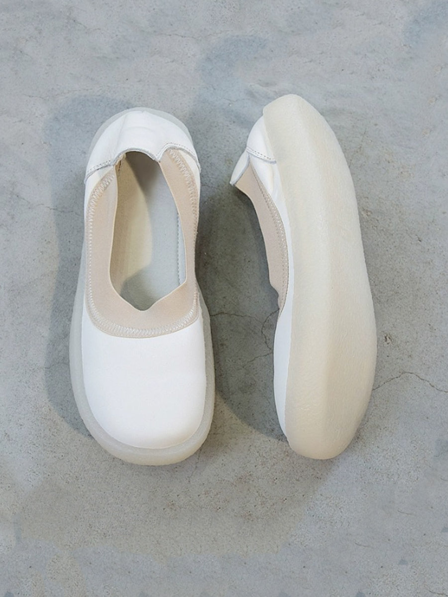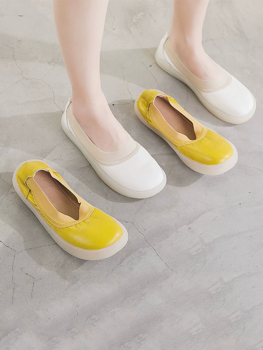Sapatos femininos casuais de couro legítimo macio e rasteiro