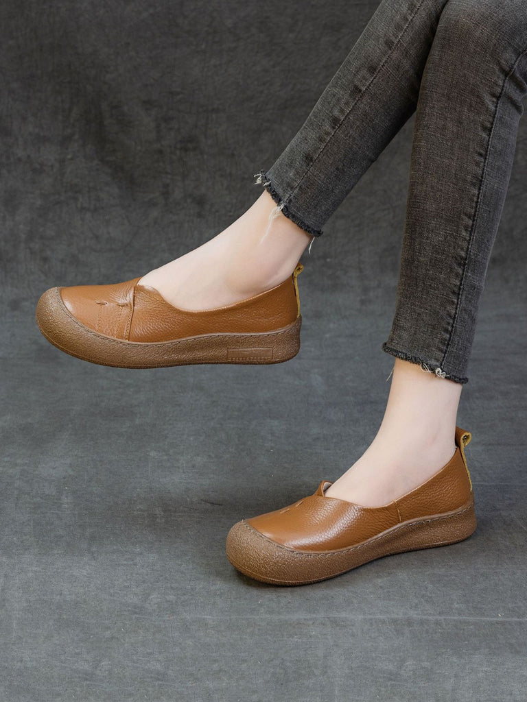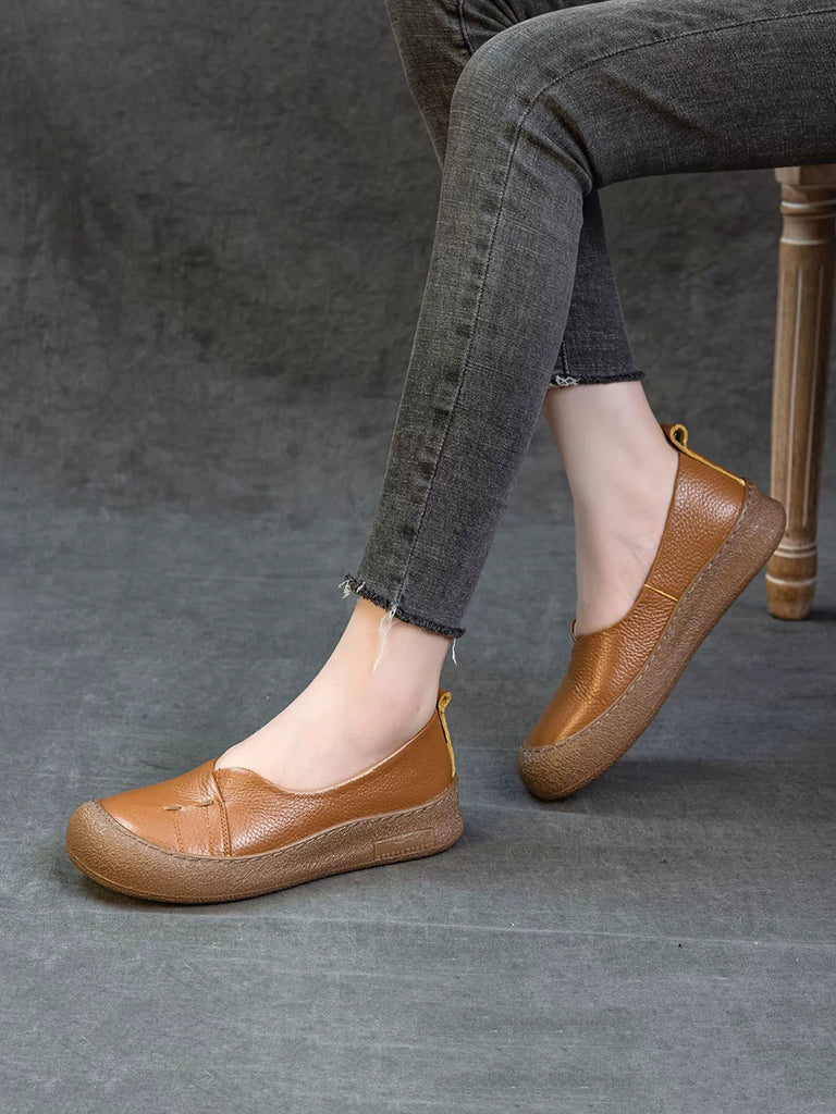 Sapatos baixos de couro genuíno de cor pura casual femininos