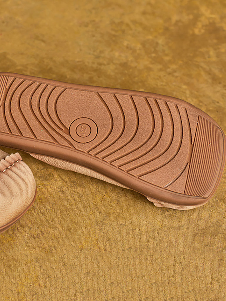 Pantufas femininas casuais de verão plissadas de couro genuíno