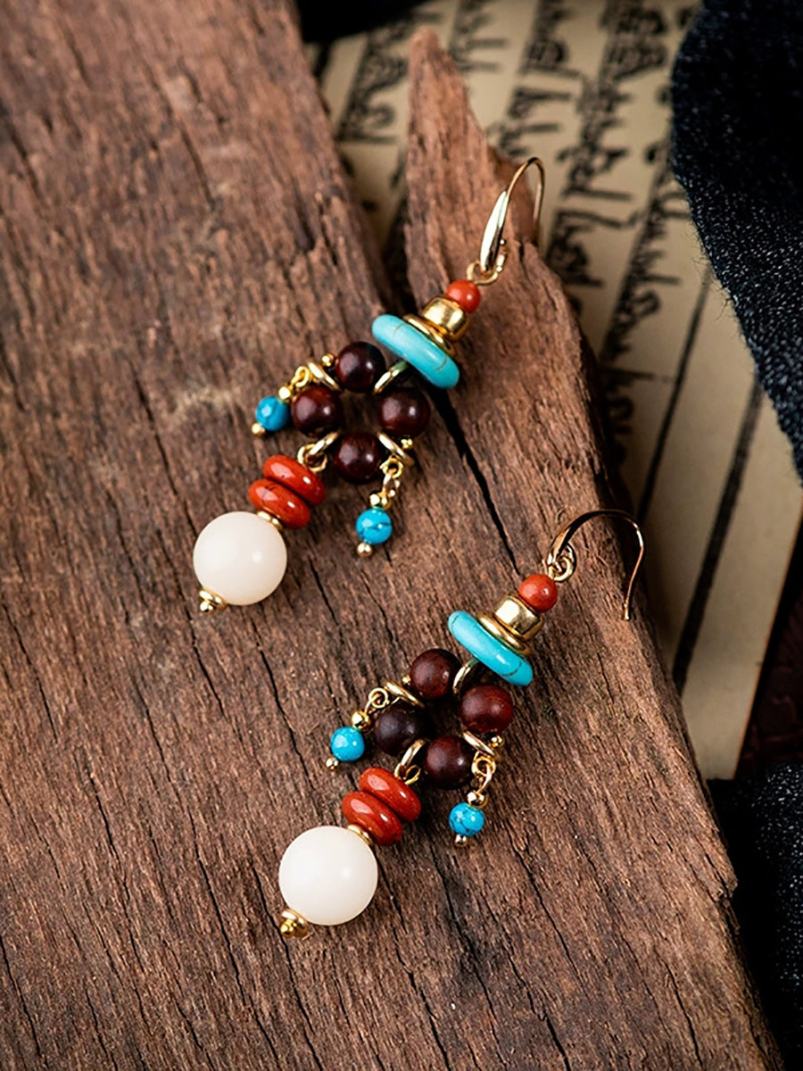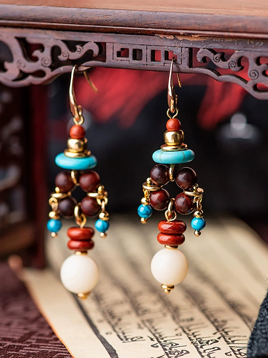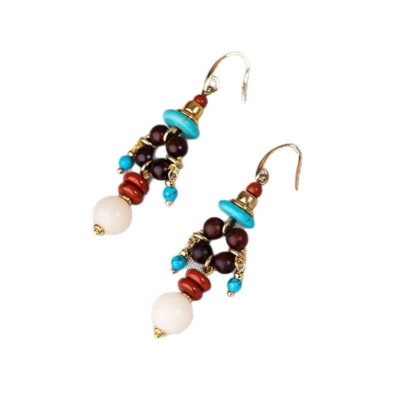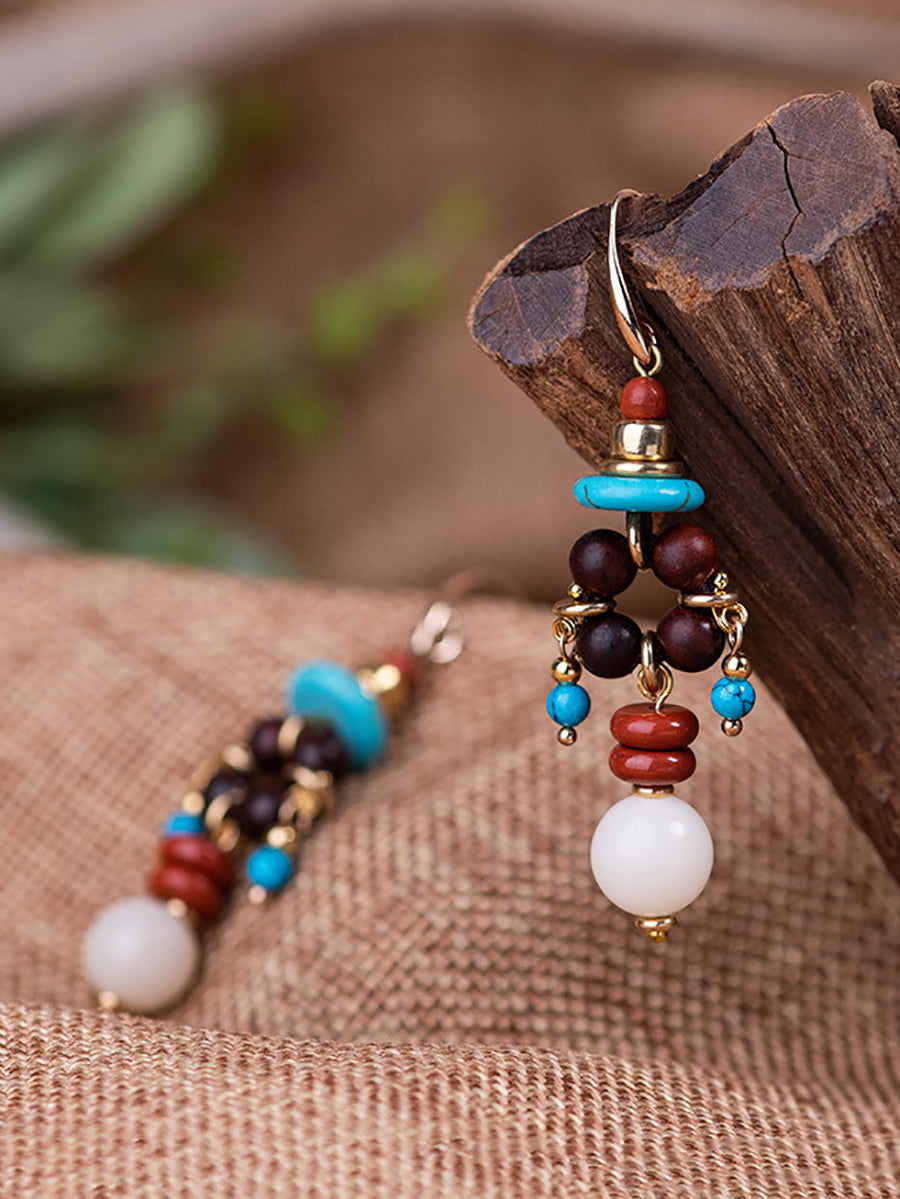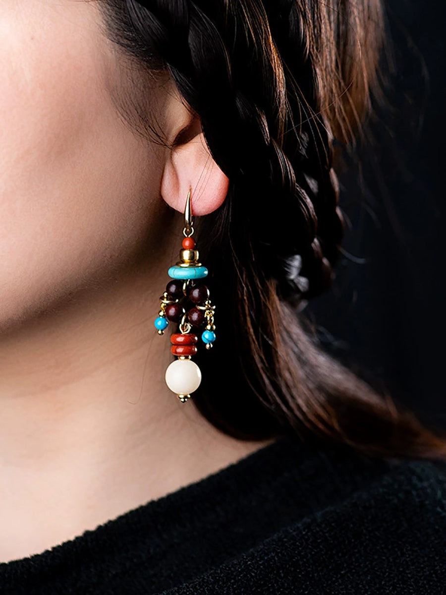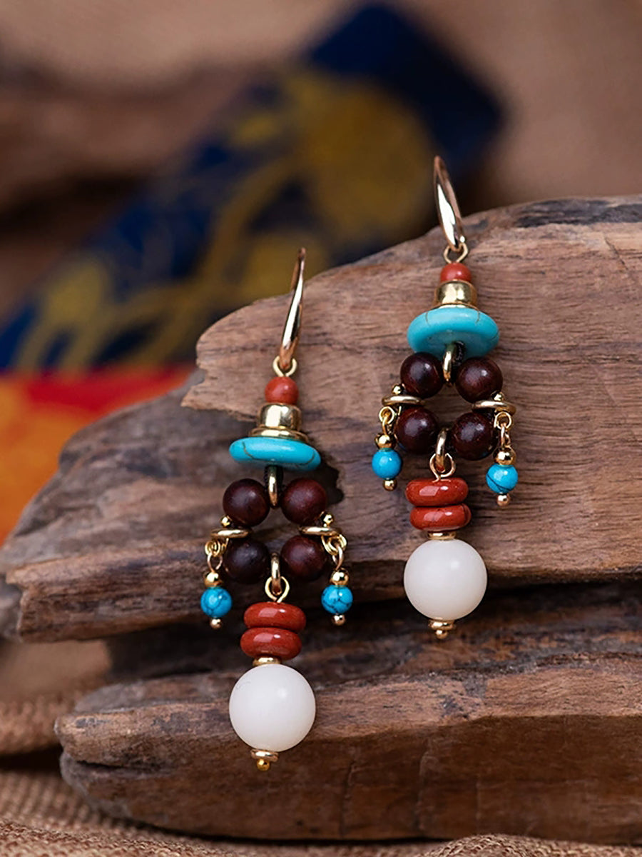 Brincos femininos étnicos com contas e pingentes de liga metálica.