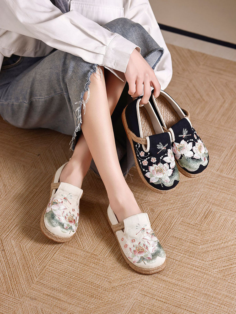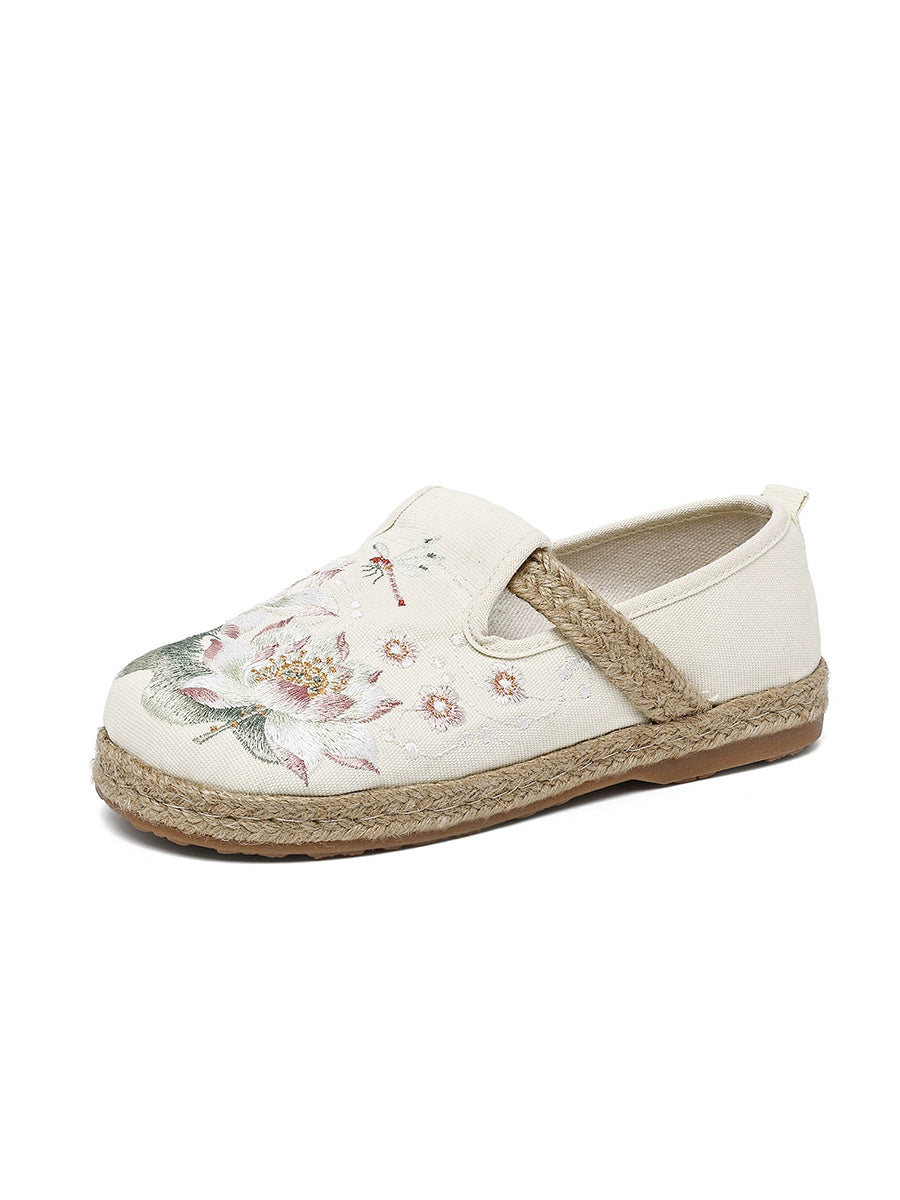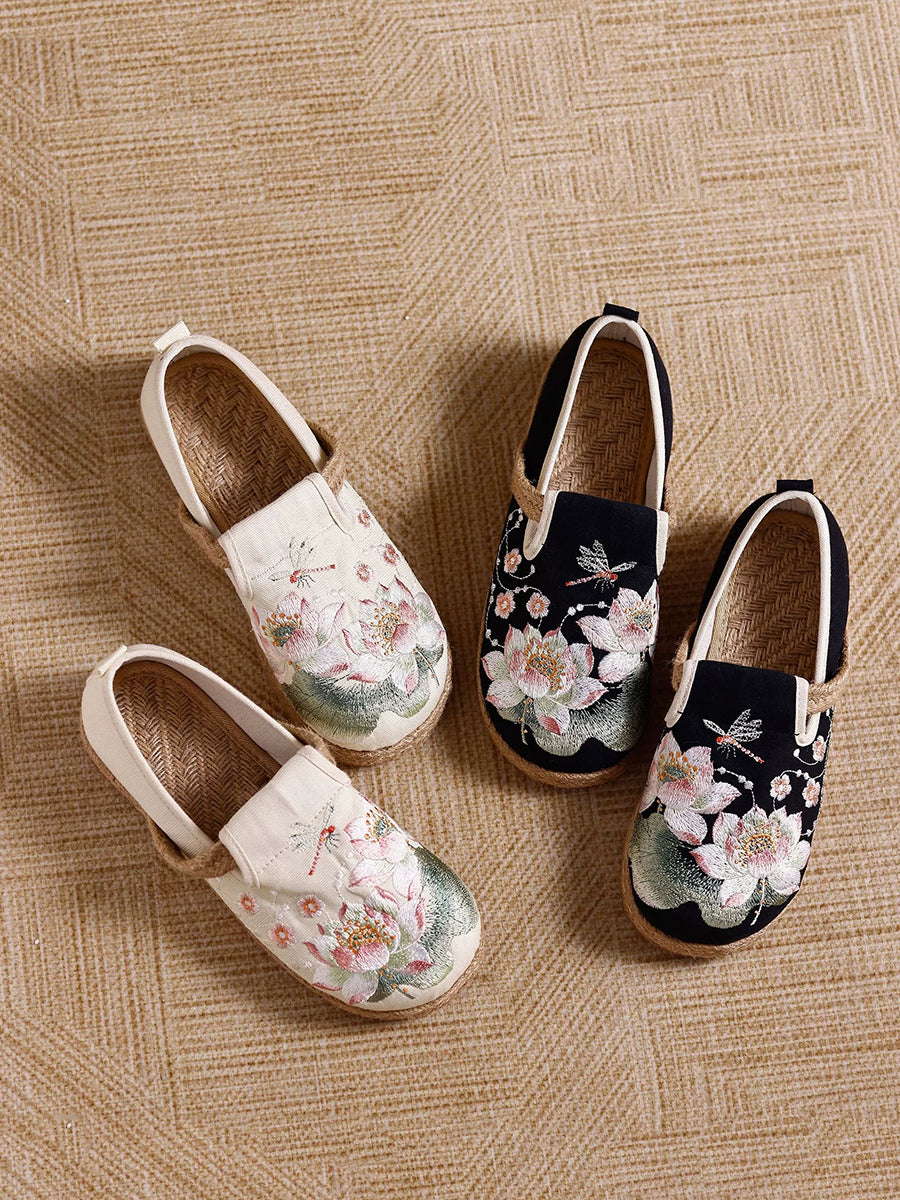 Sapatos de lona femininos com bordado de flores étnicas