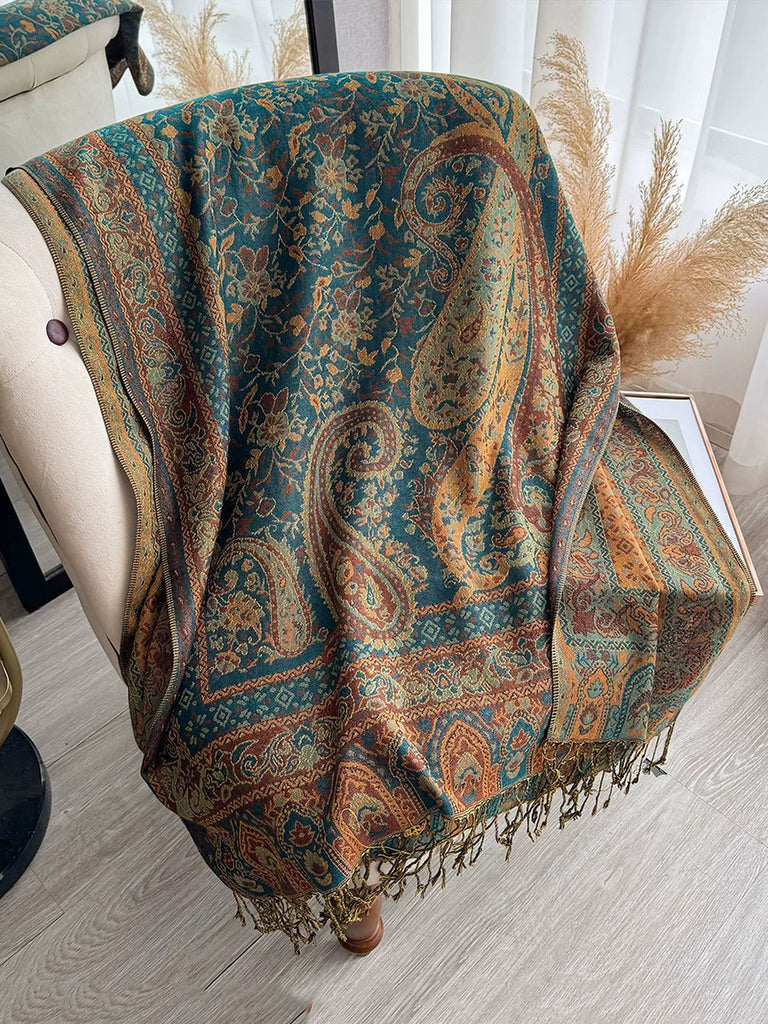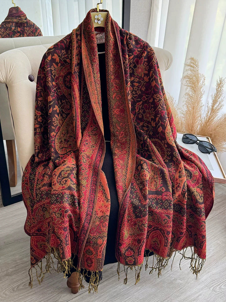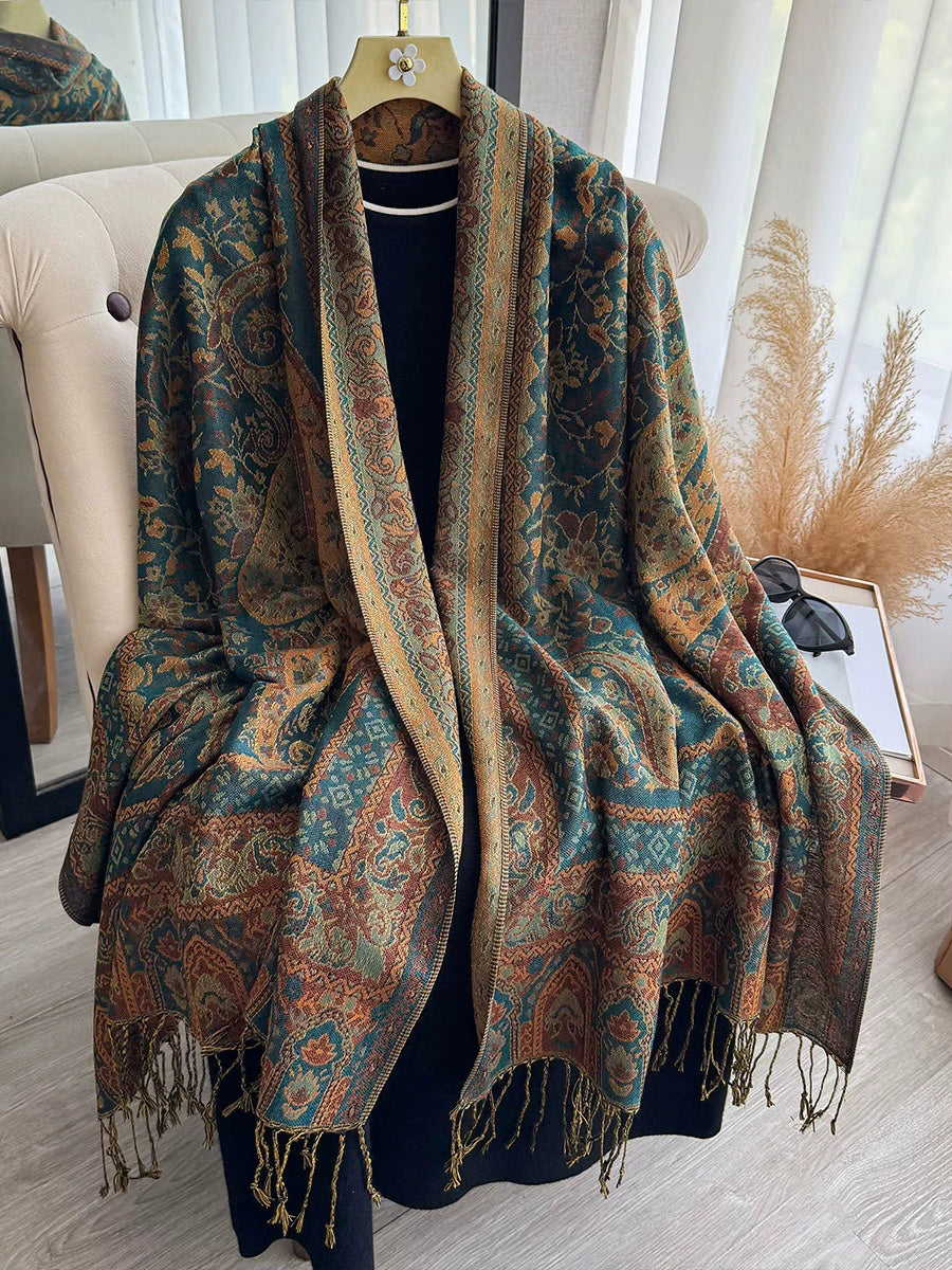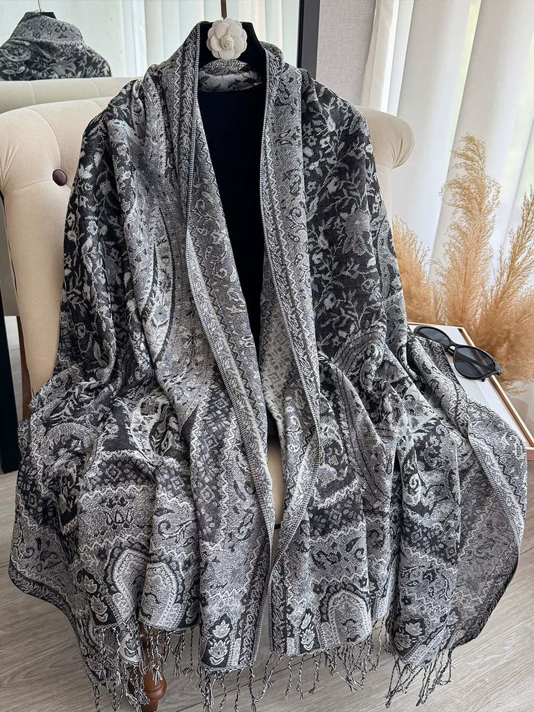 Xale/Cachecol Feminino Étnico com Borla de Flores