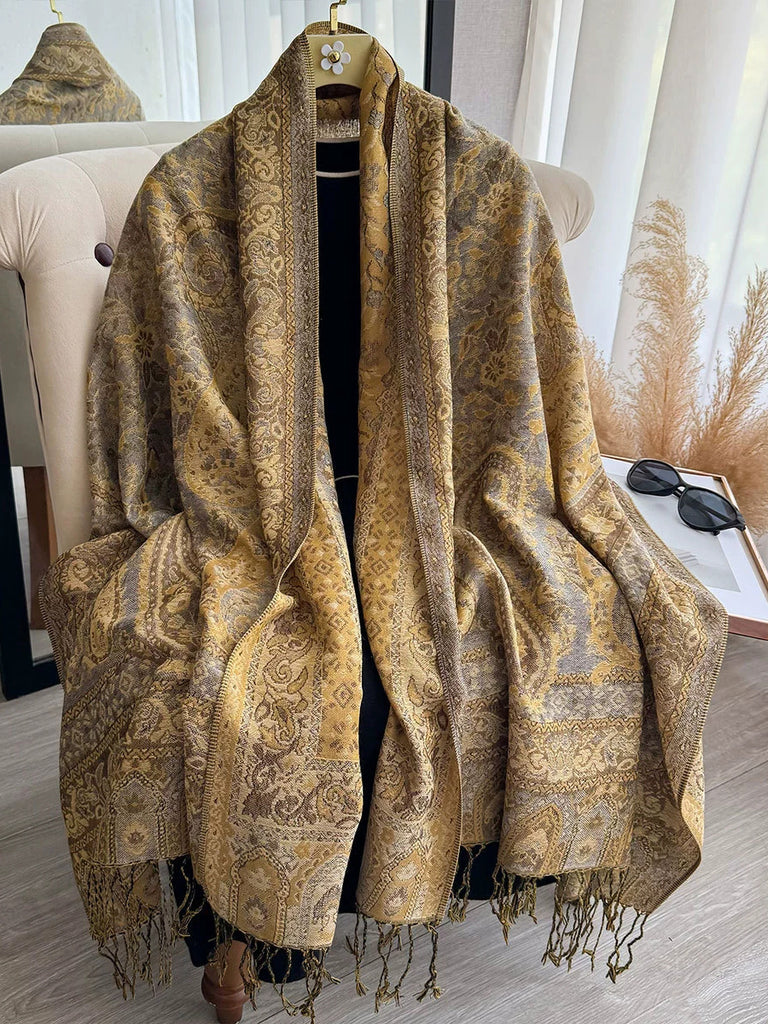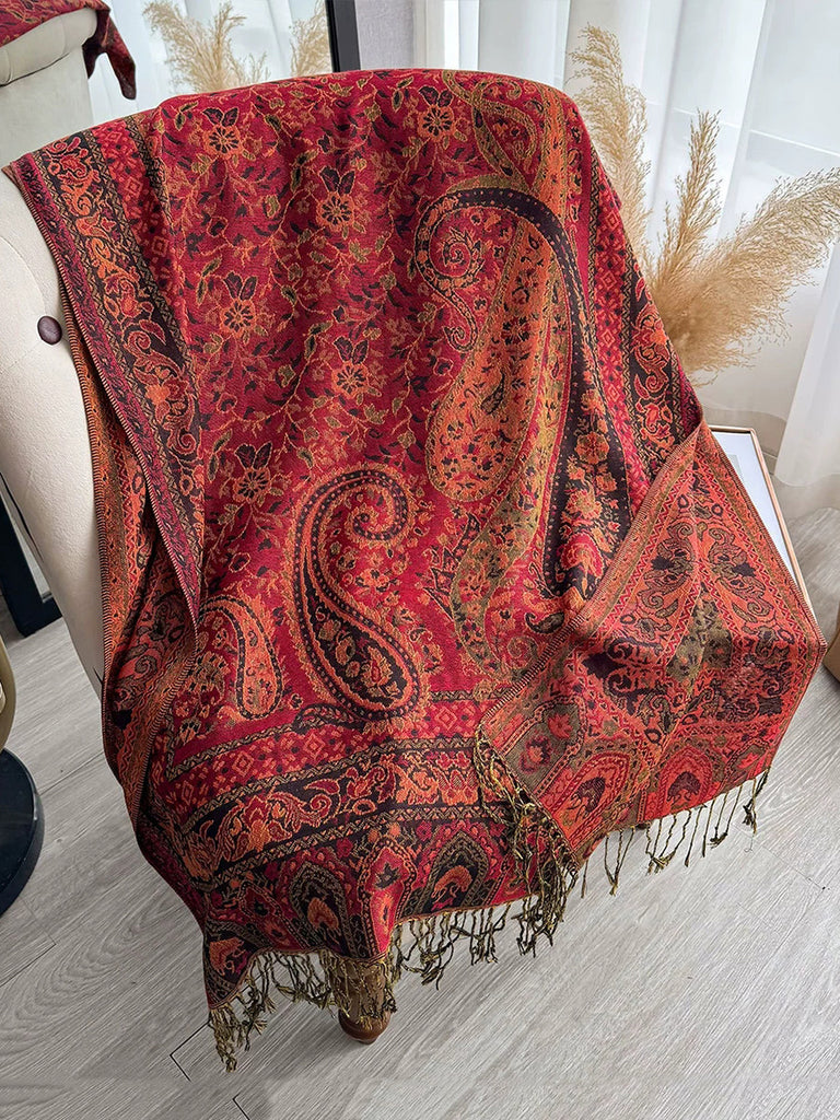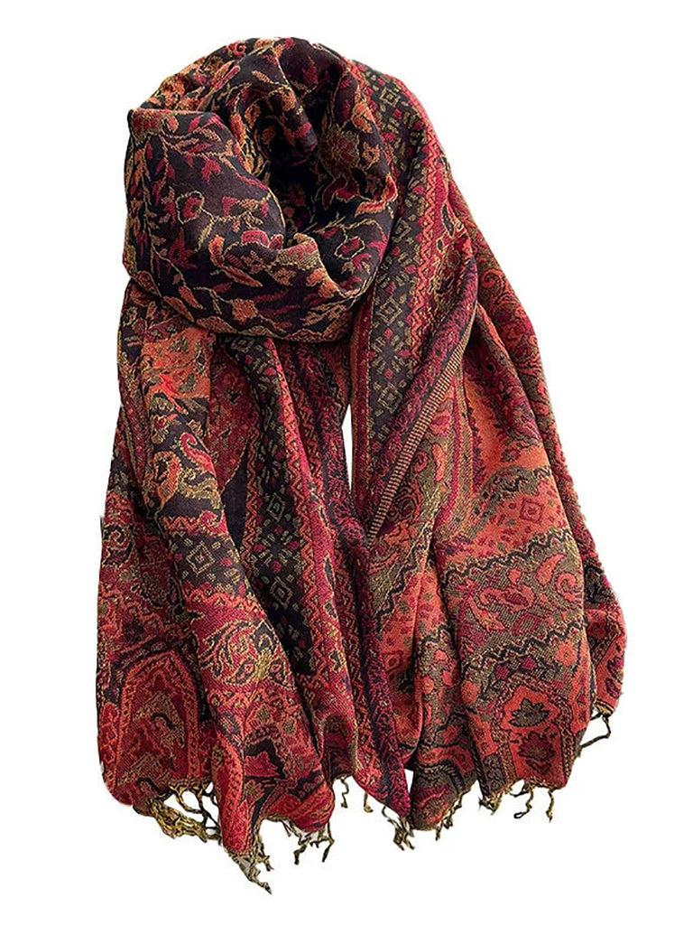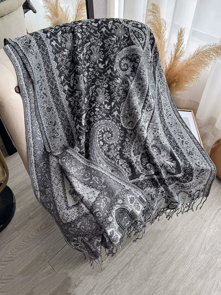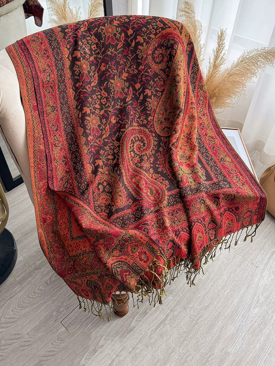 Xale/Cachecol Feminino Étnico com Borla de Flores
