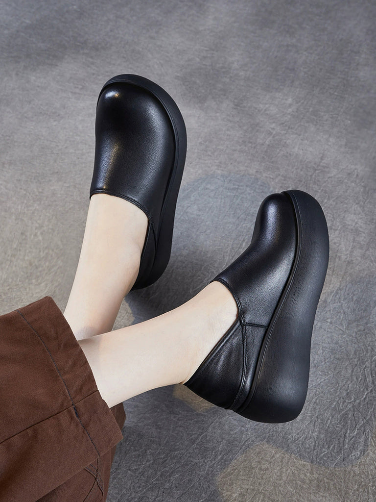 Sapatos femininos de couro legítimo com plataforma de cor pura