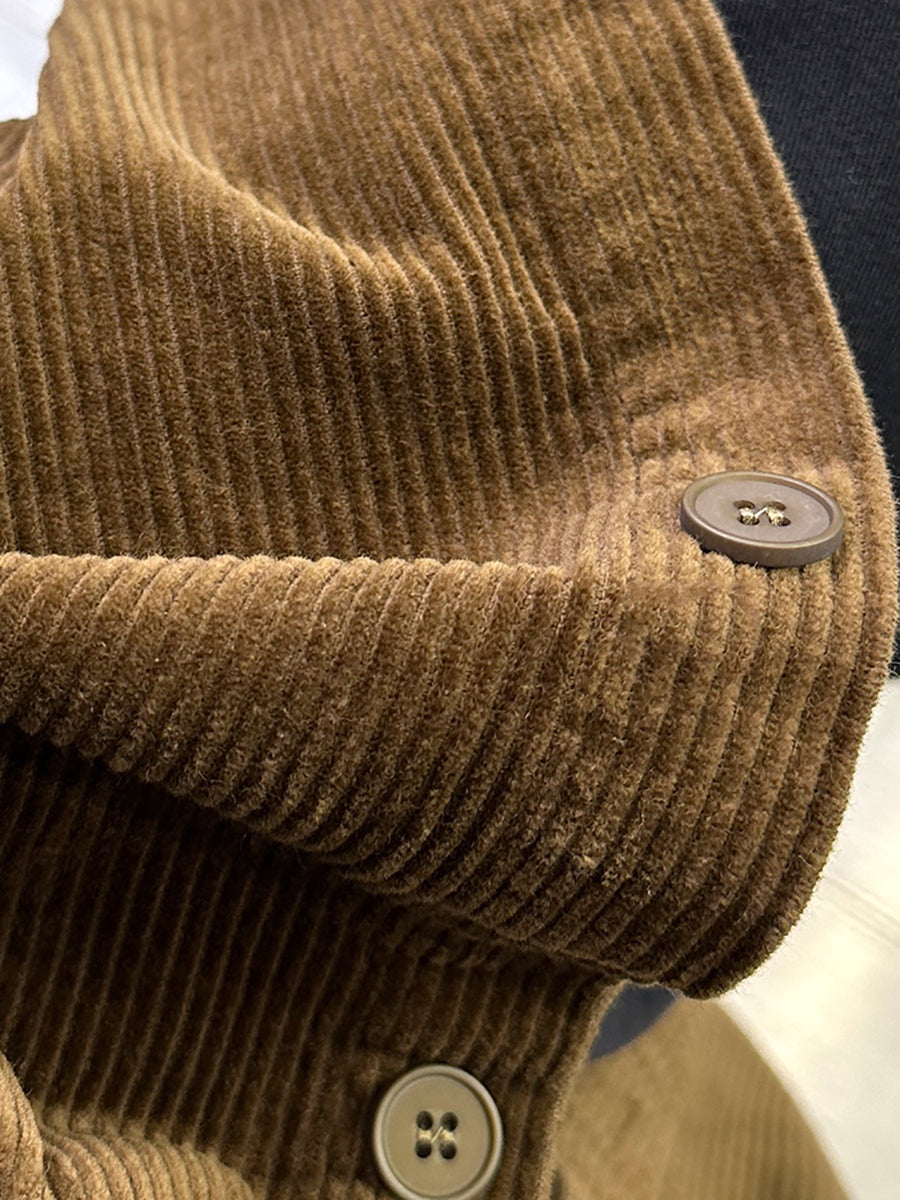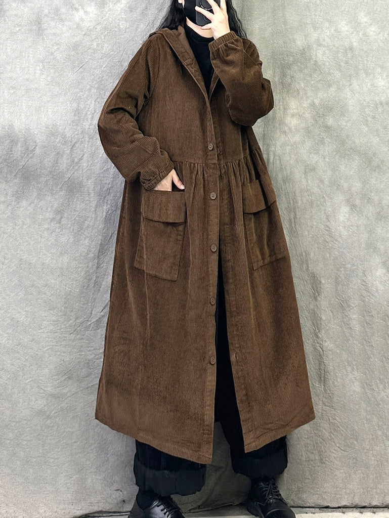 Casaco de veludo cotelê com capuz retrô de outono feminino, cor pura