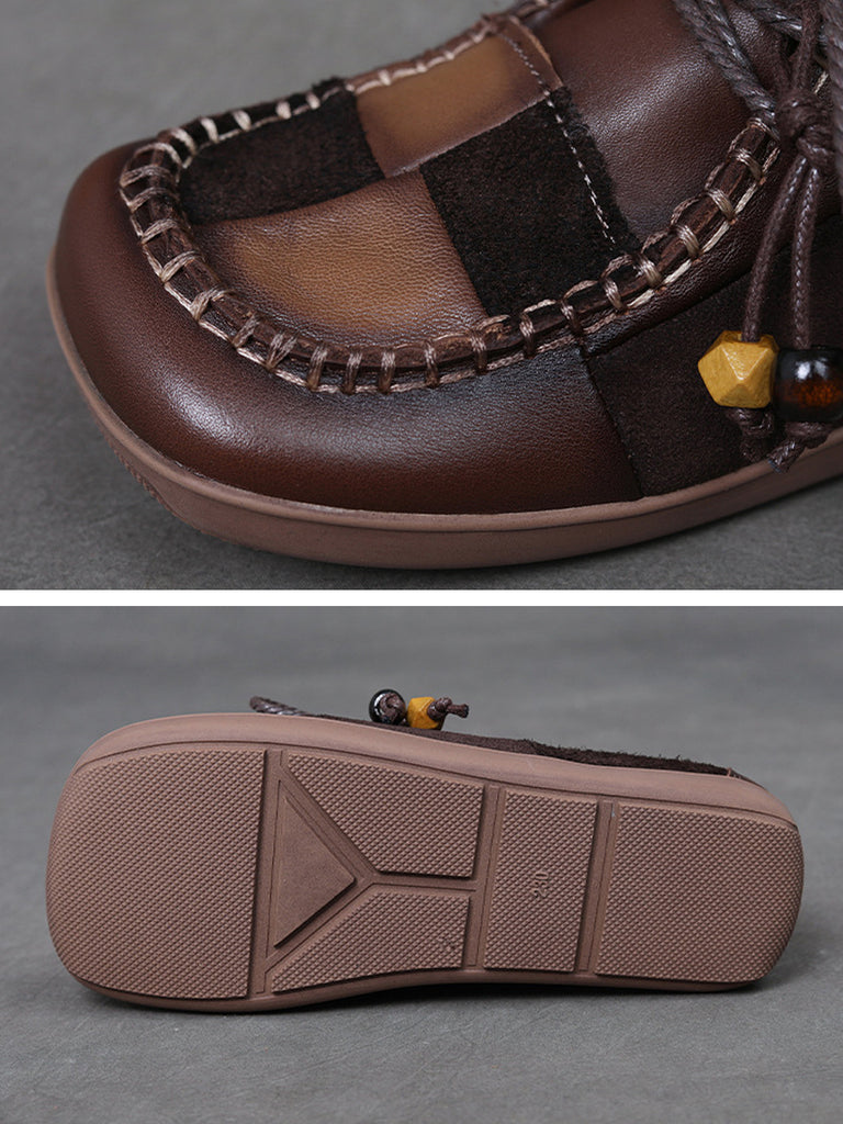 Sapatos femininos retrô de couro legítimo xadrez com emendas