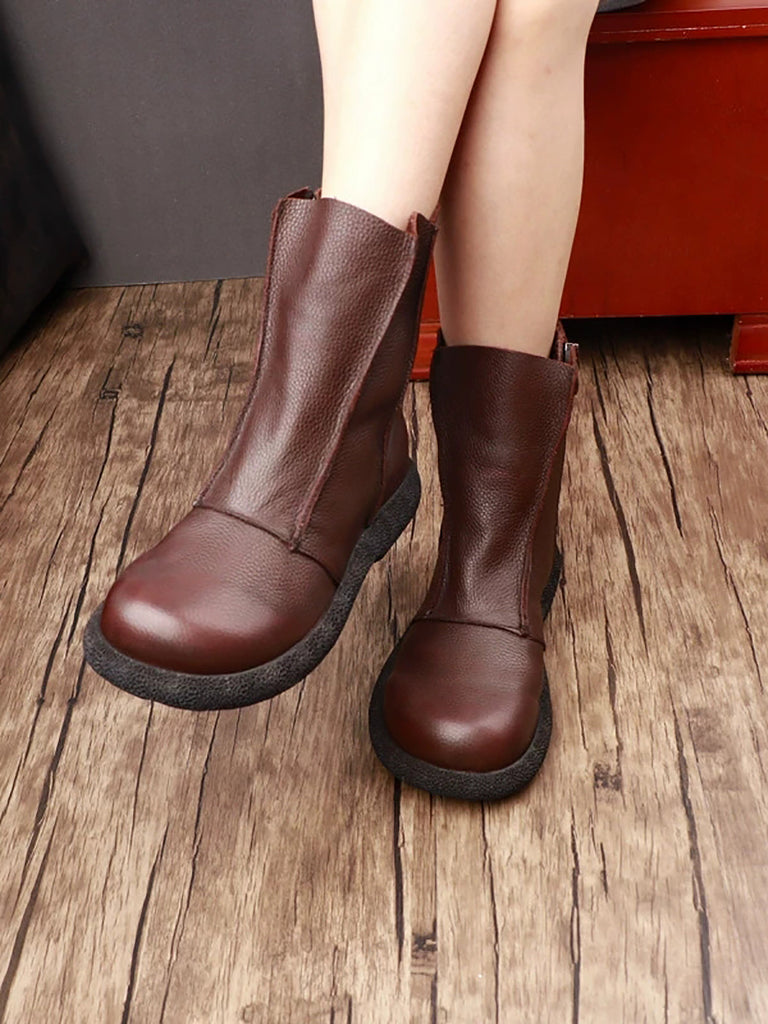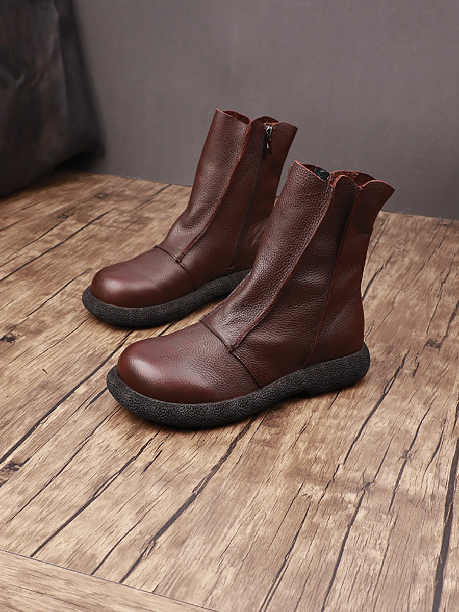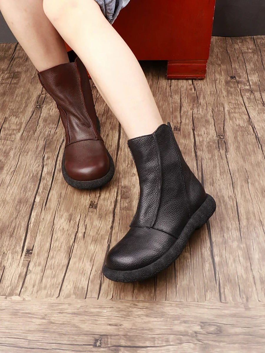 Botas de tornozelo femininas retrô em couro genuíno com detalhes em viés