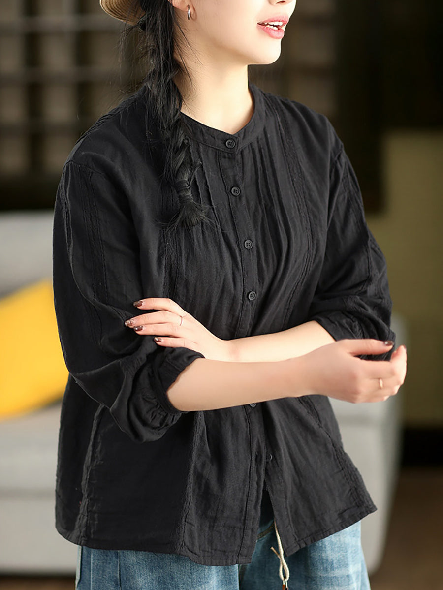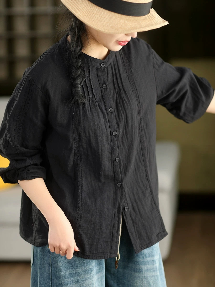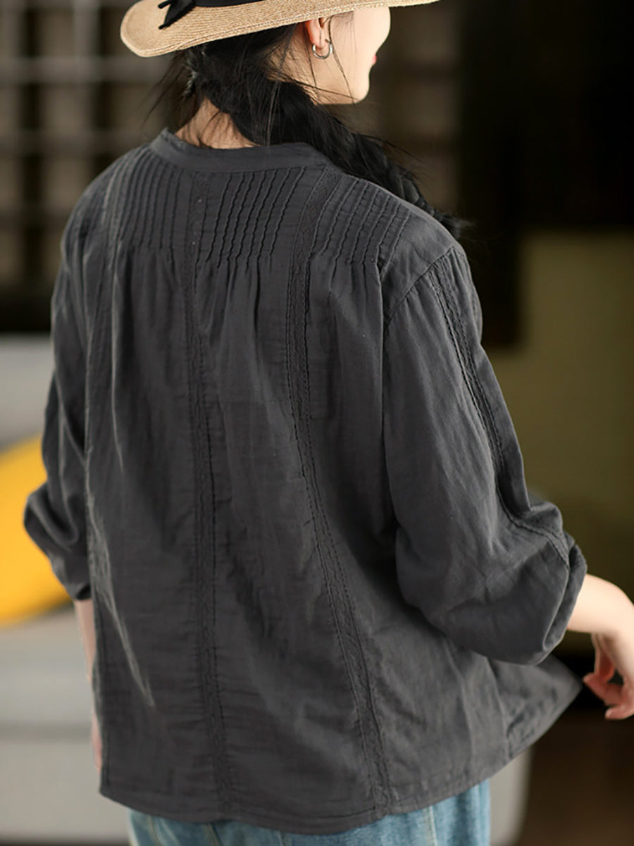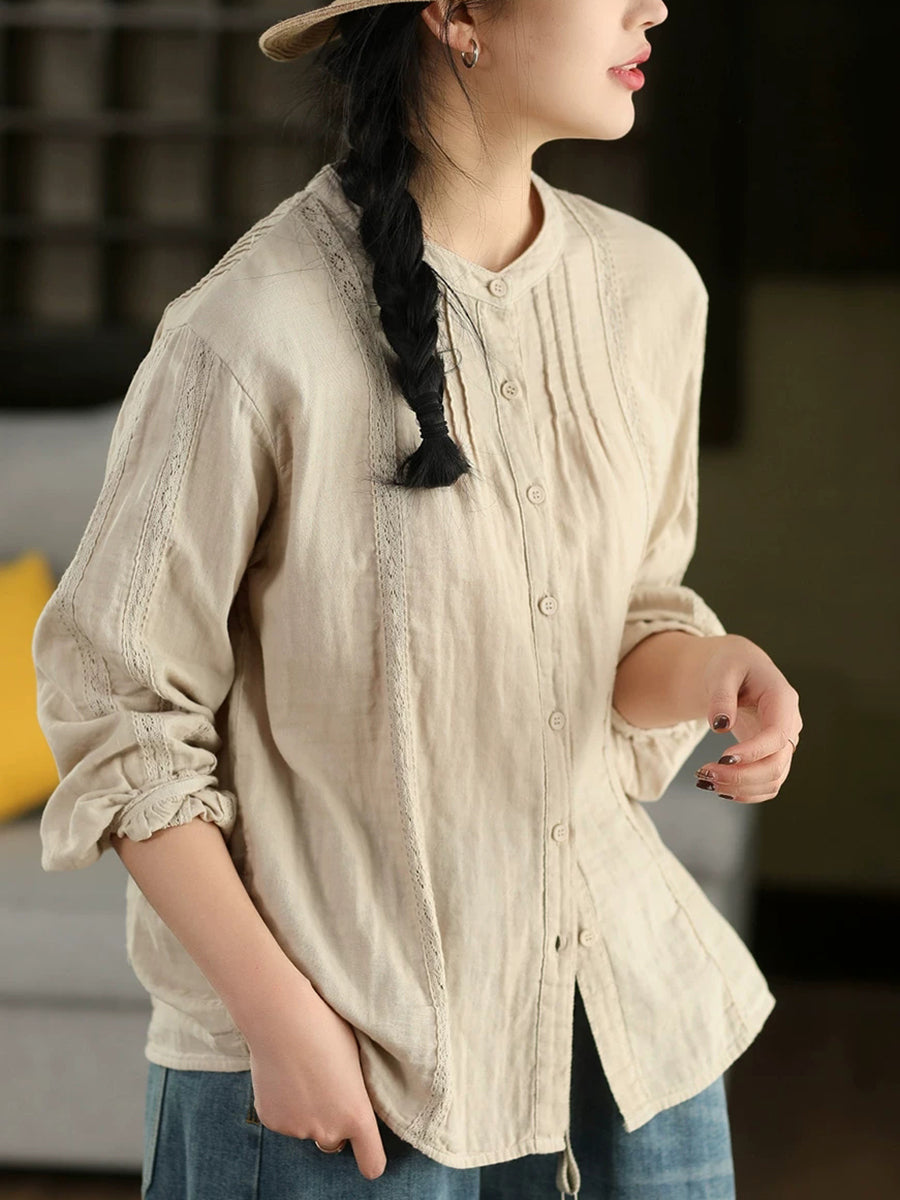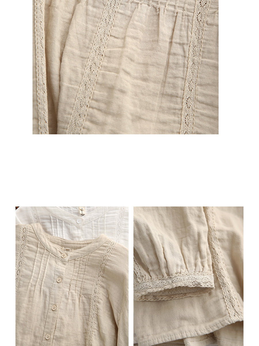 Camisa feminina de primavera com detalhes em renda artística, 100% algodão.