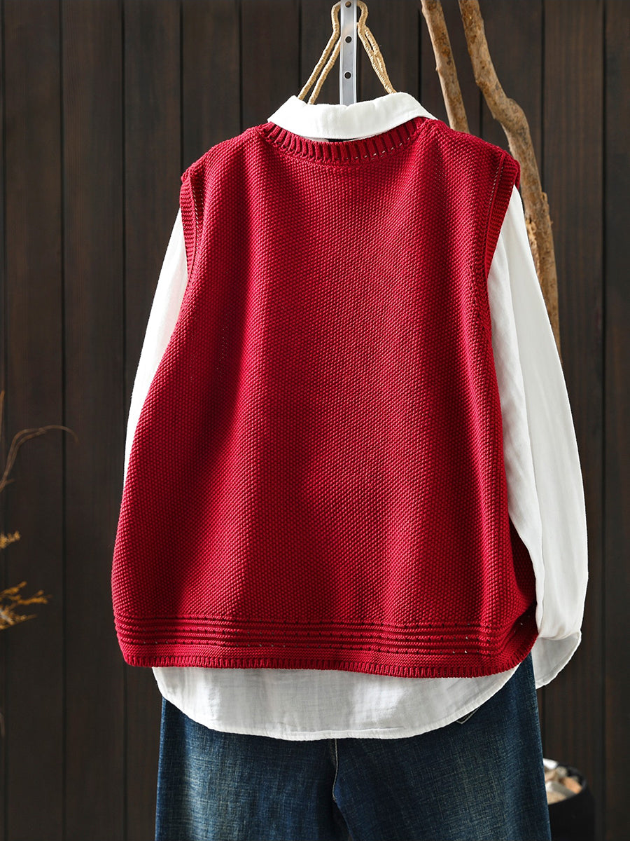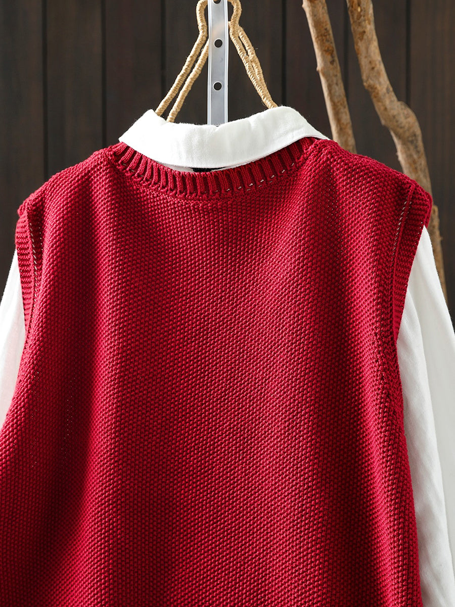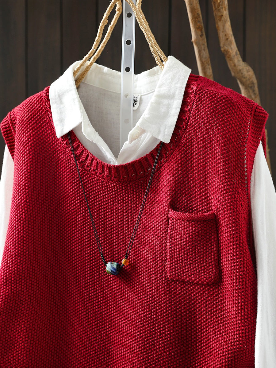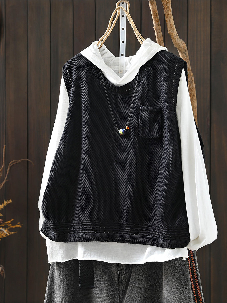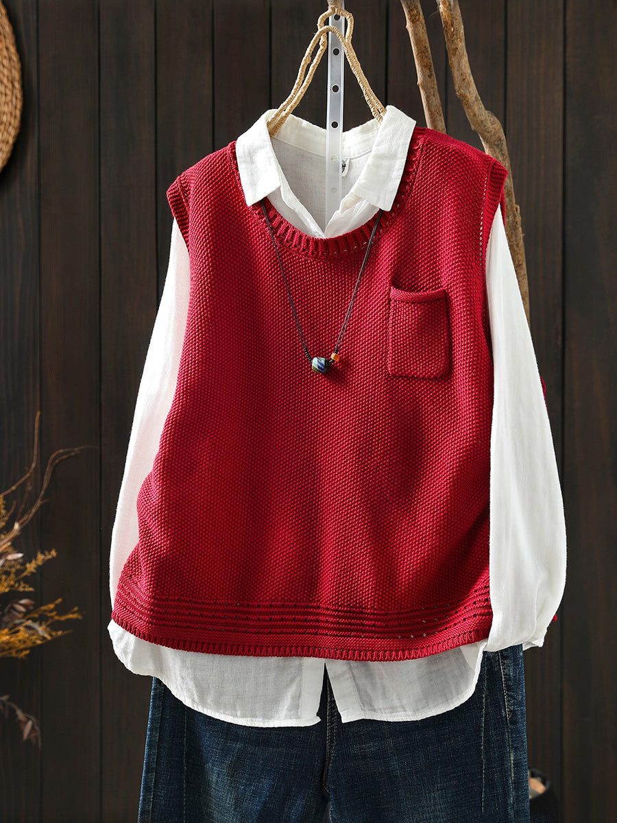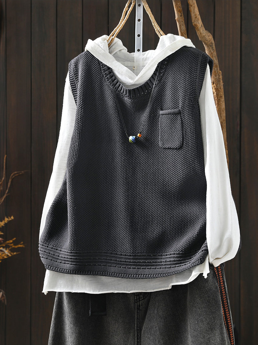Colete feminino de tricô com decote redondo e cor lisa, estilo artístico, para a primavera.