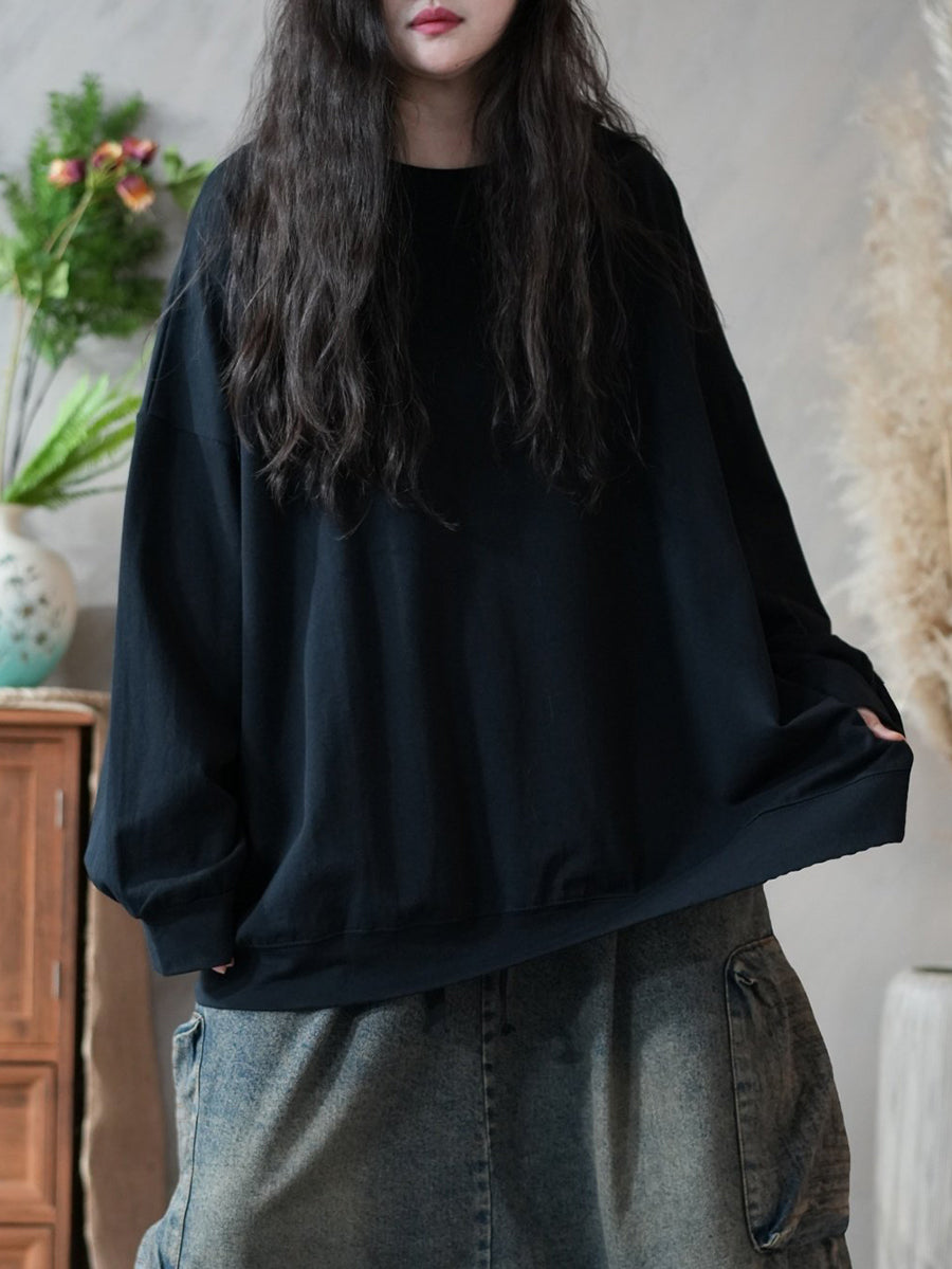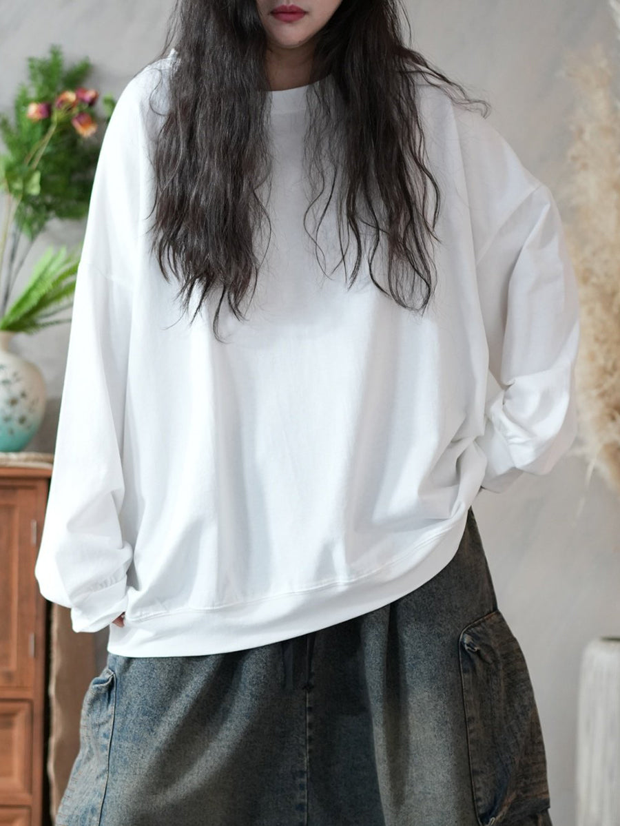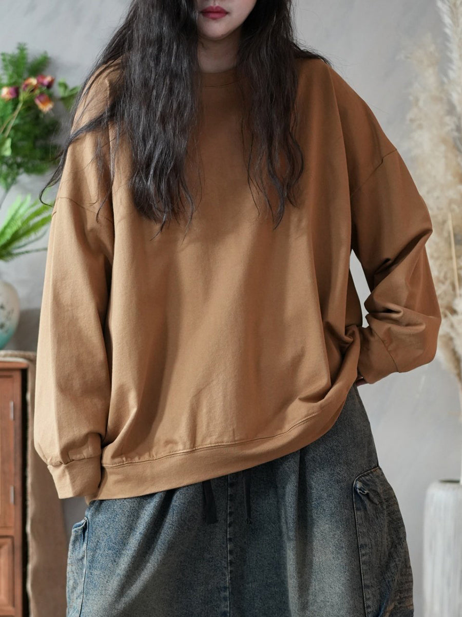 Blusa feminina de algodão 100% com decote redondo, estilo artístico e cor lisa para a primavera.