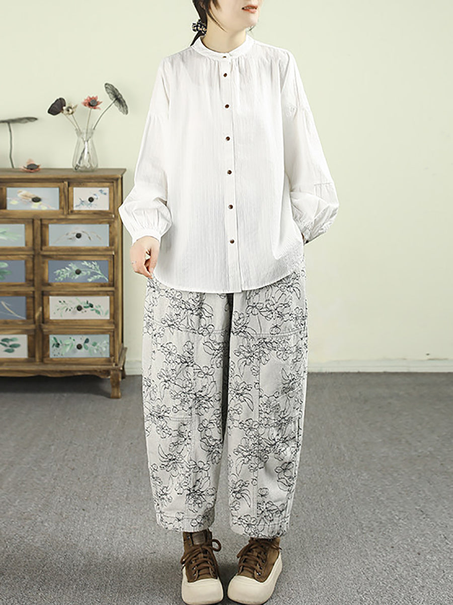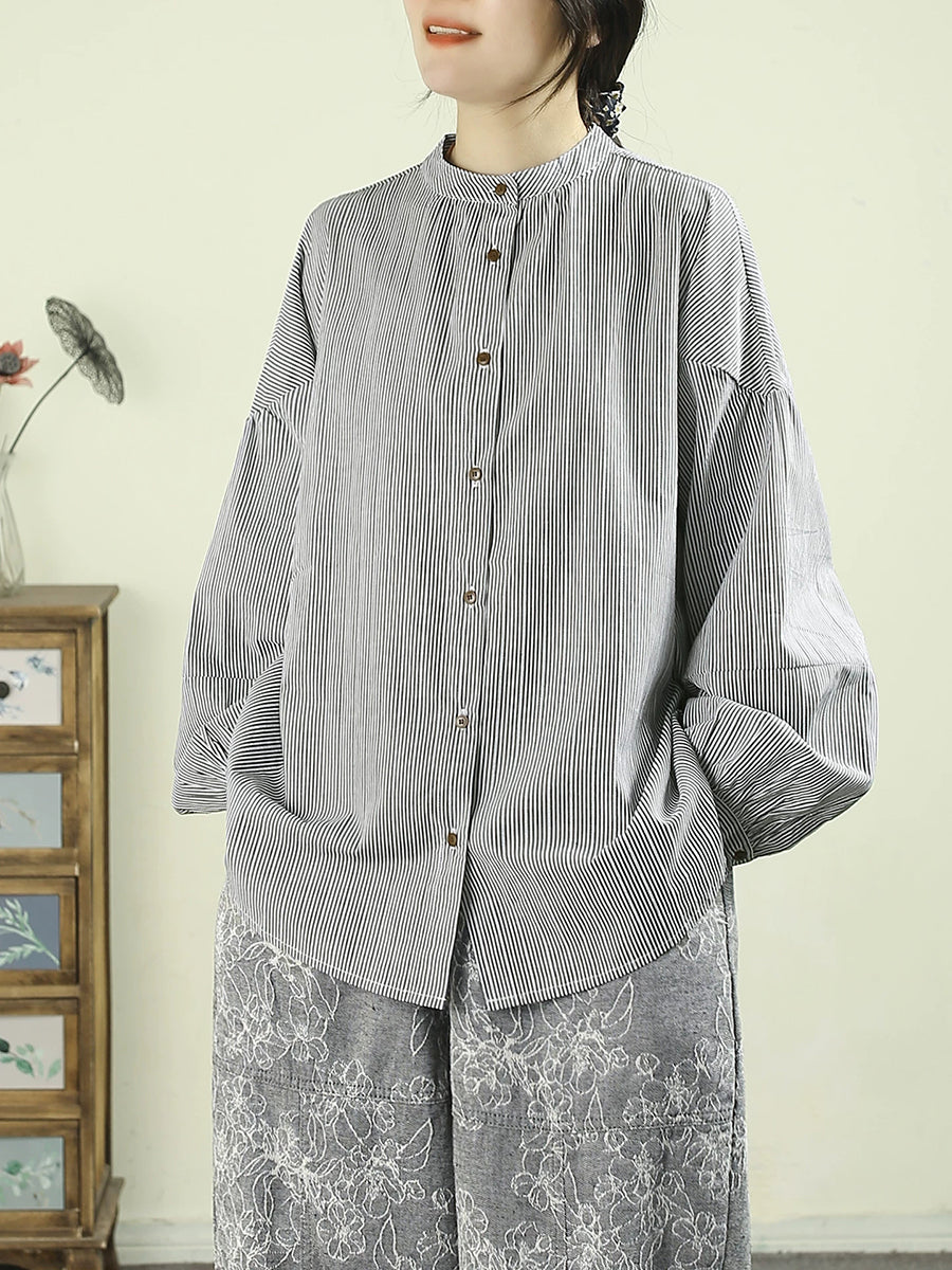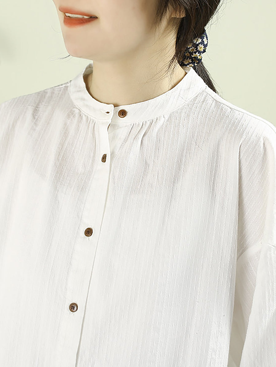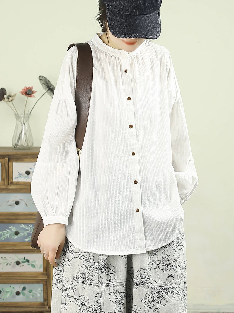 Camisa feminina de gola alta, modelo Artsy, cor lisa, 100% algodão, para a primavera.