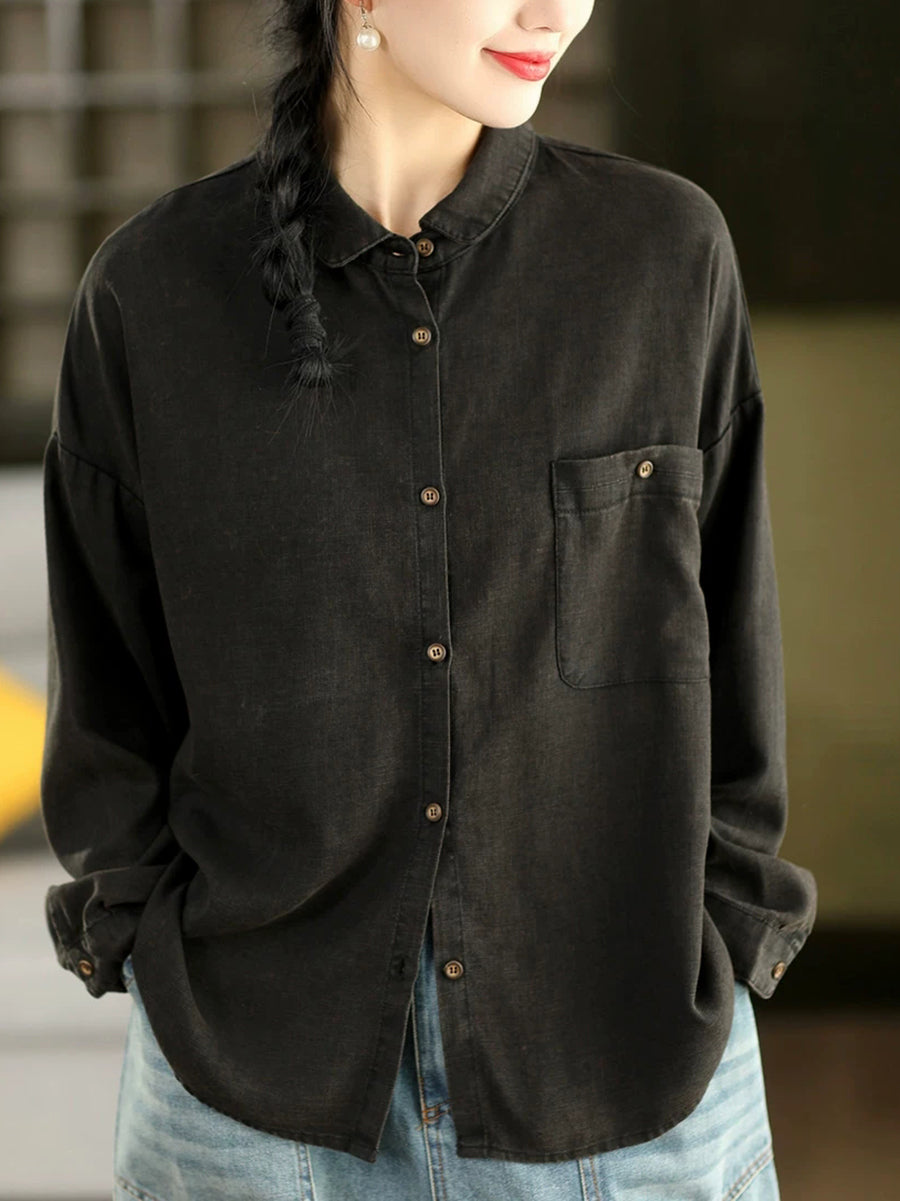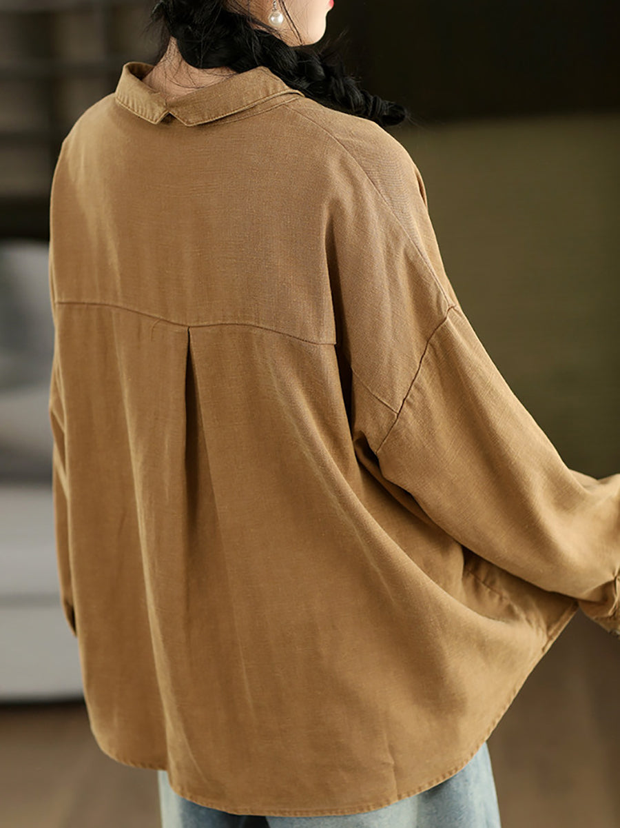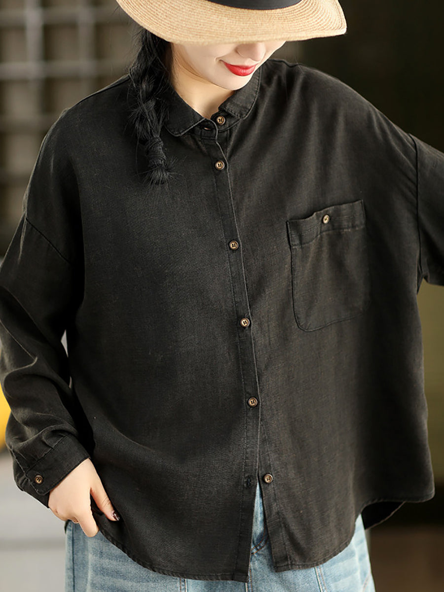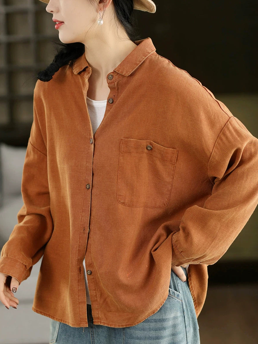 Camisa feminina de linho 100% com estampa artística de primavera em cores puras.