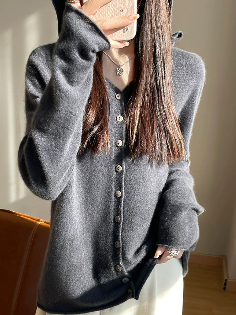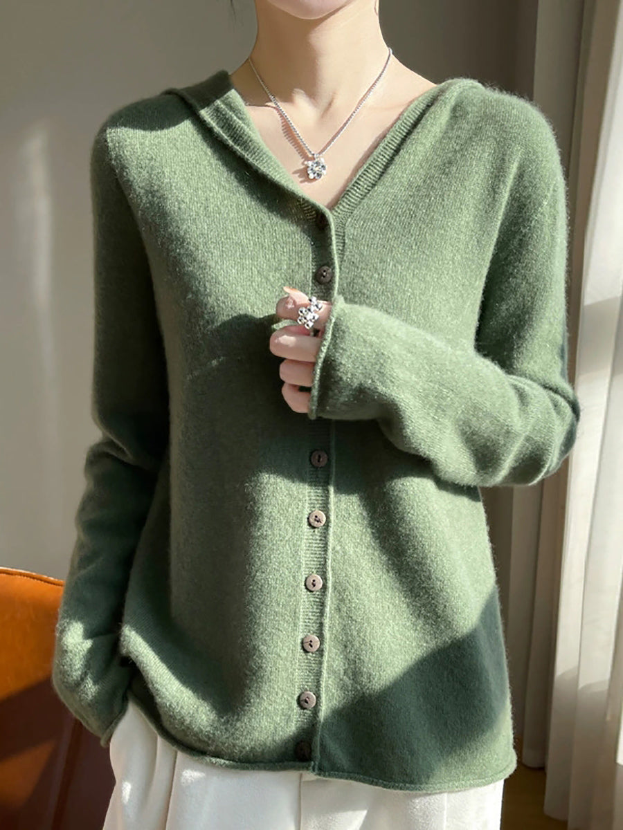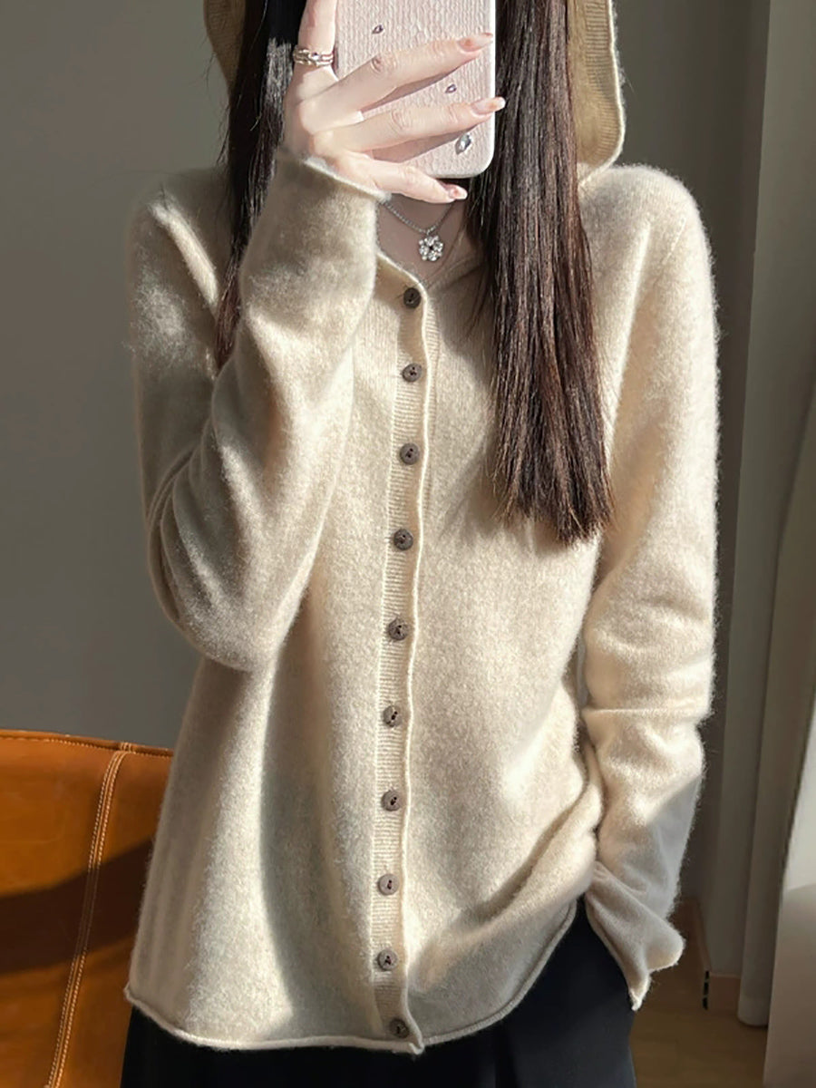 Cardigã feminino com capuz, estilo artístico, em cores puras, para a primavera.