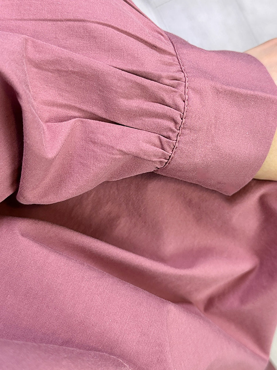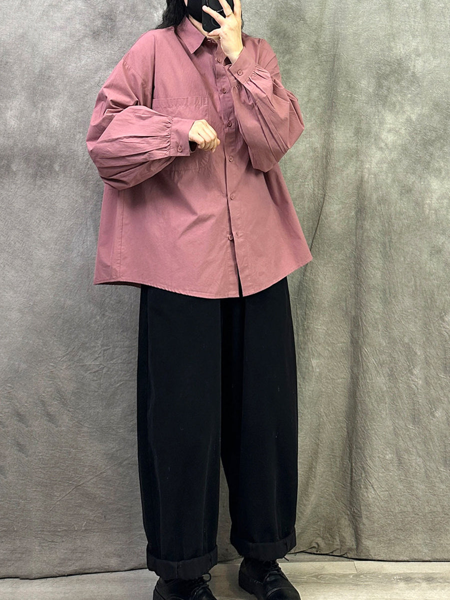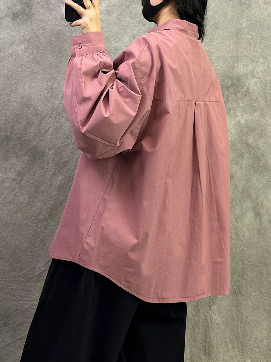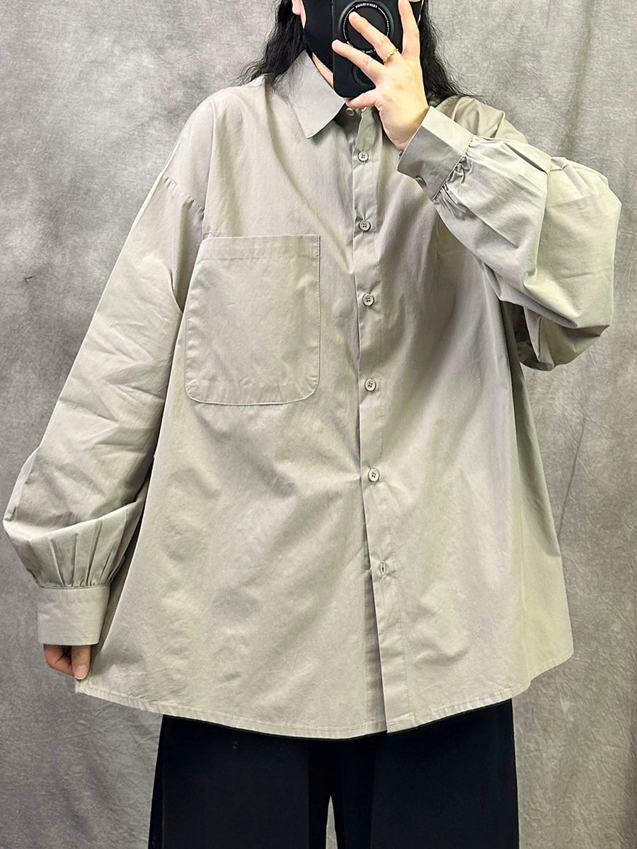 Camisa feminina de algodão lisa com estampa artística de primavera