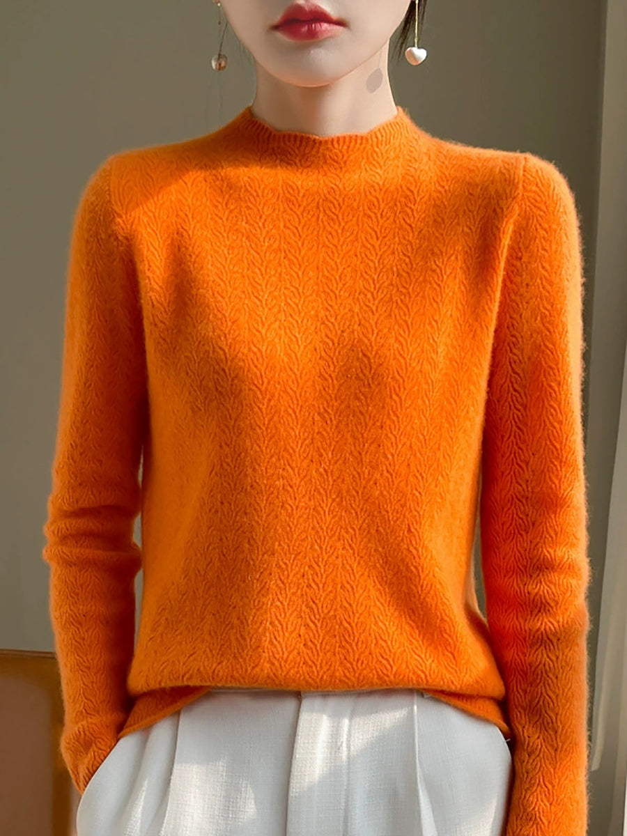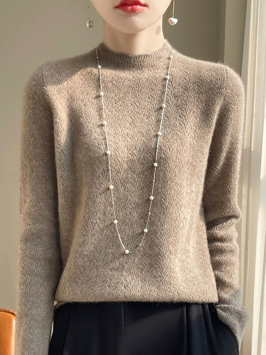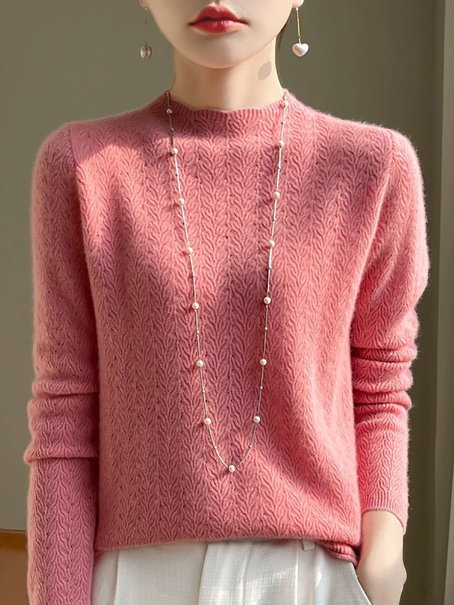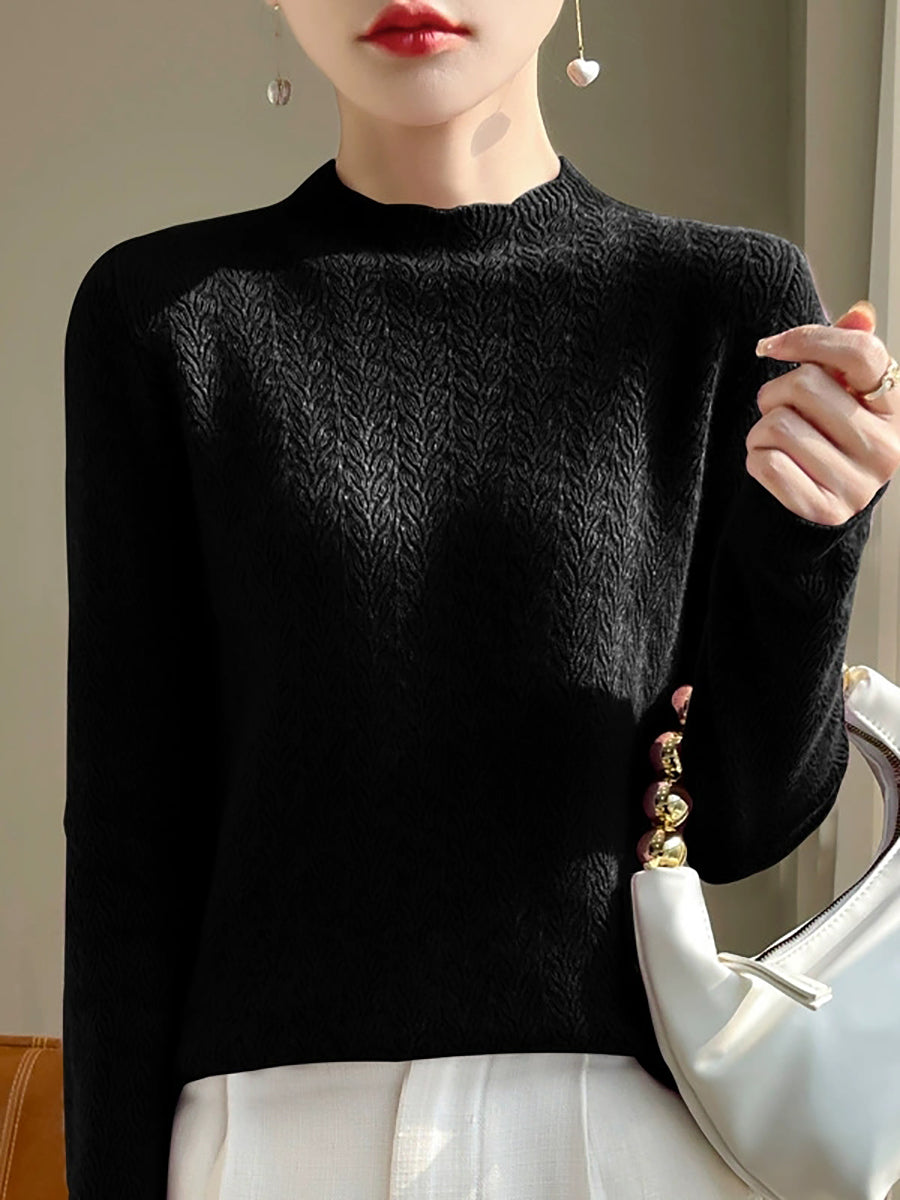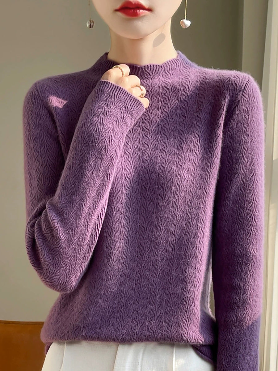 Suéter feminino de gola redonda em cor lisa, estilo artístico, para a primavera.