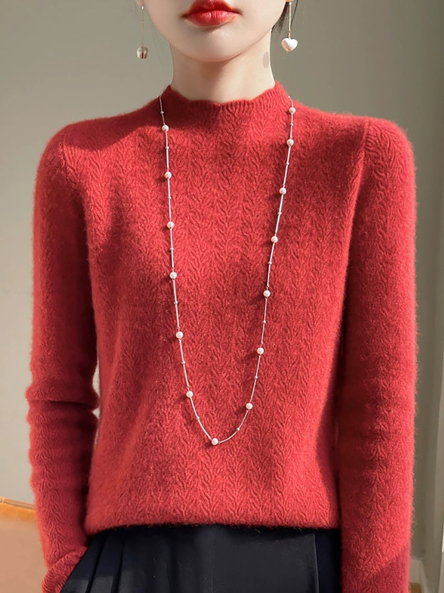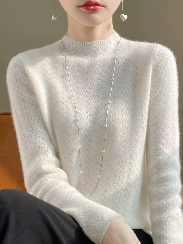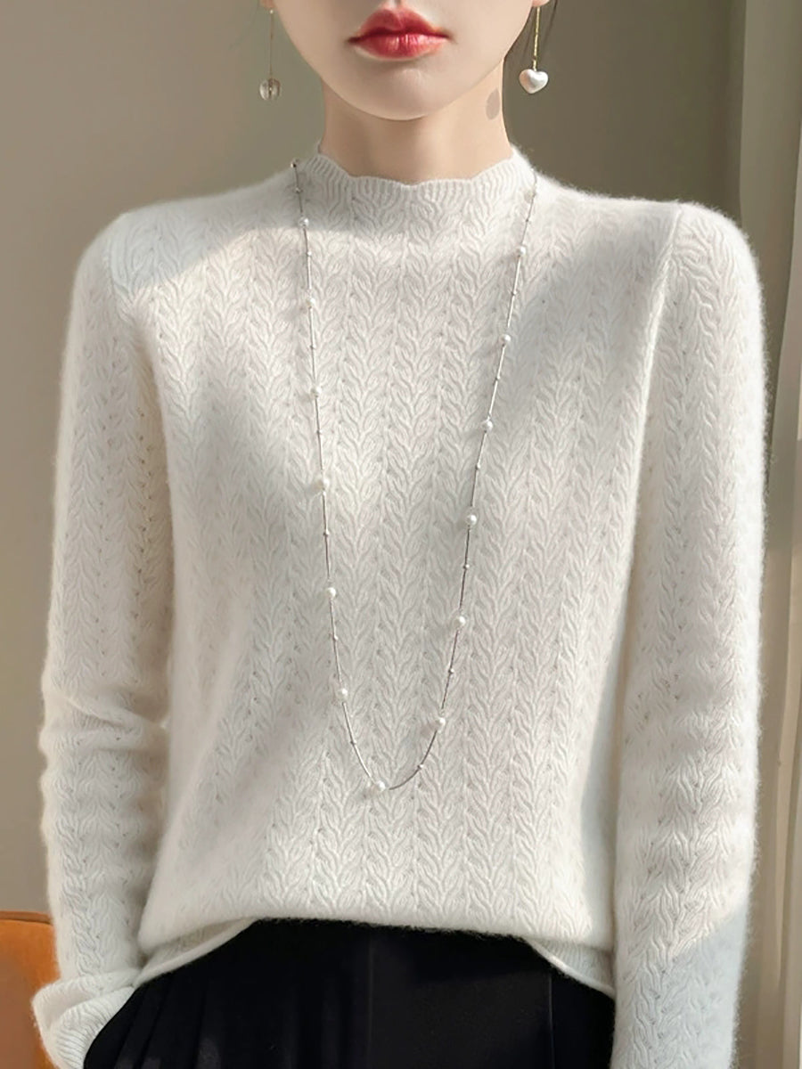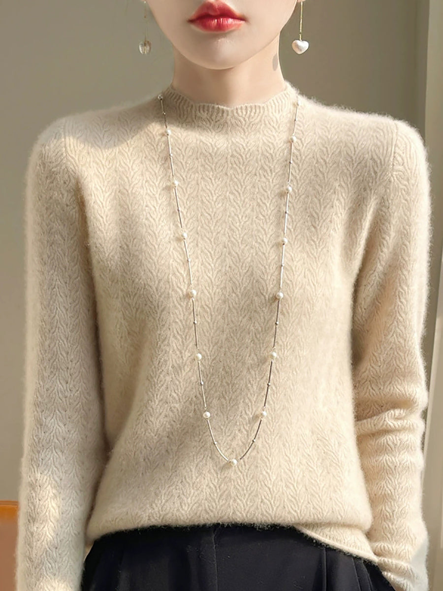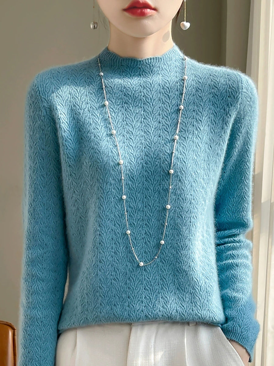 Suéter feminino de gola redonda em cor lisa, estilo artístico, para a primavera.