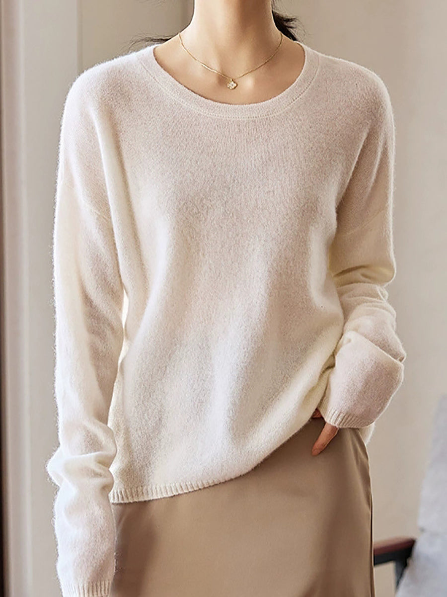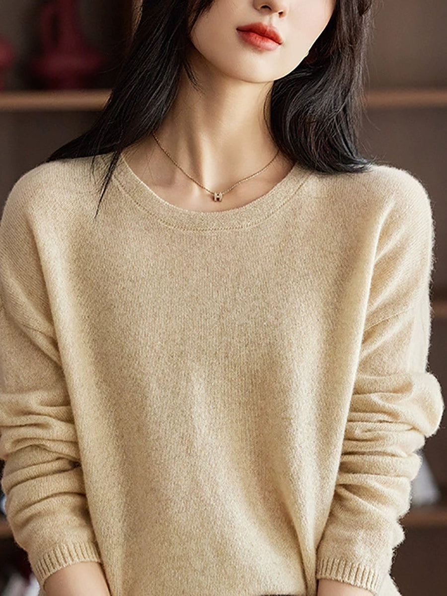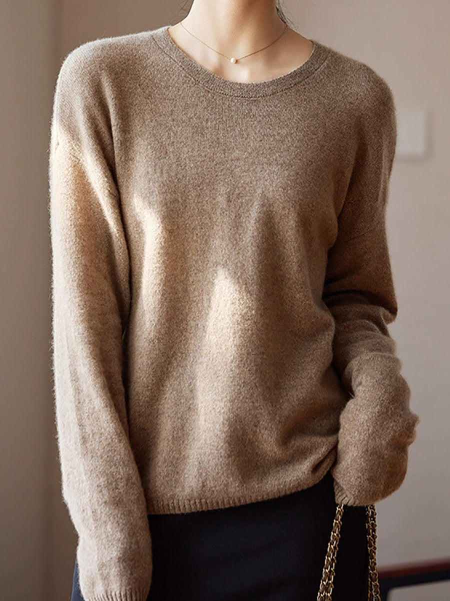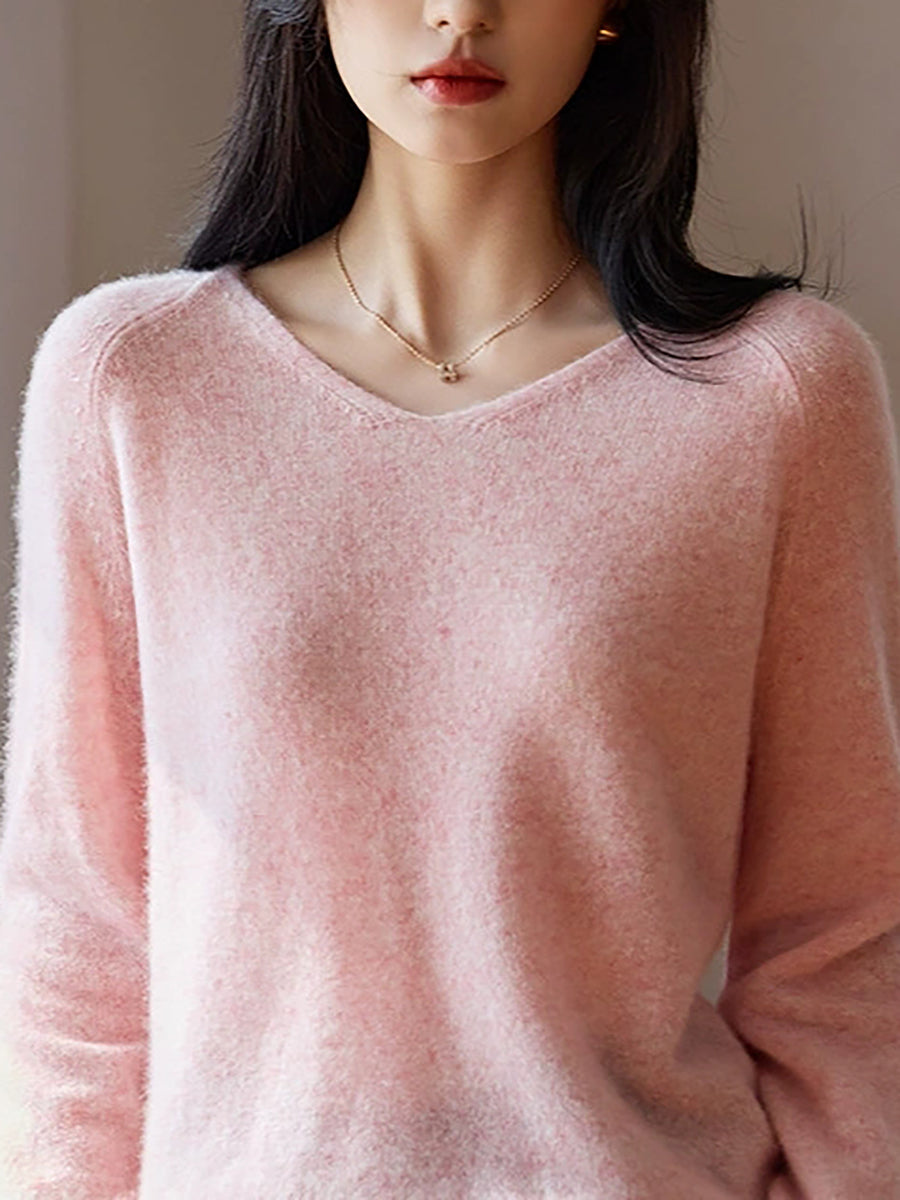 Suéter feminino de lã com decote em V, cor lisa e estilo artístico para a primavera.