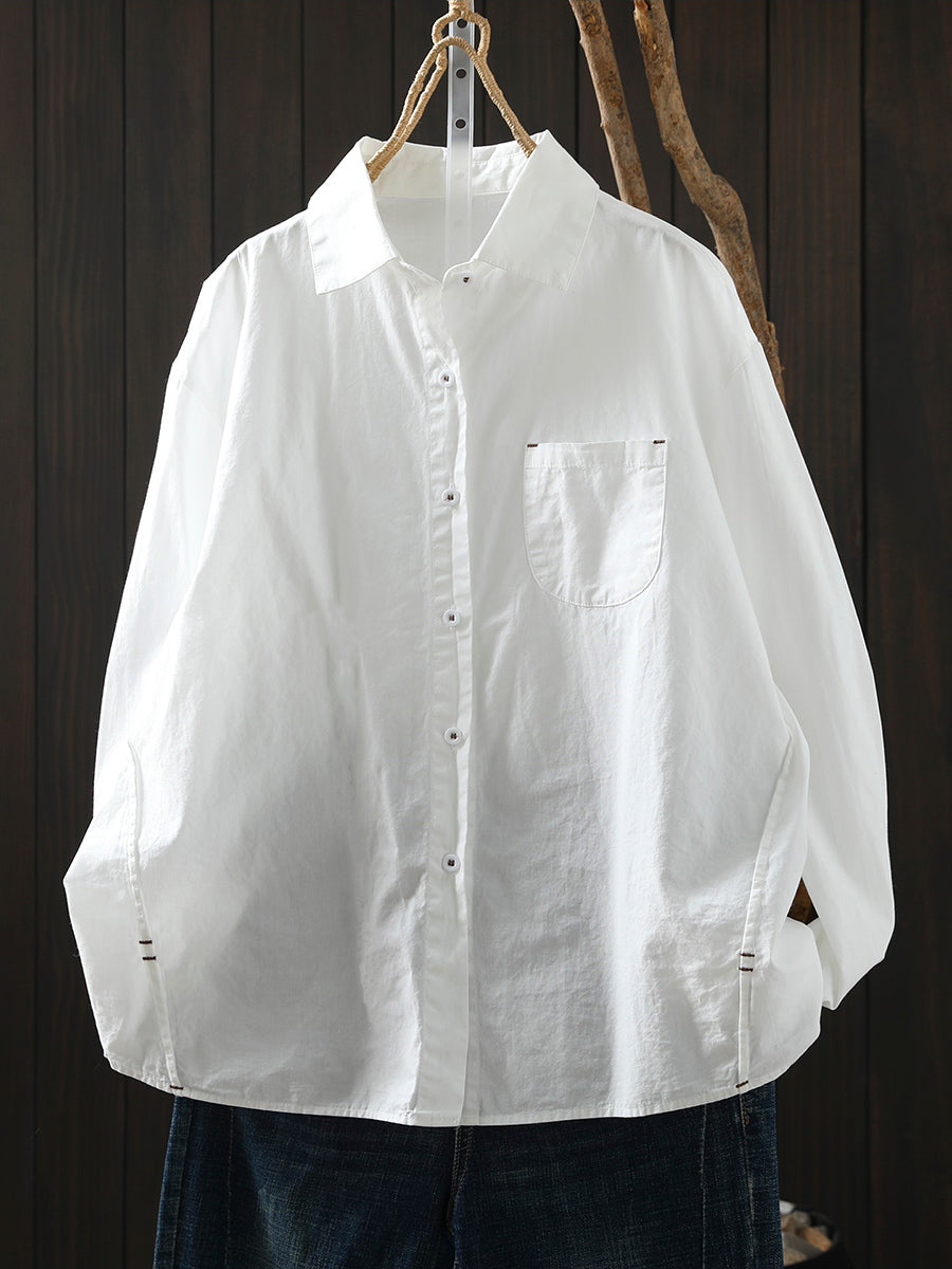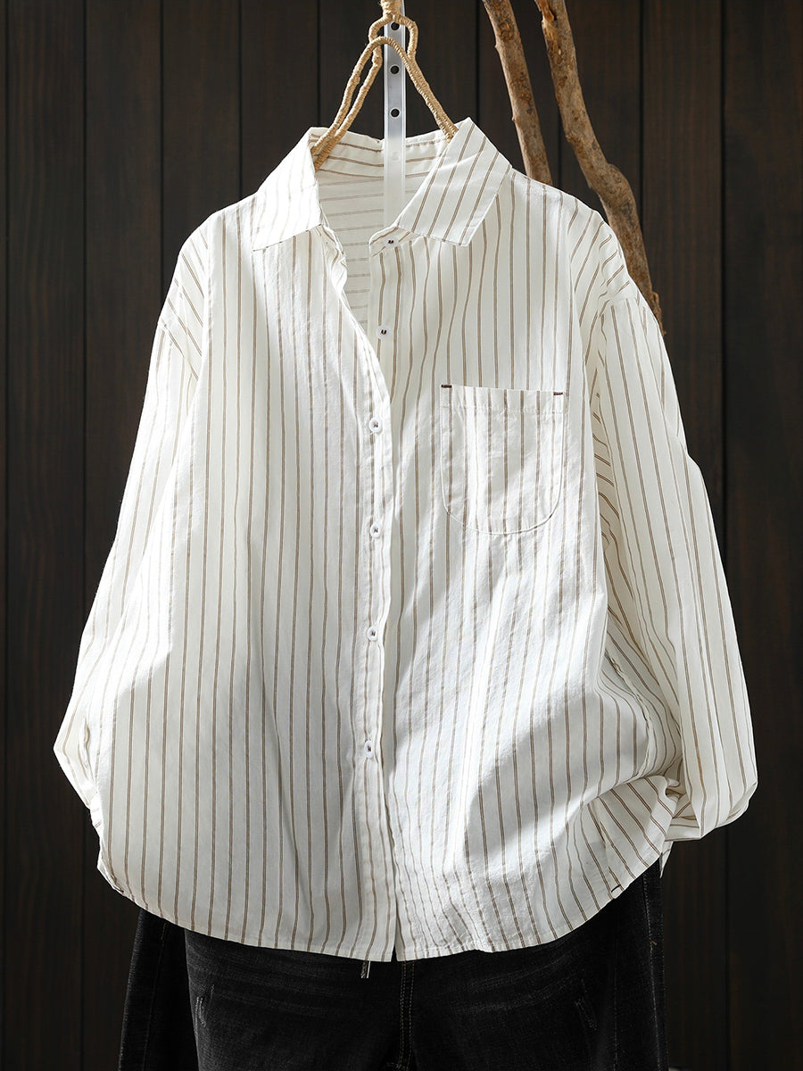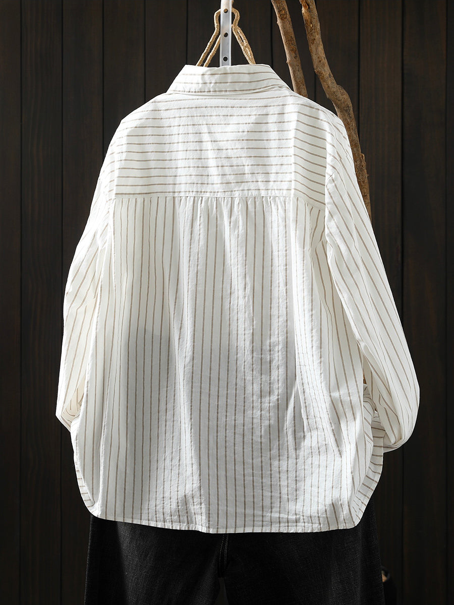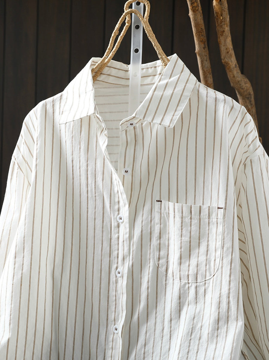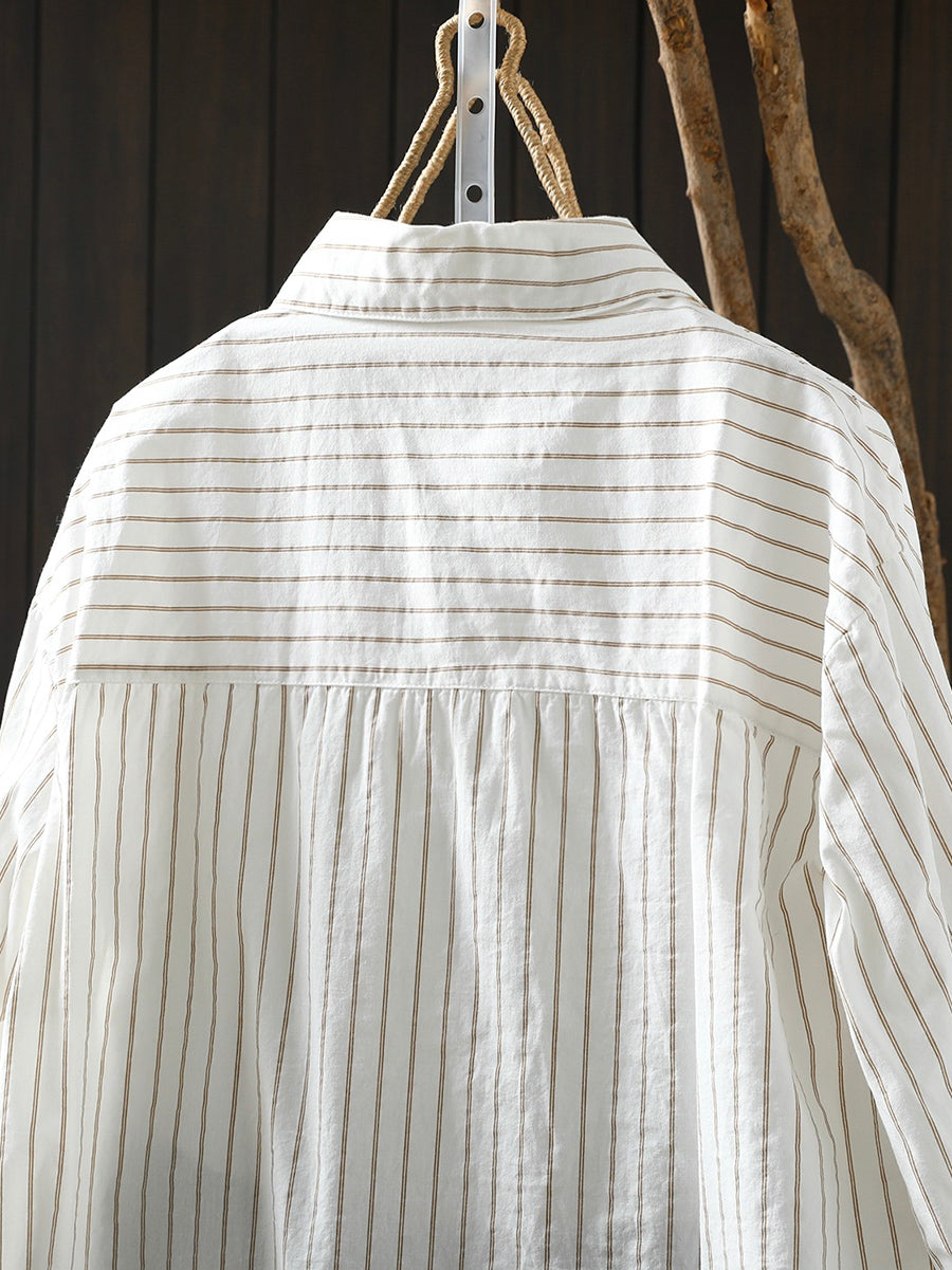 Camisa feminina listrada artística de primavera, 100% algodão.
