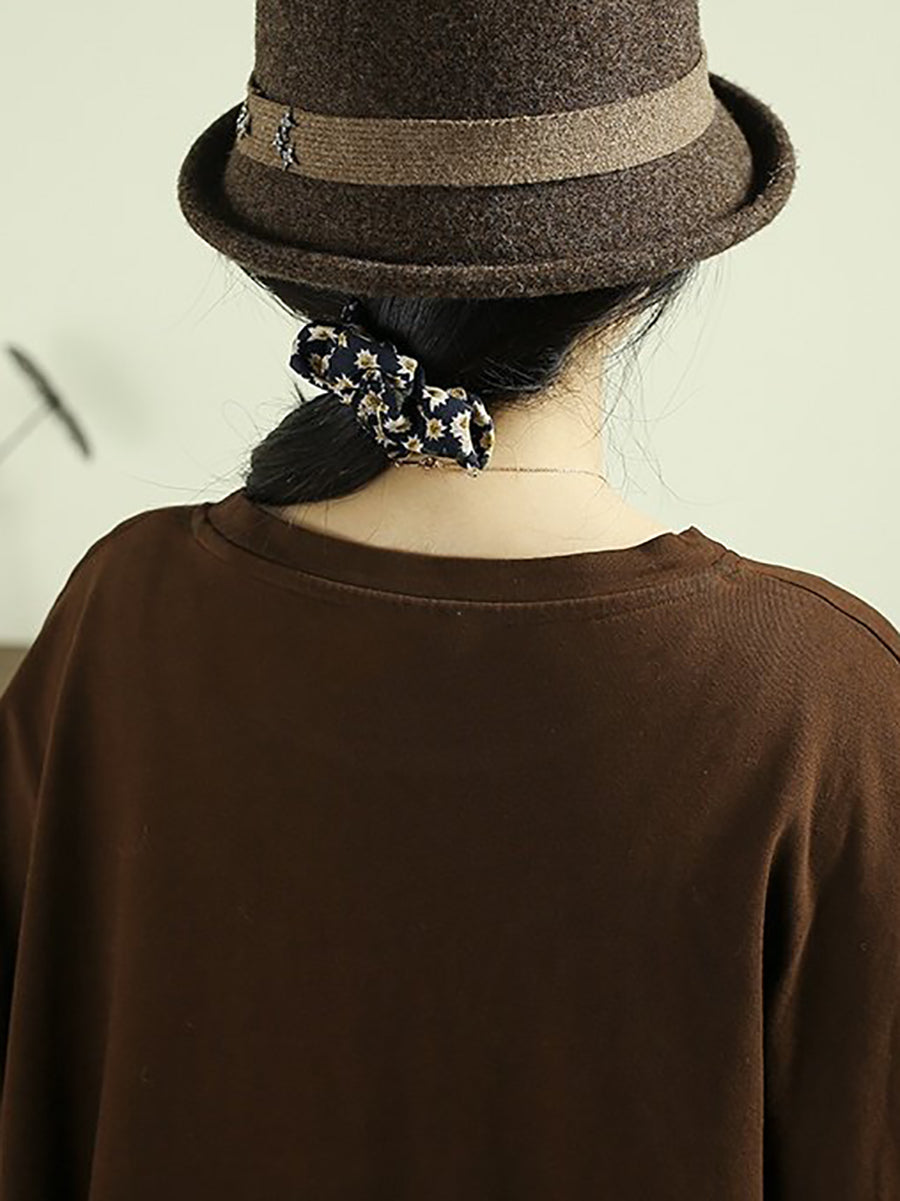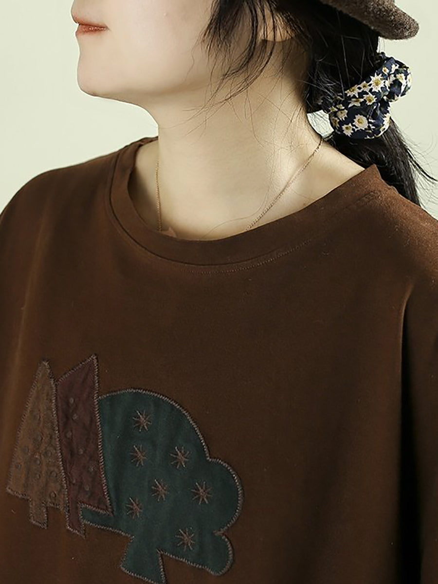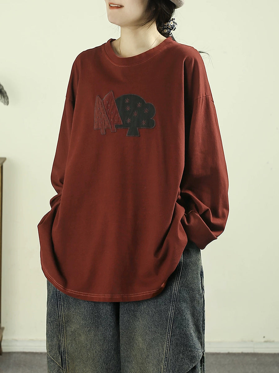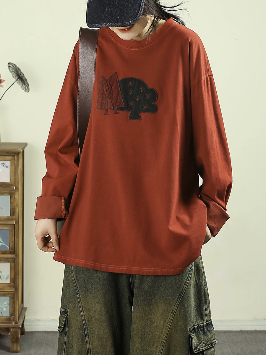 Blusa feminina de algodão 100% com estampa de árvore e decote redondo, estilo artístico para a primavera.