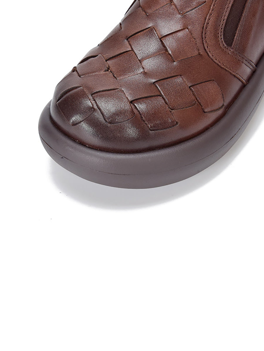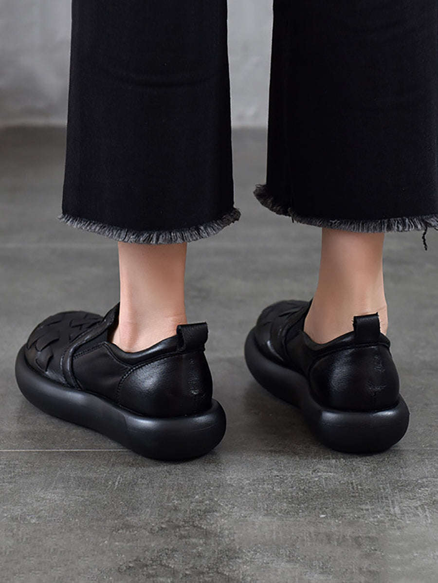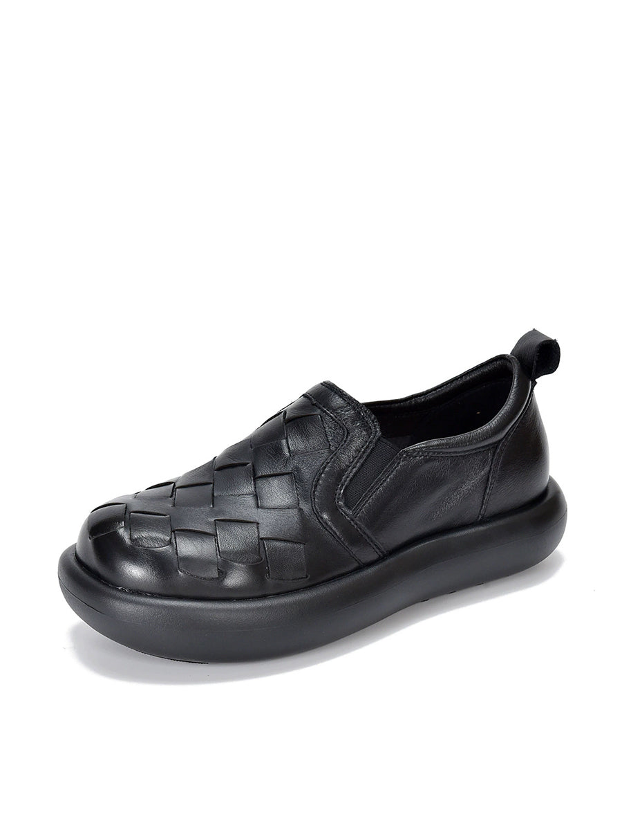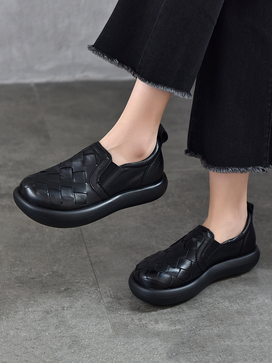 Sapatos femininos casuais de primavera em couro legítimo trançado, modelo rasteiro.
