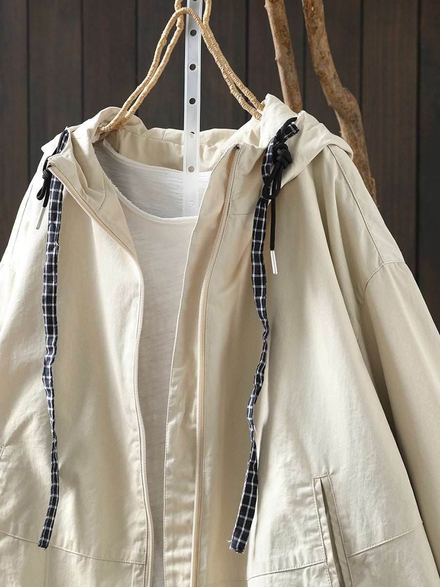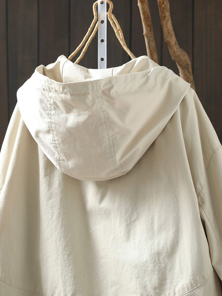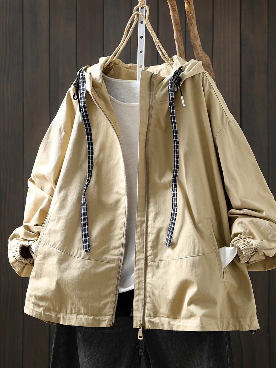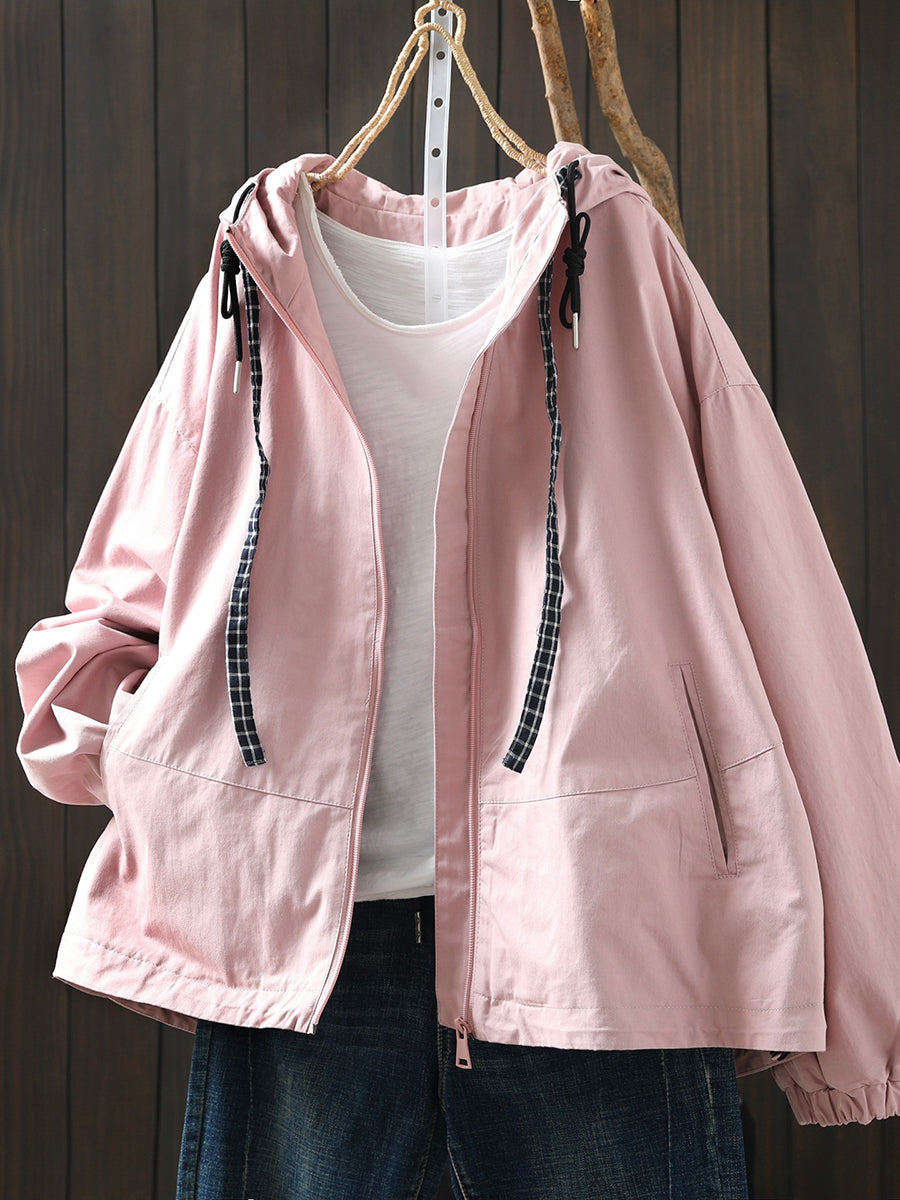 Casaco feminino casual de primavera com capuz, cor lisa, 100% algodão.