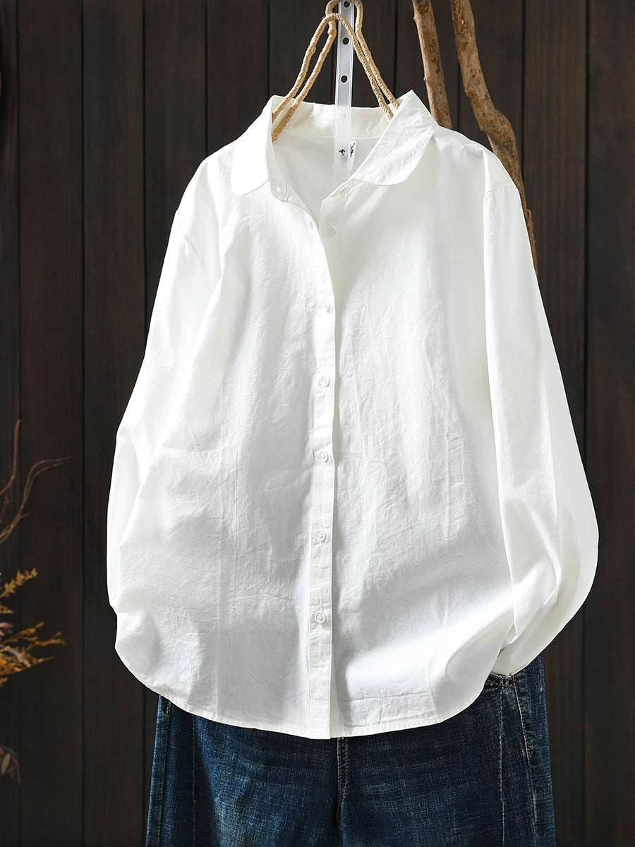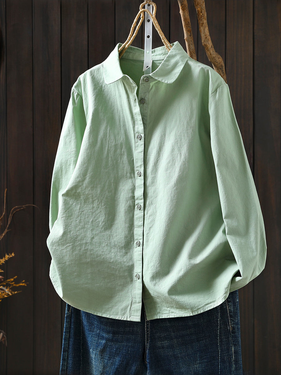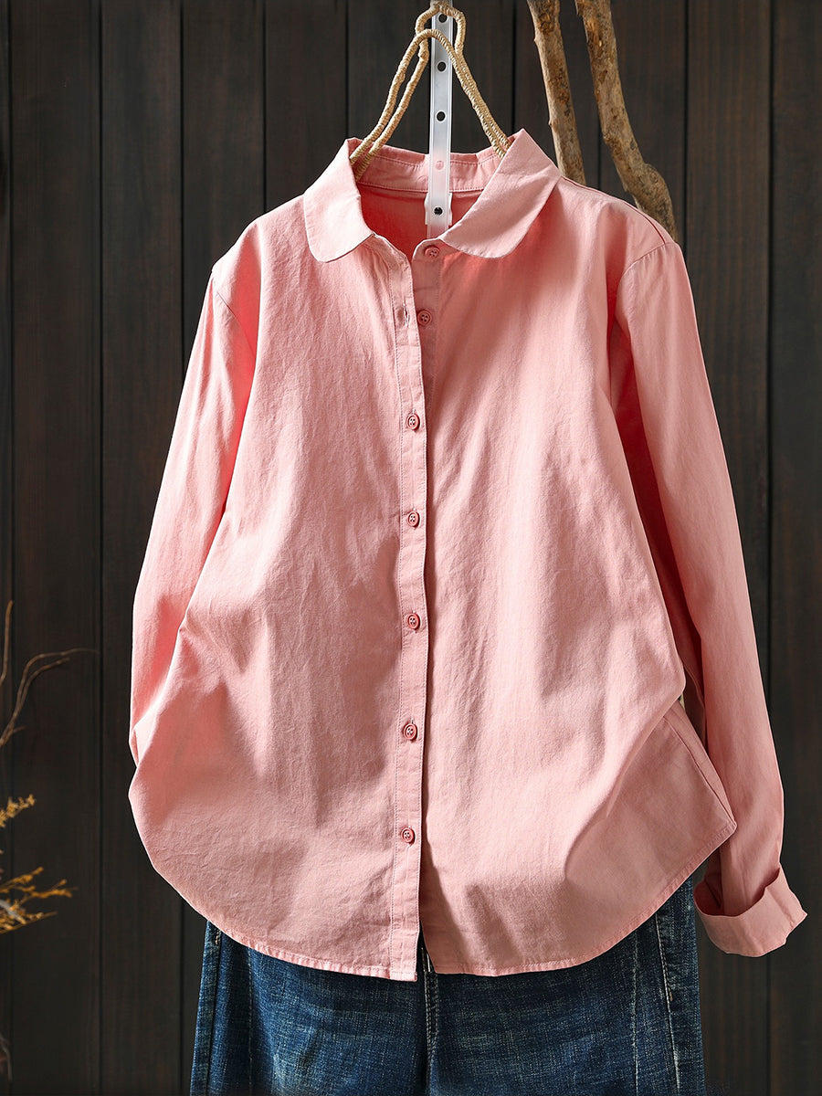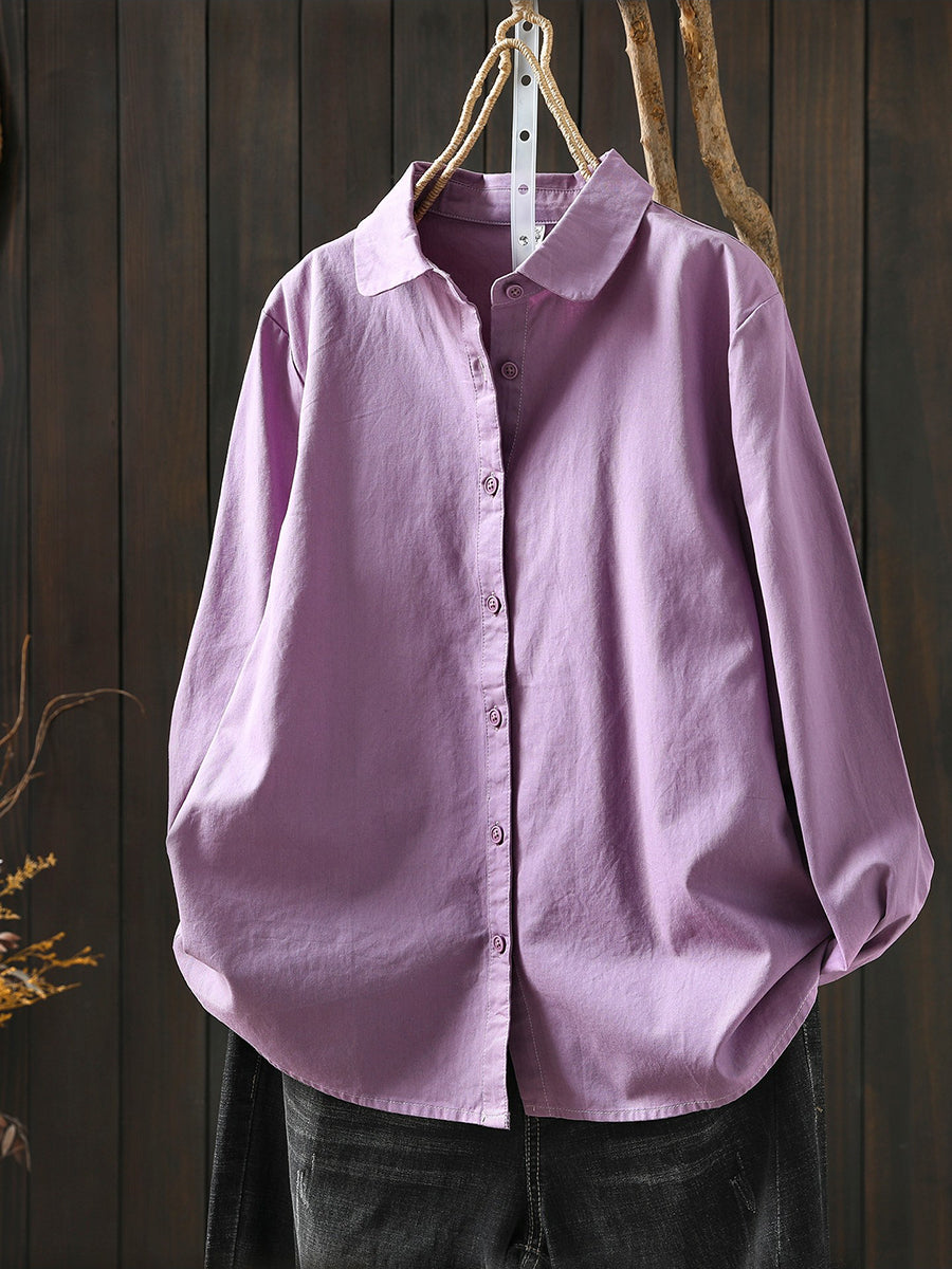 Camisa feminina casual de primavera, cor lisa, 100% algodão.