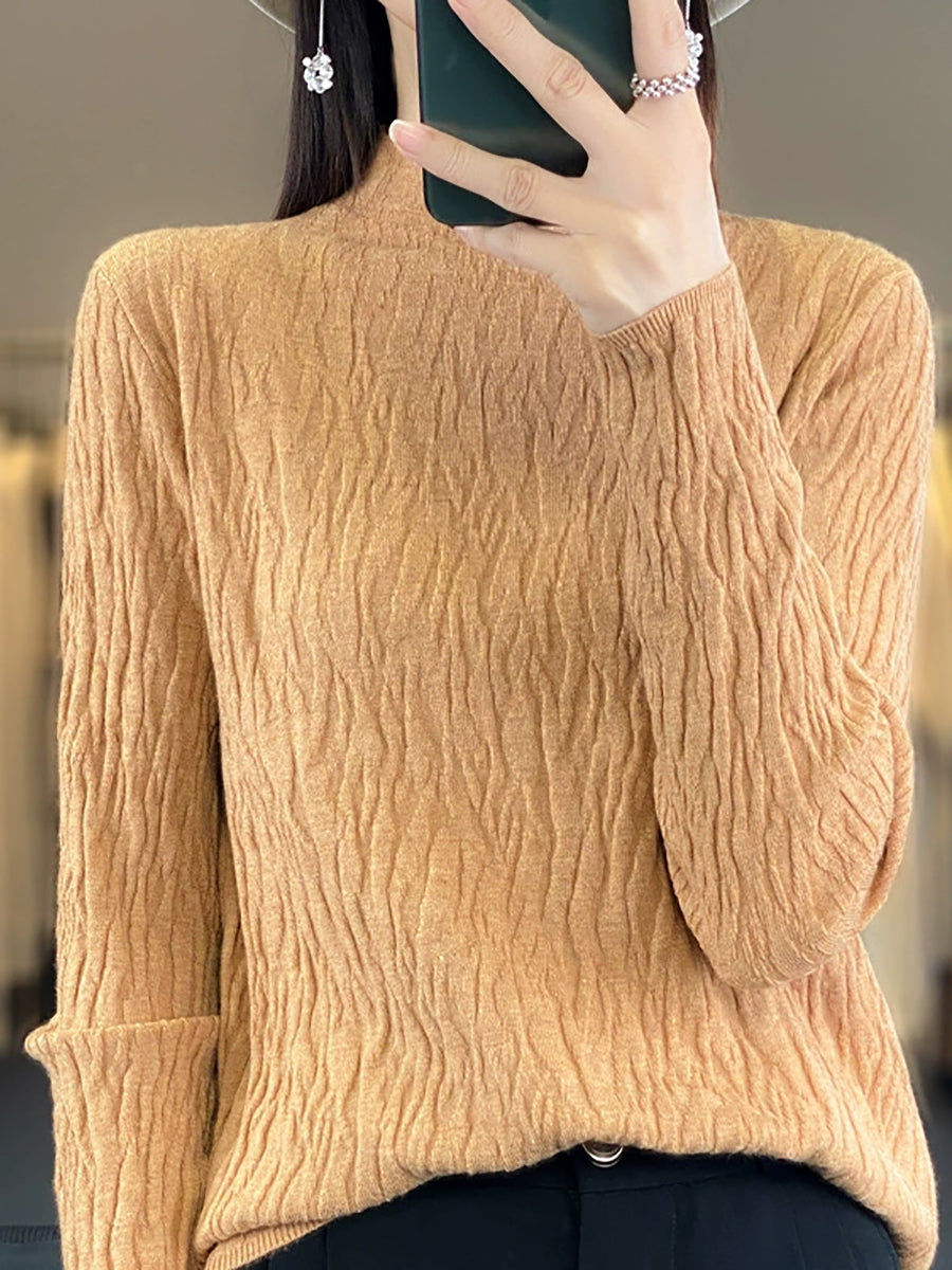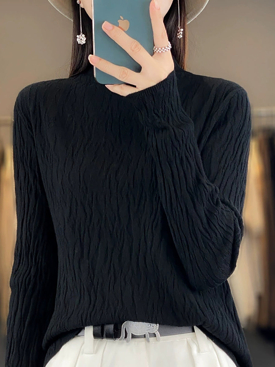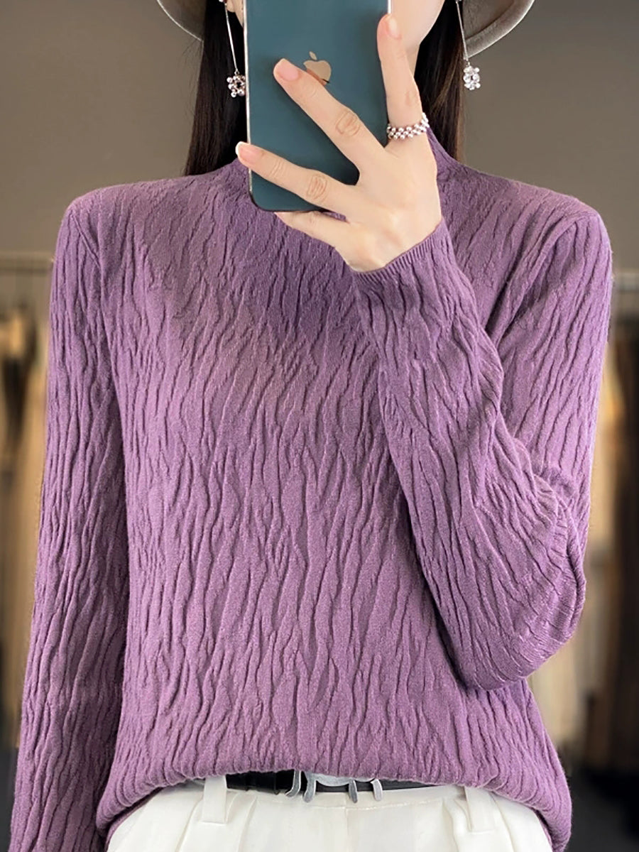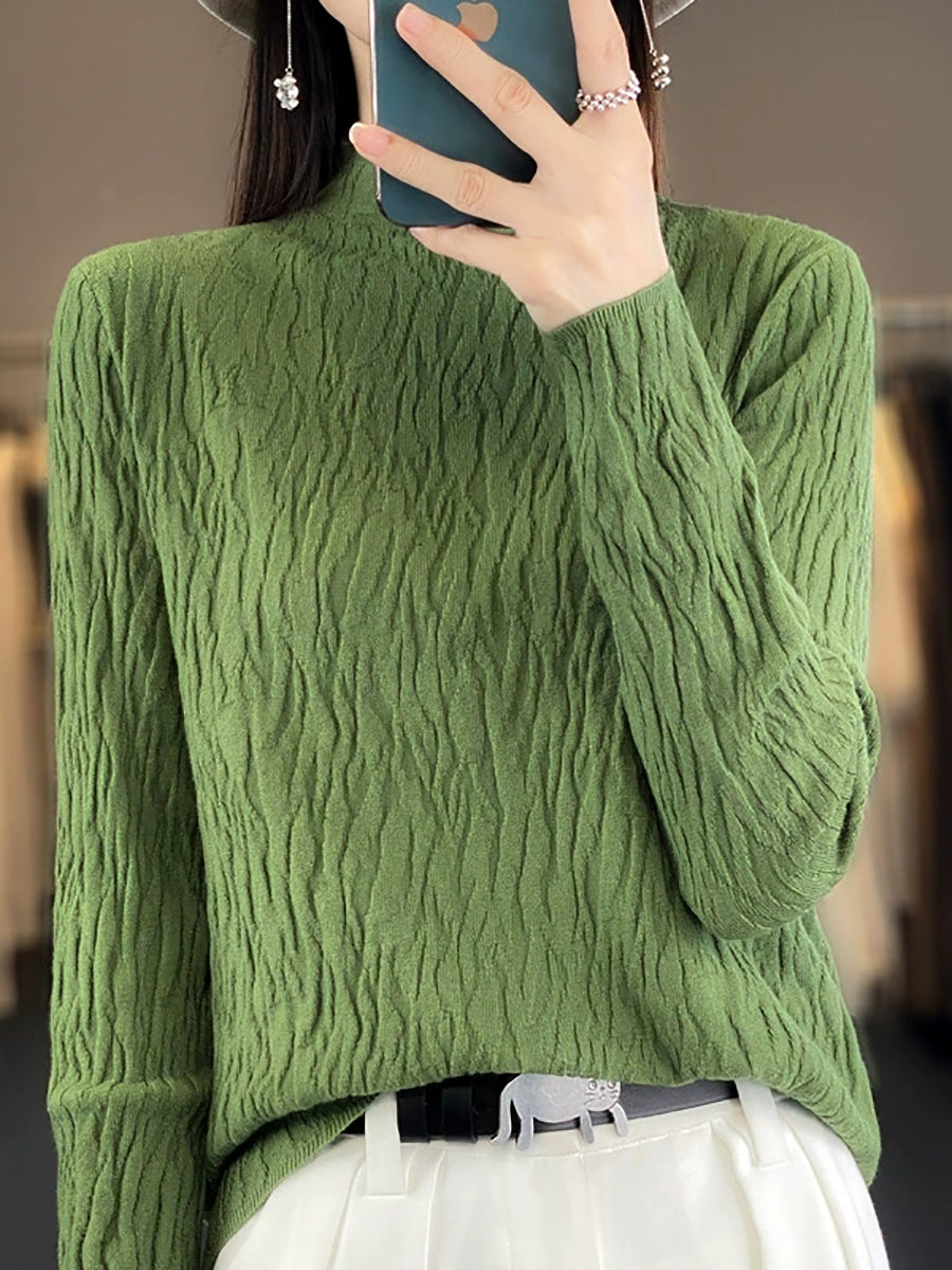Suéter feminino casual de gola alta e cor lisa para a primavera.