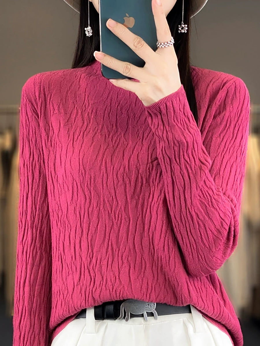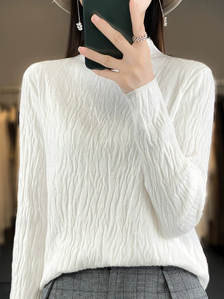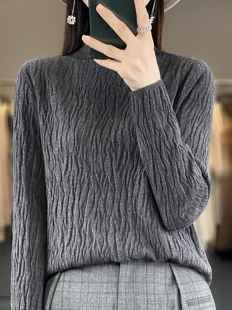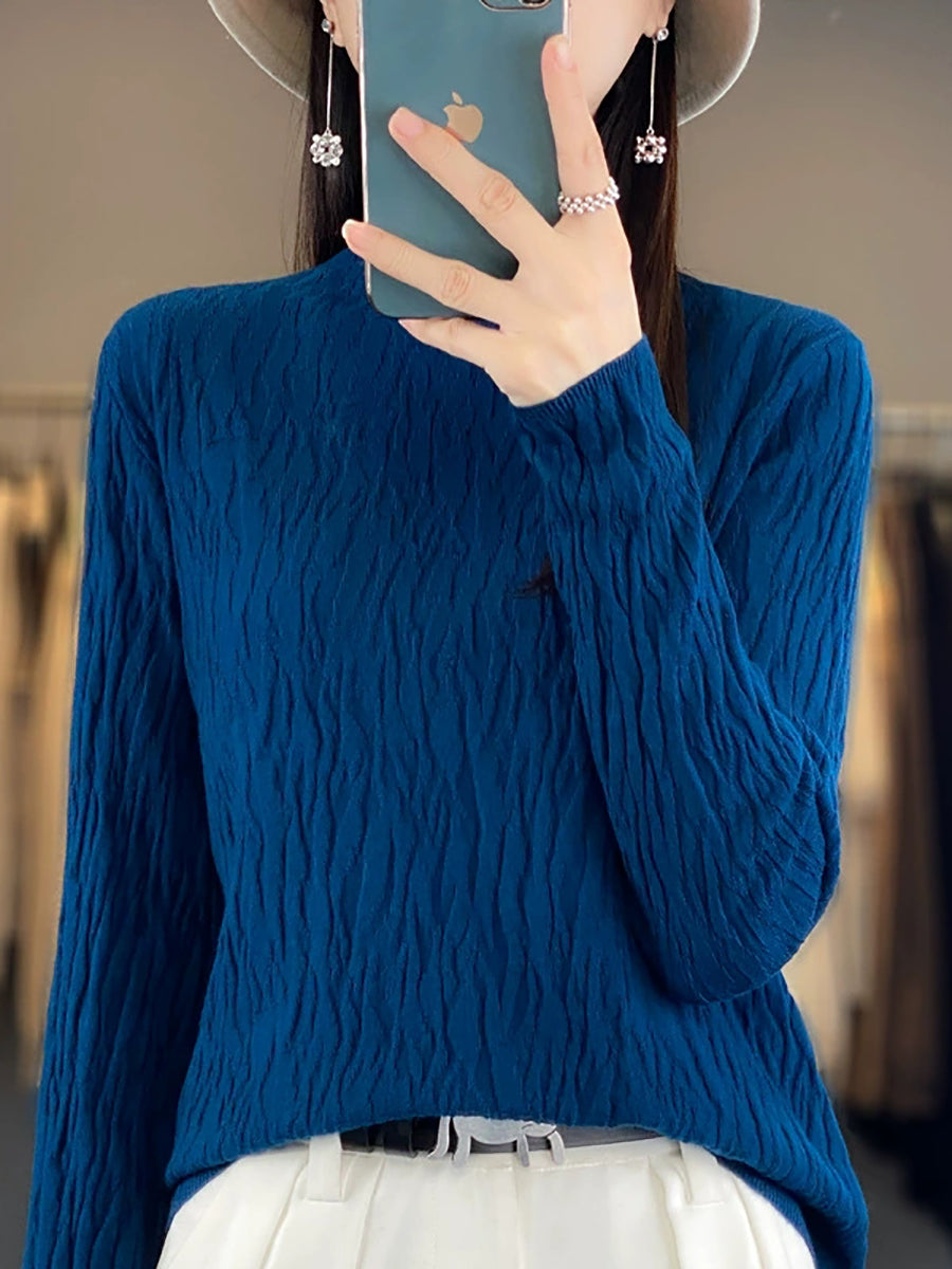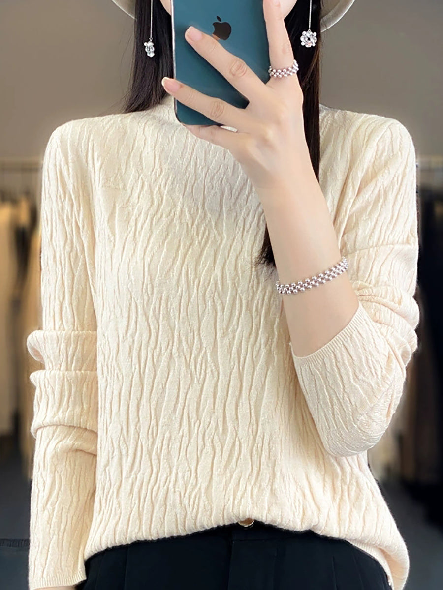 Suéter feminino casual de gola alta e cor lisa para a primavera.