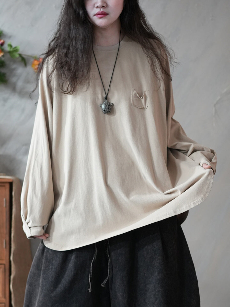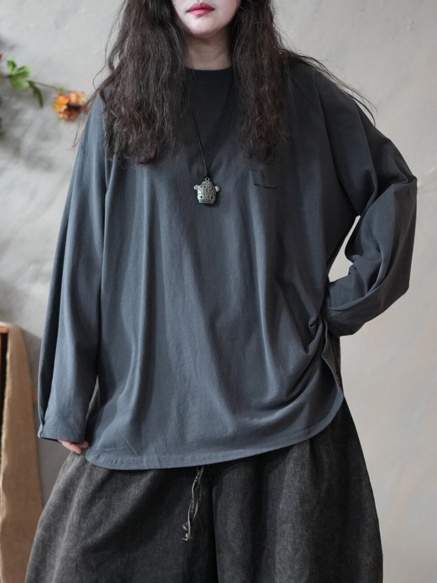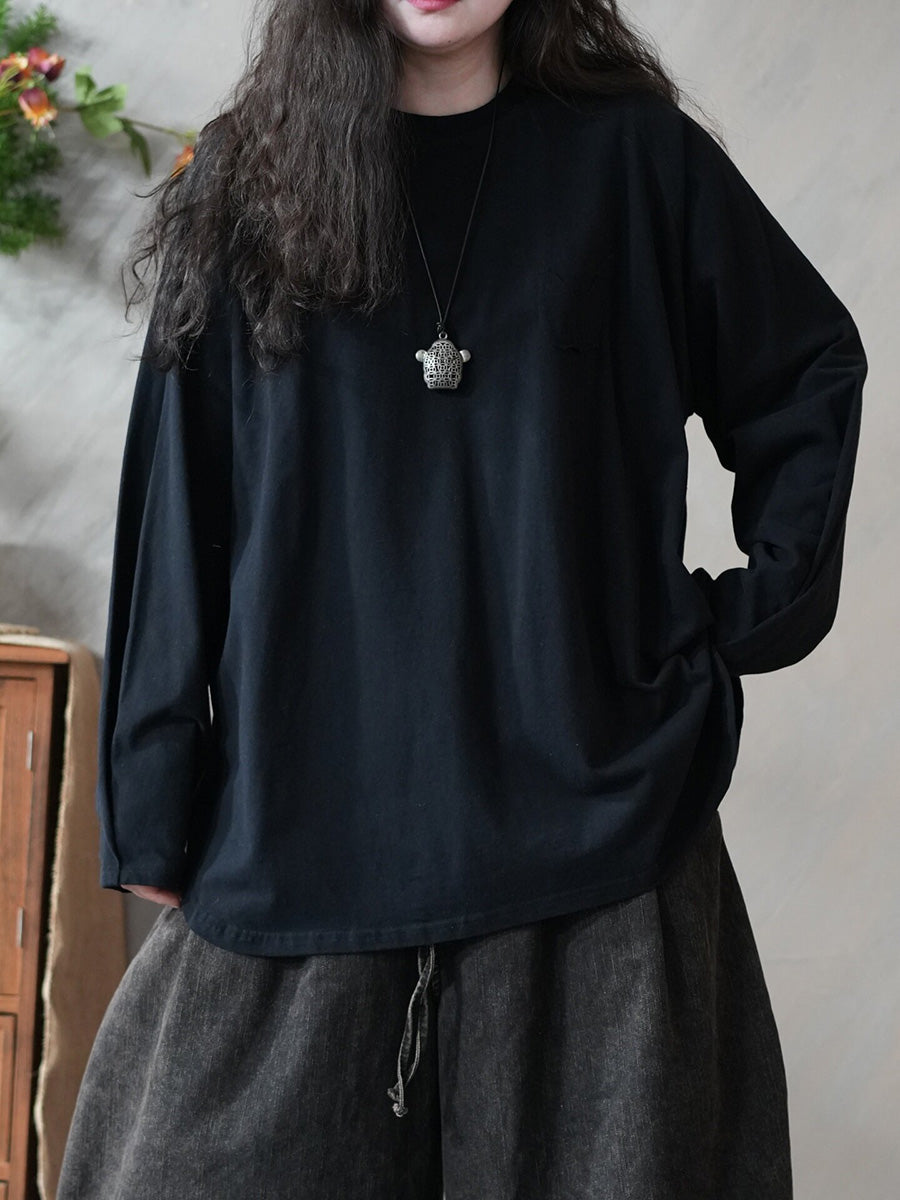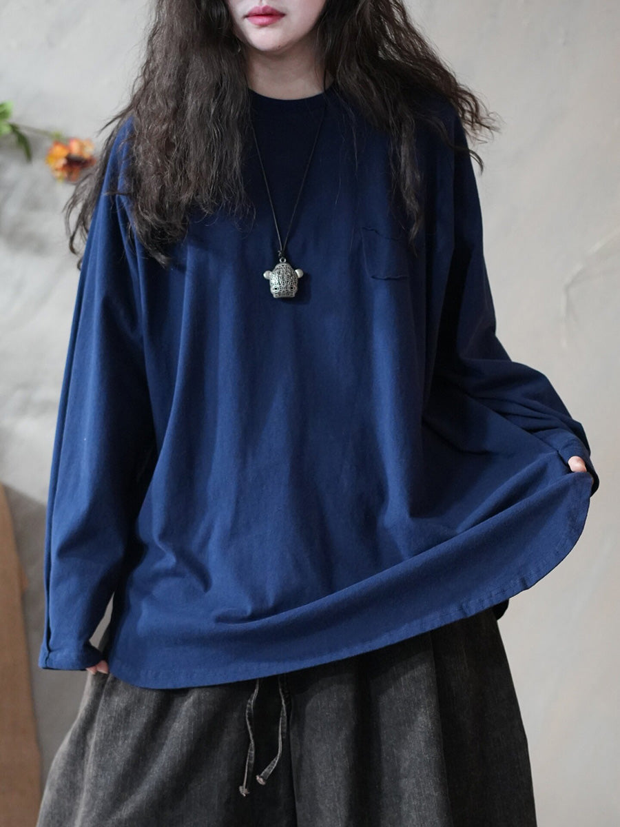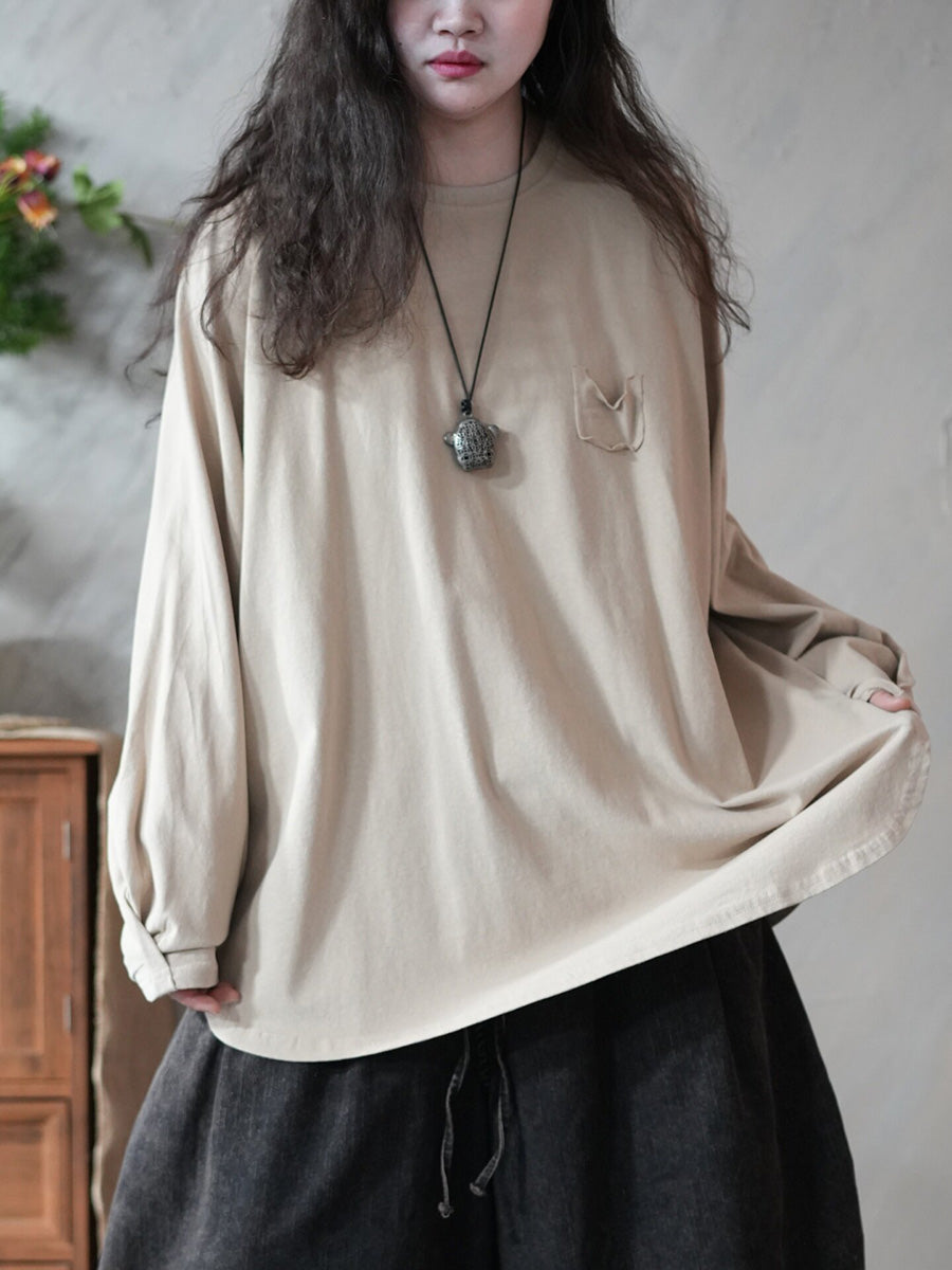Blusa feminina casual de primavera, cor lisa, gola redonda.