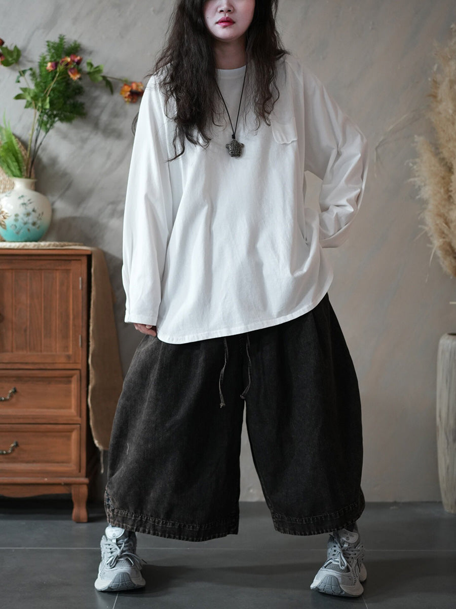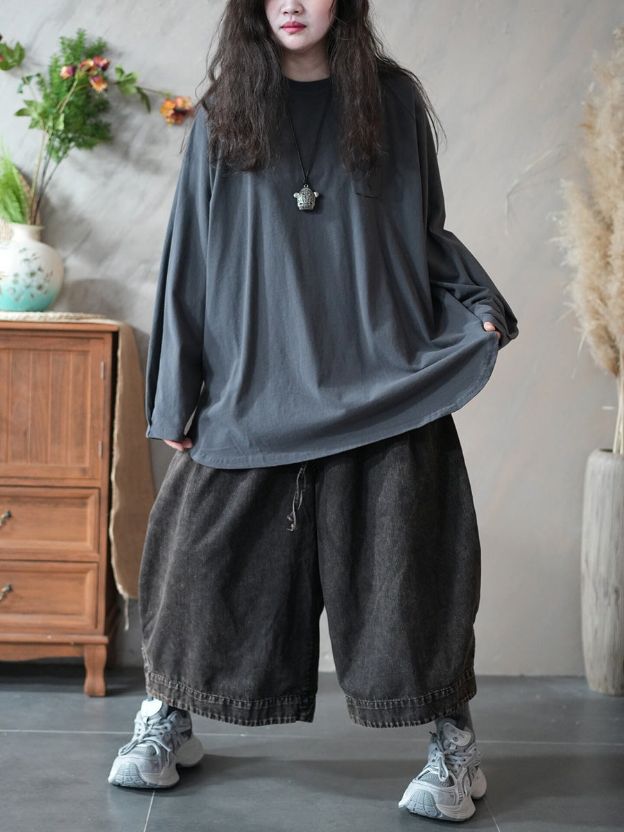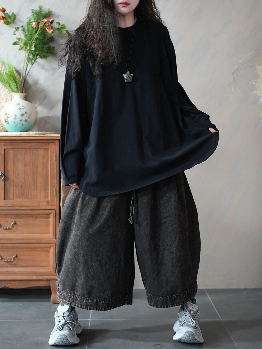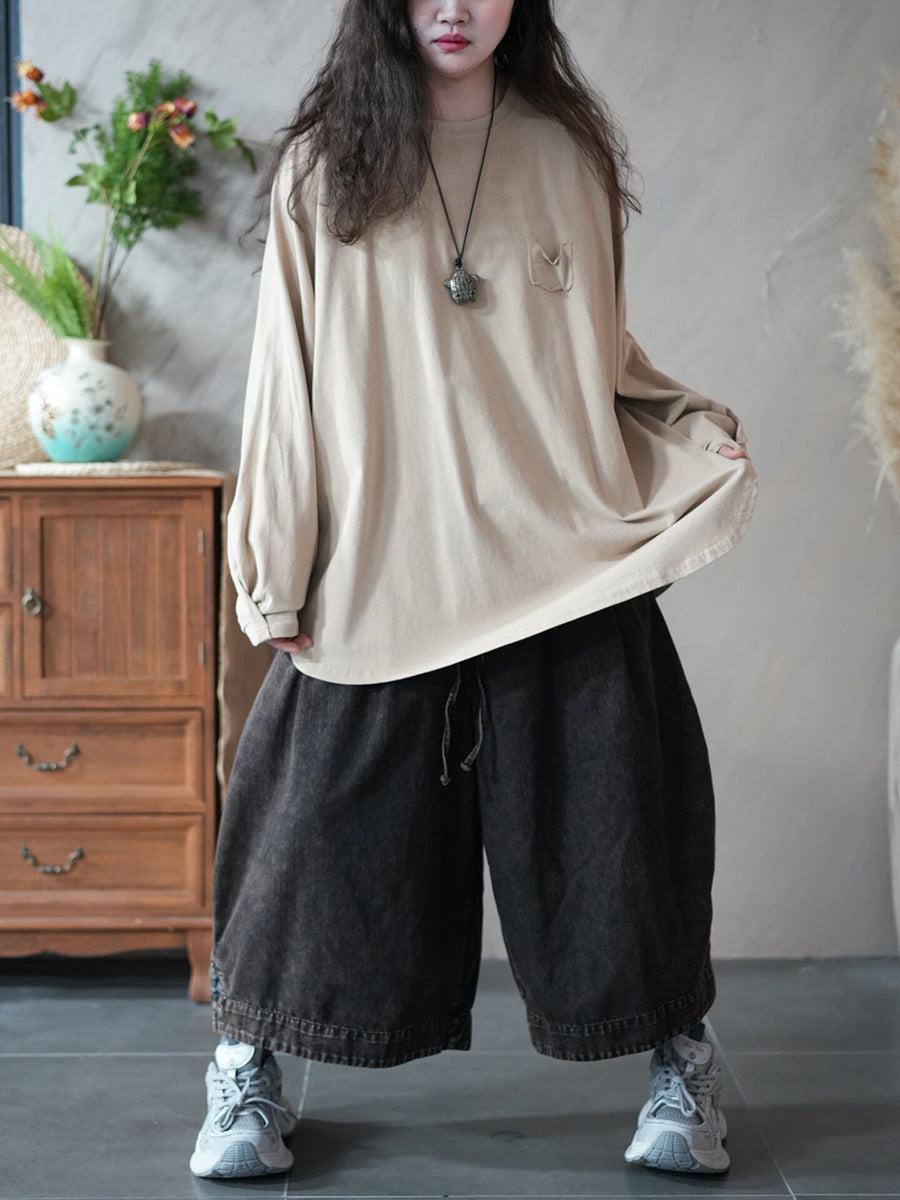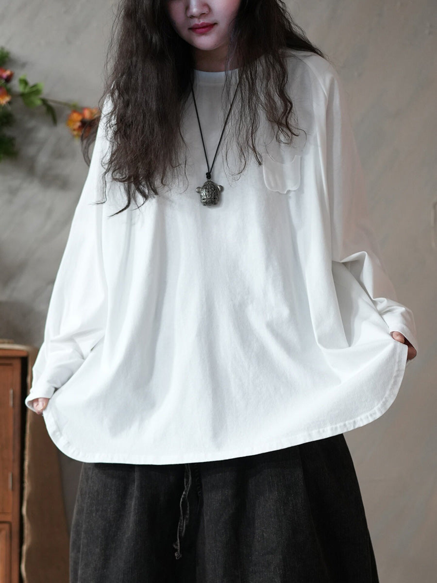 Blusa feminina casual de primavera, cor lisa, gola redonda.