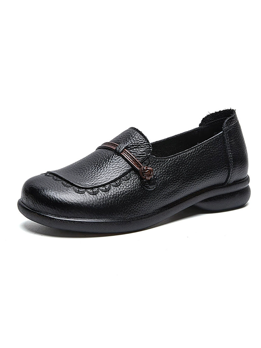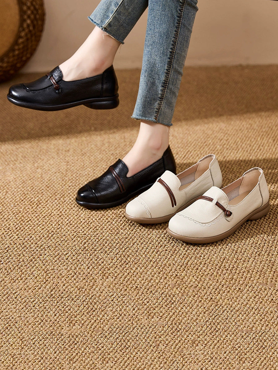 Sapatos femininos de primavera em couro genuíno com salto baixo