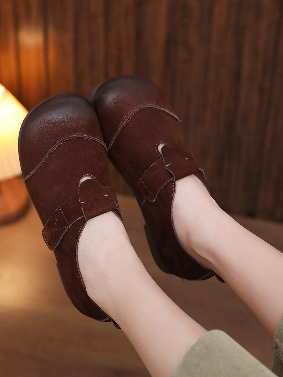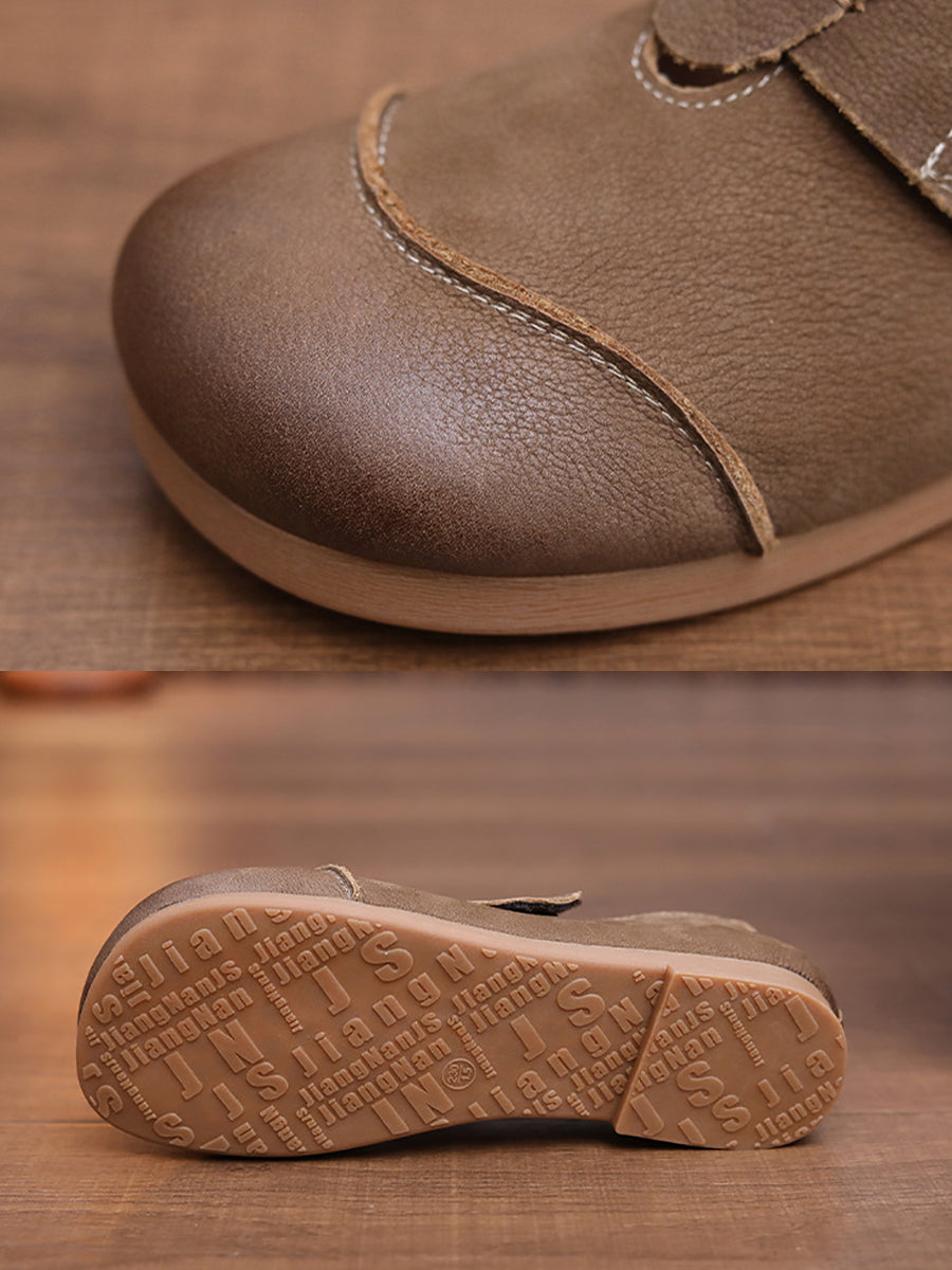 Sapatos femininos de primavera em couro genuíno com salto baixo