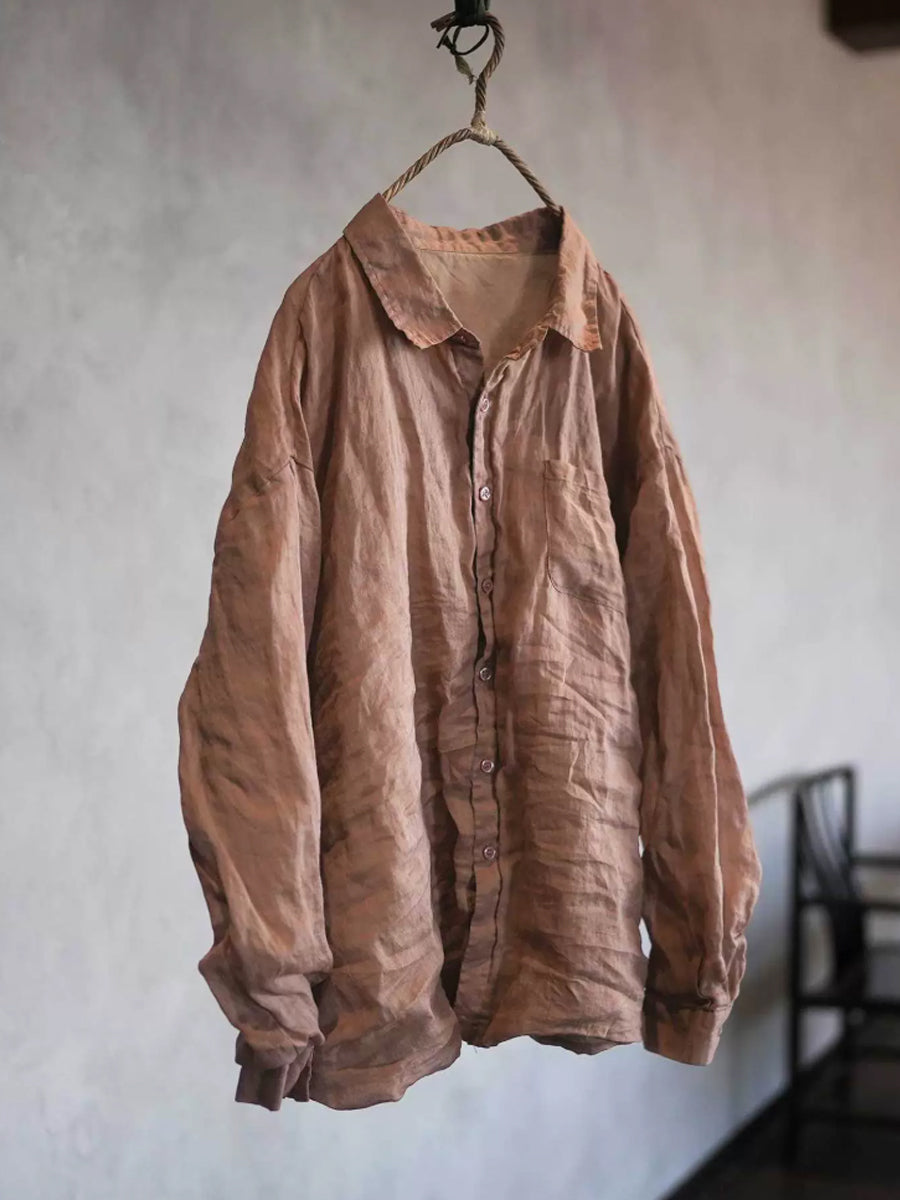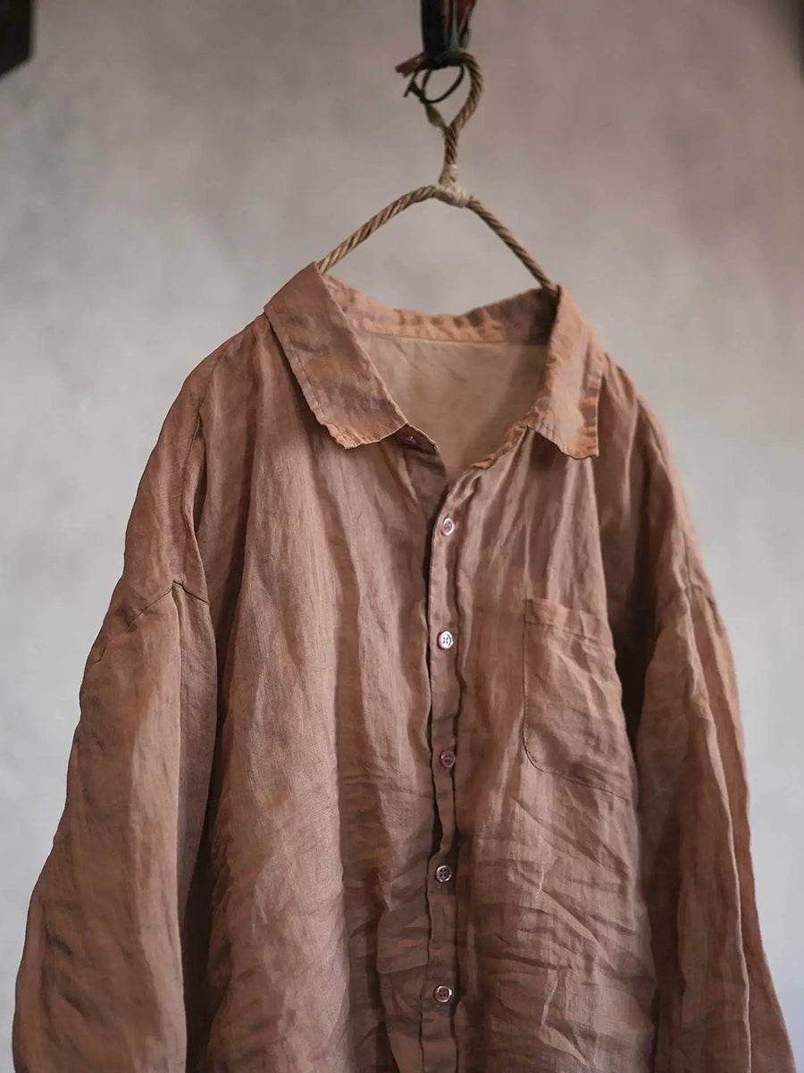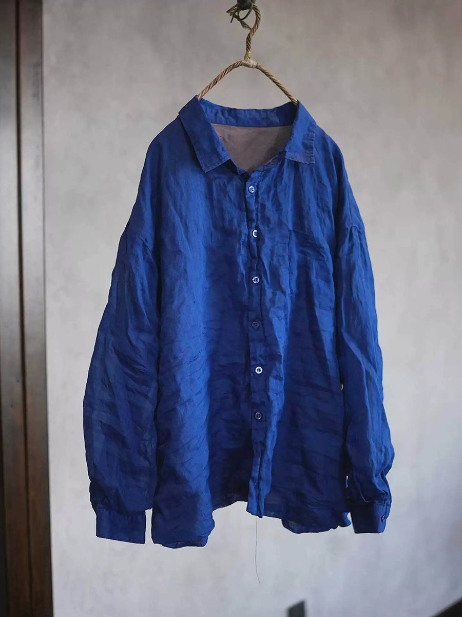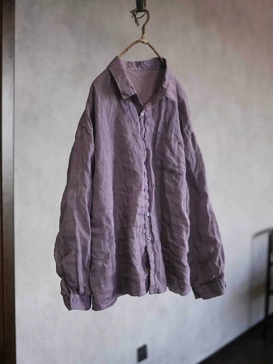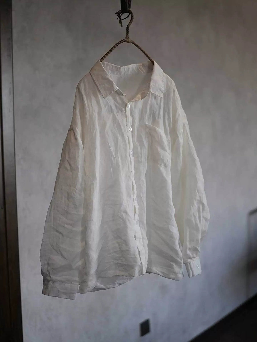 Camisa feminina de rami com gola dobrável em cor lisa para a primavera