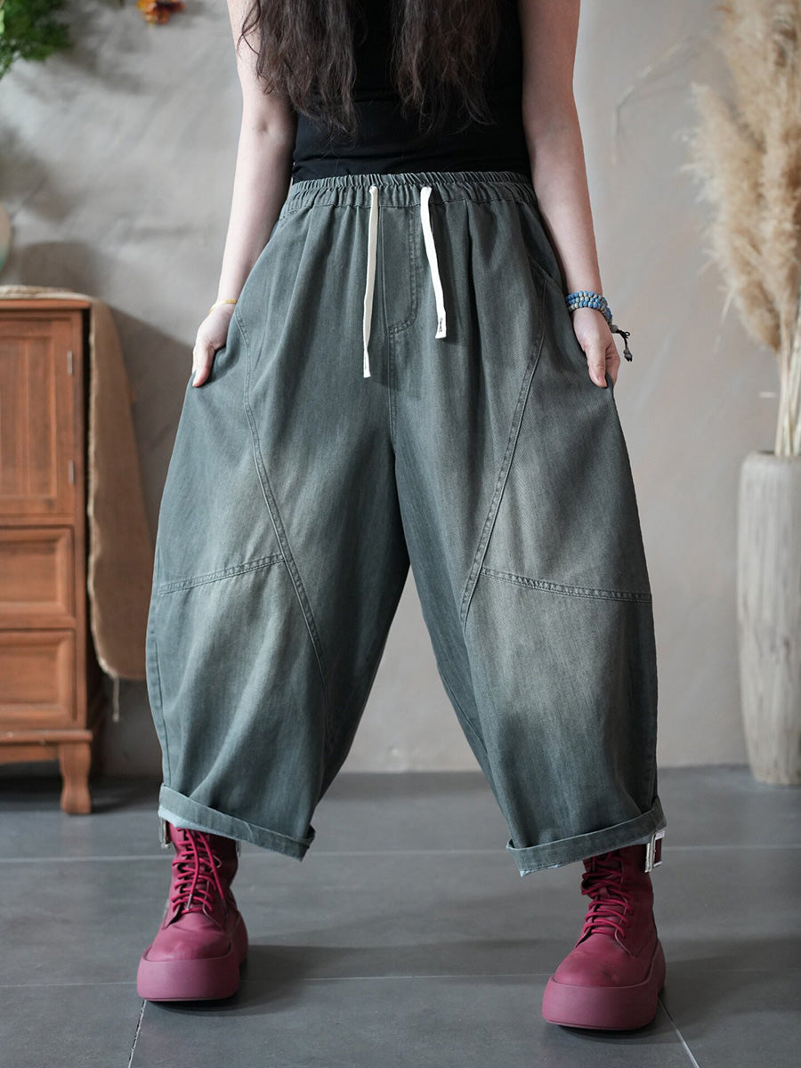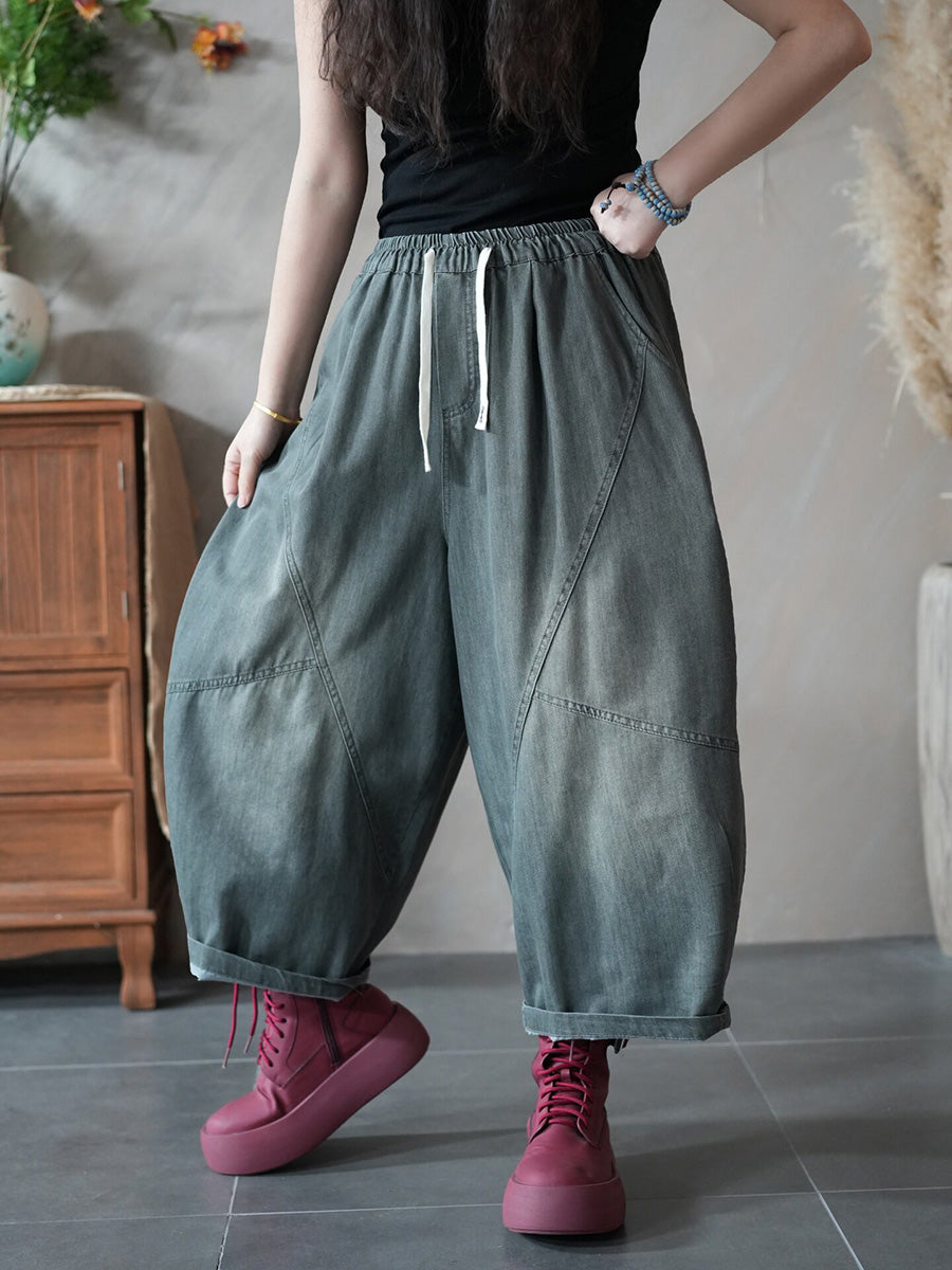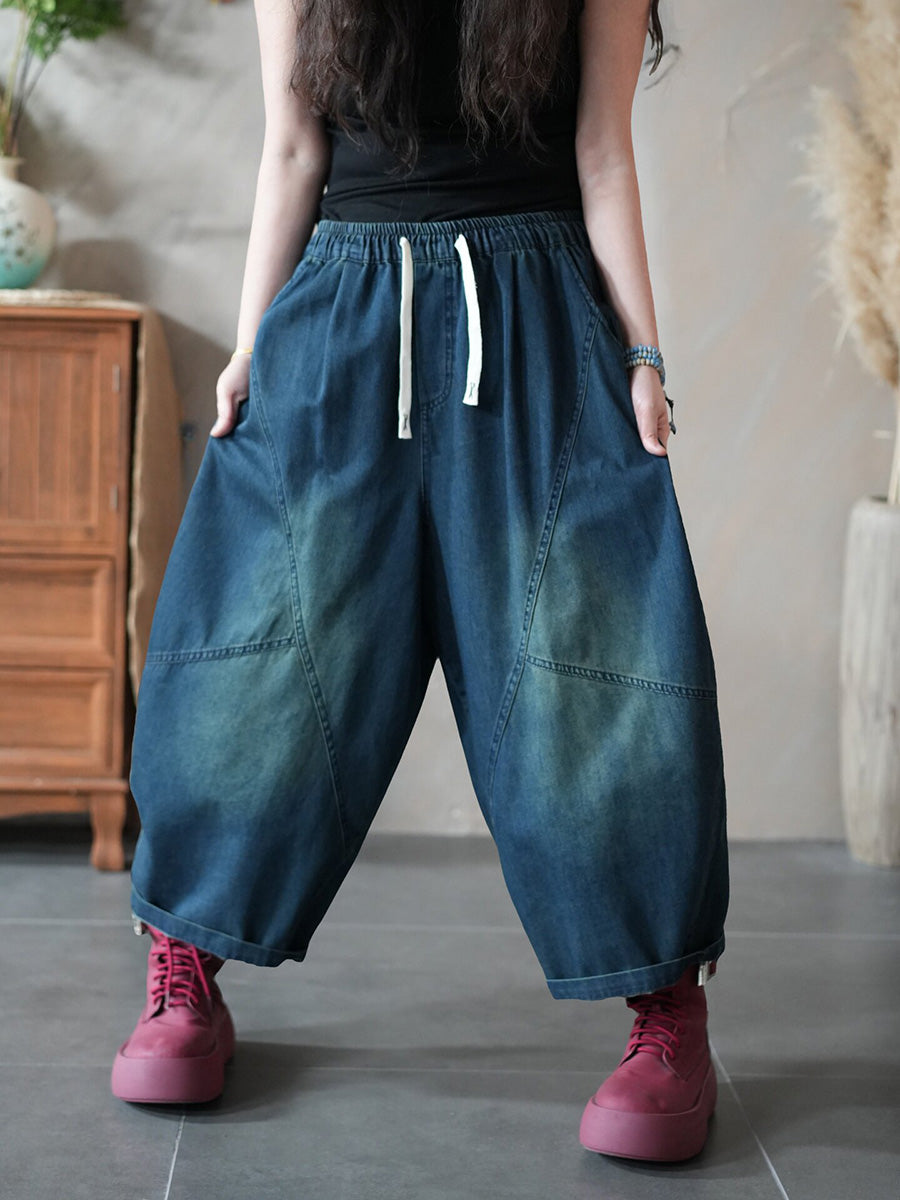 Calça Harem Jeans Feminina Retrô Primavera Cor Lisa