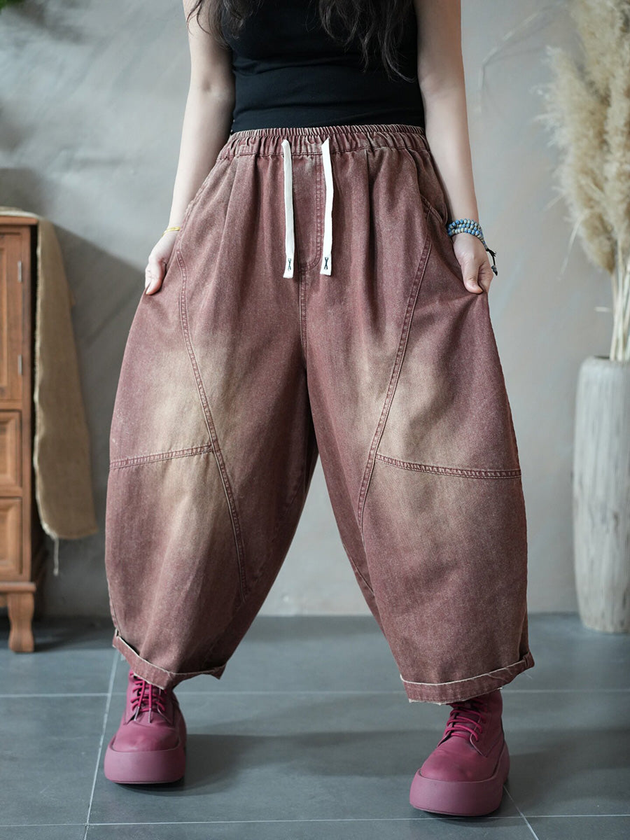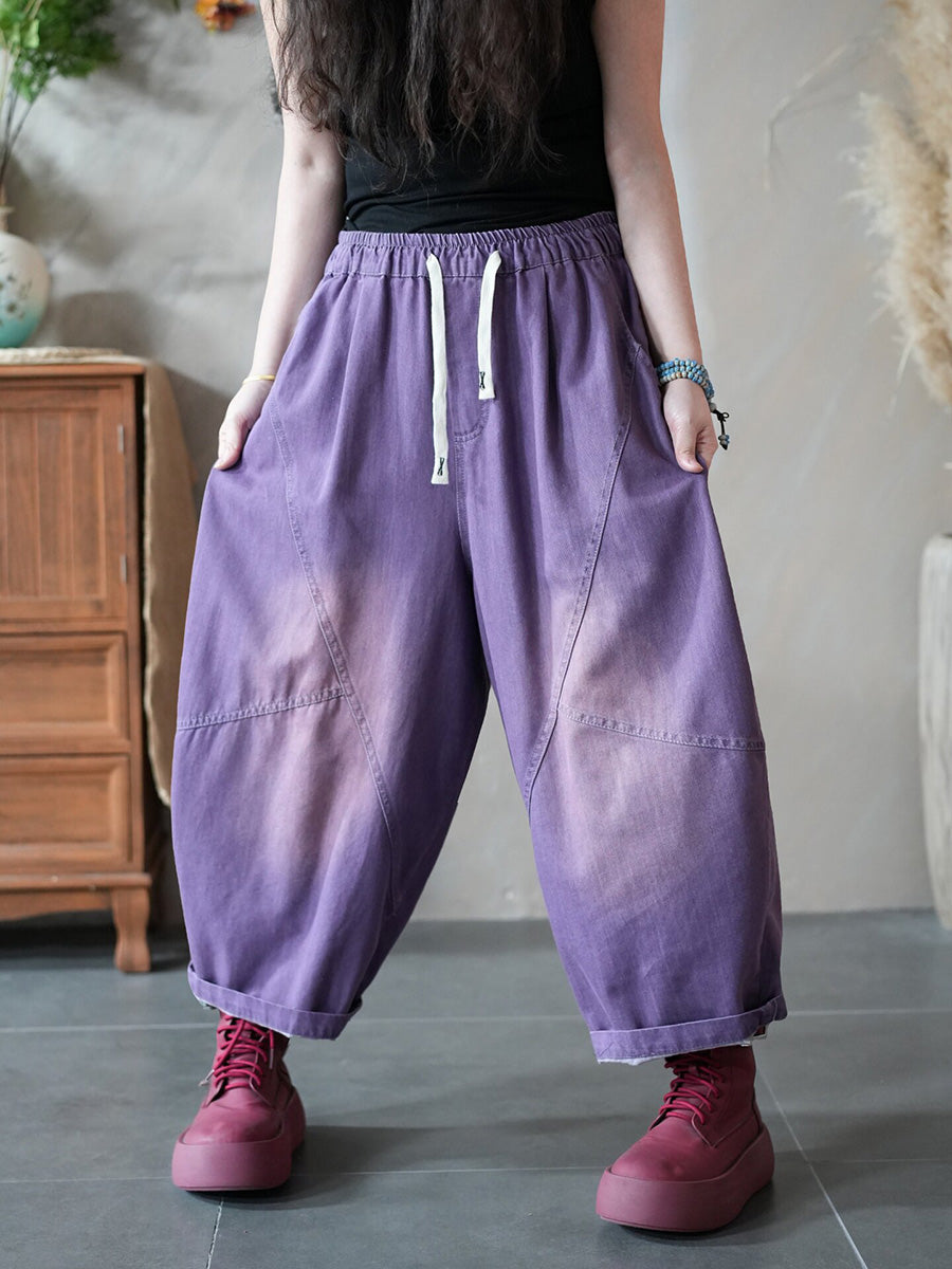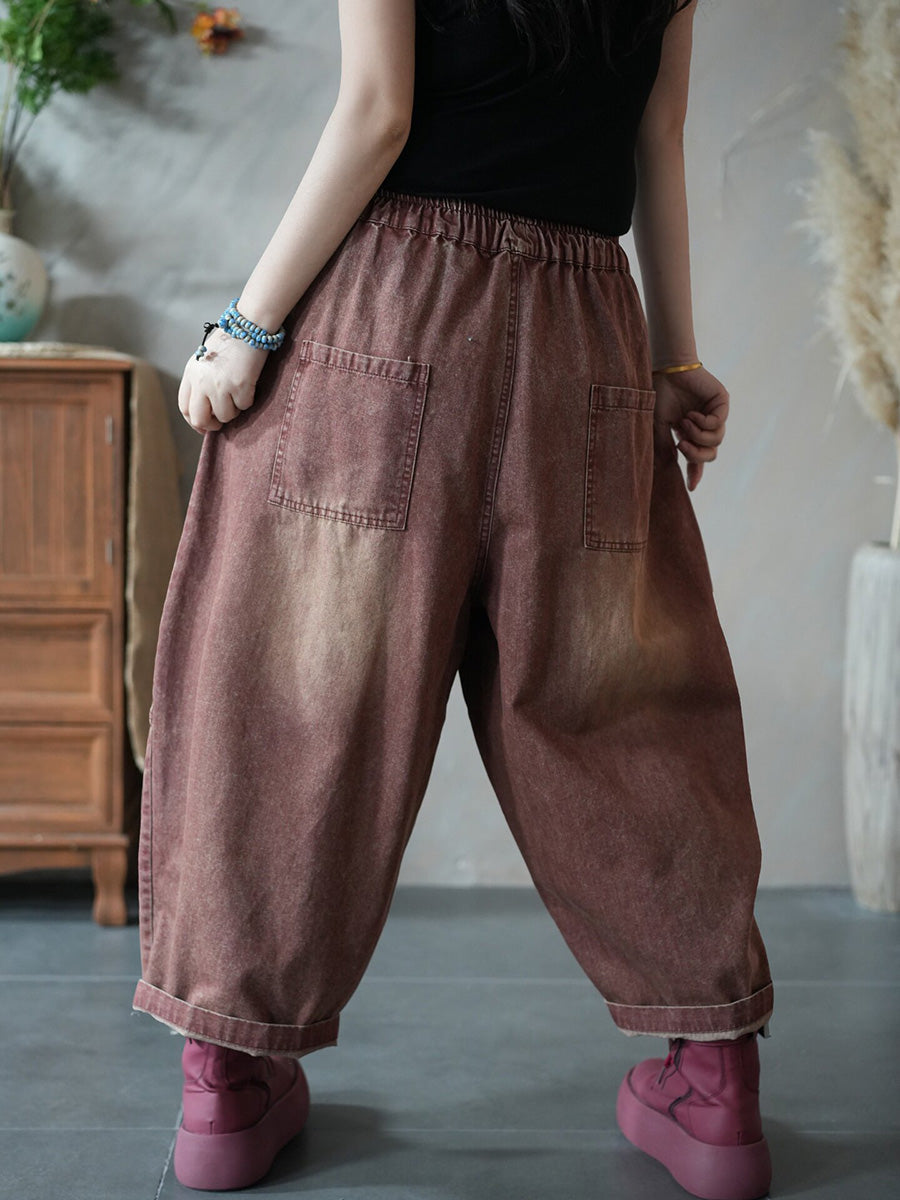 Calça Harem Jeans Feminina Retrô Primavera Cor Lisa
