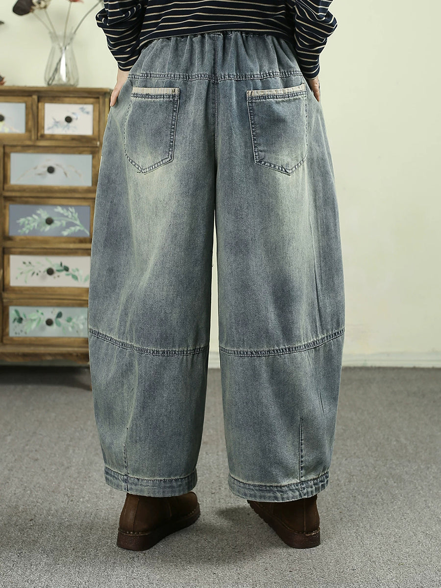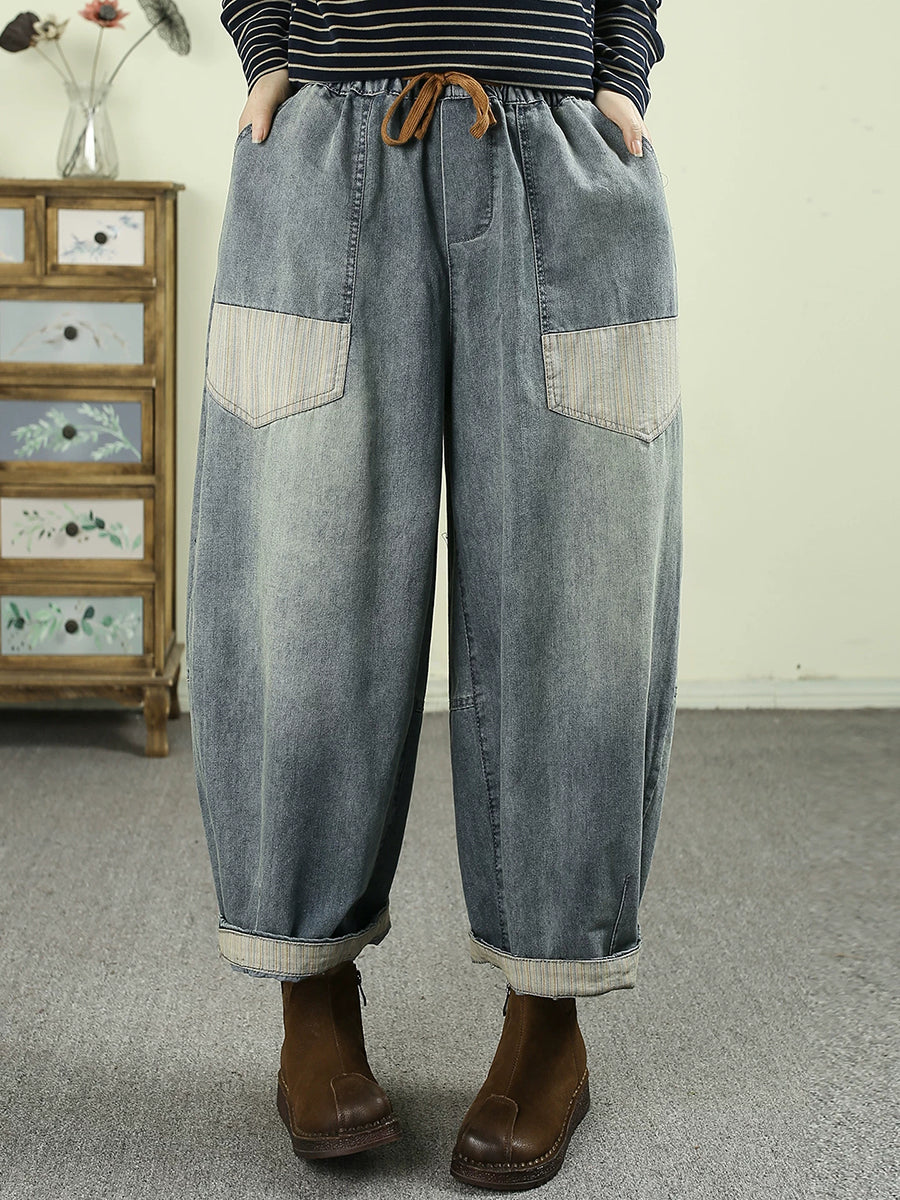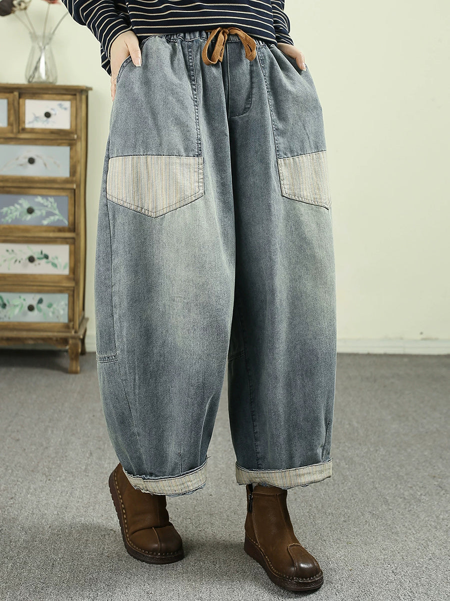 Calça Harem Feminina Vintage de Primavera em Jeans com Recortes
