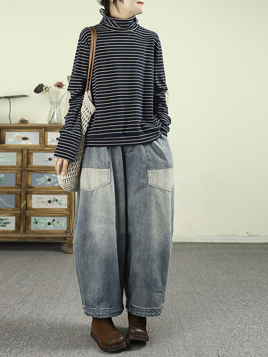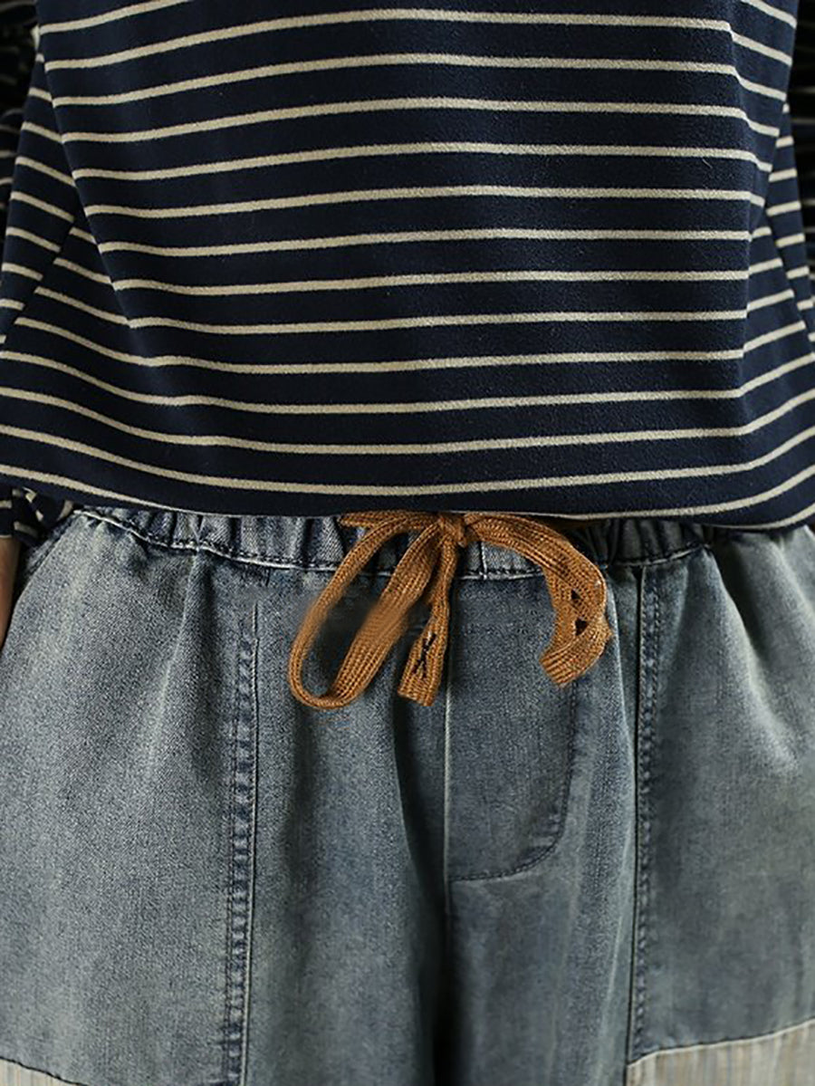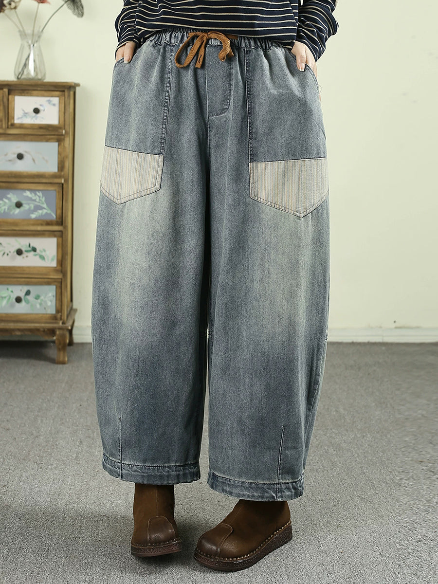 Calça Harem Feminina Vintage de Primavera em Jeans com Recortes